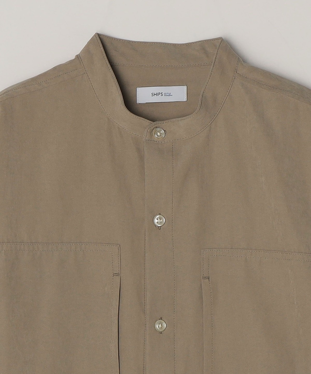 3. SHIPS any:〈洗濯機可能〉フェード ピーチスキン ポケット バンドカラー シャツ 26SS◆ ベージュ