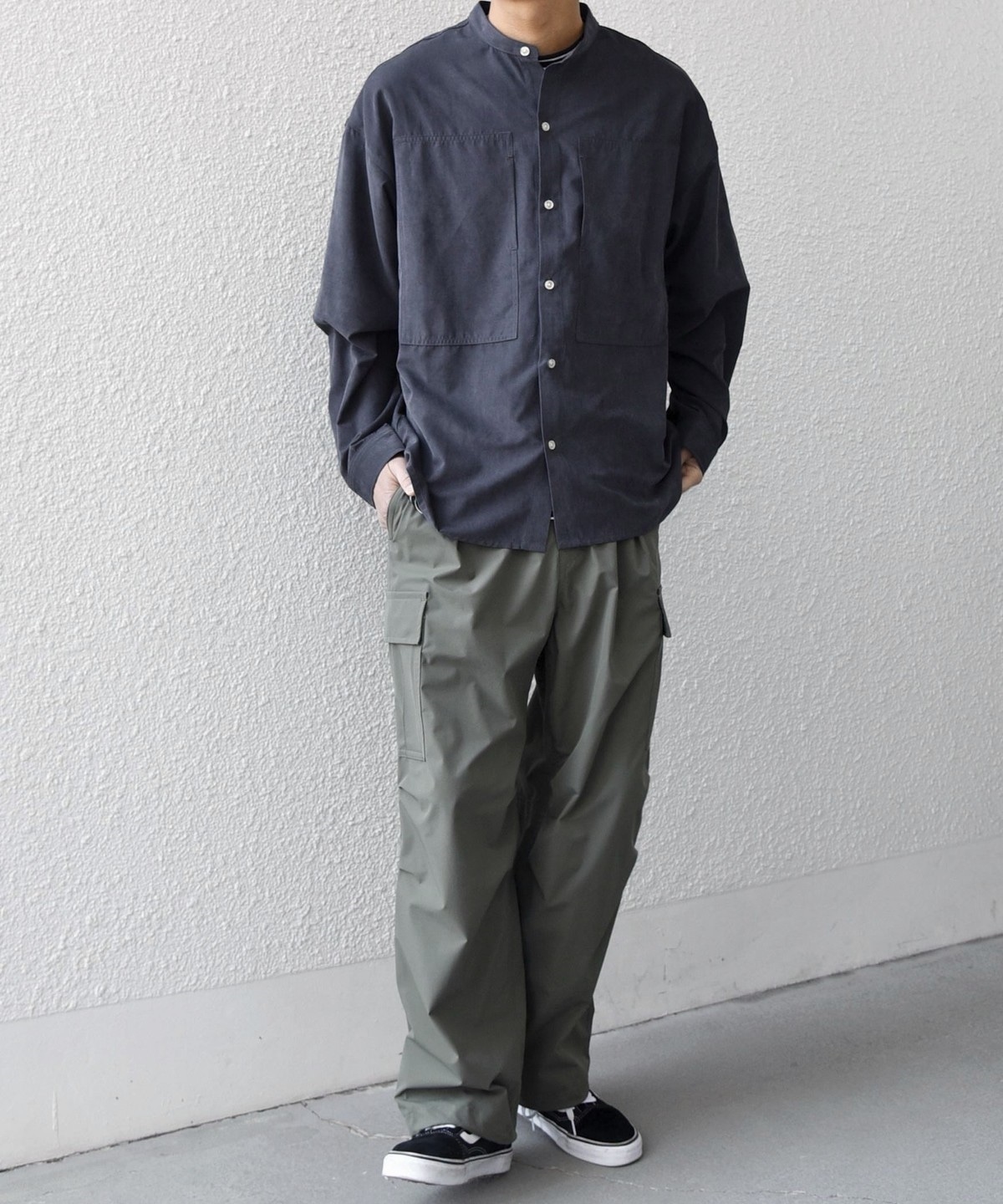 2. SHIPS any:〈洗濯機可能〉フェード ピーチスキン ポケット バンドカラー シャツ 26SS◆ チャコールグレー