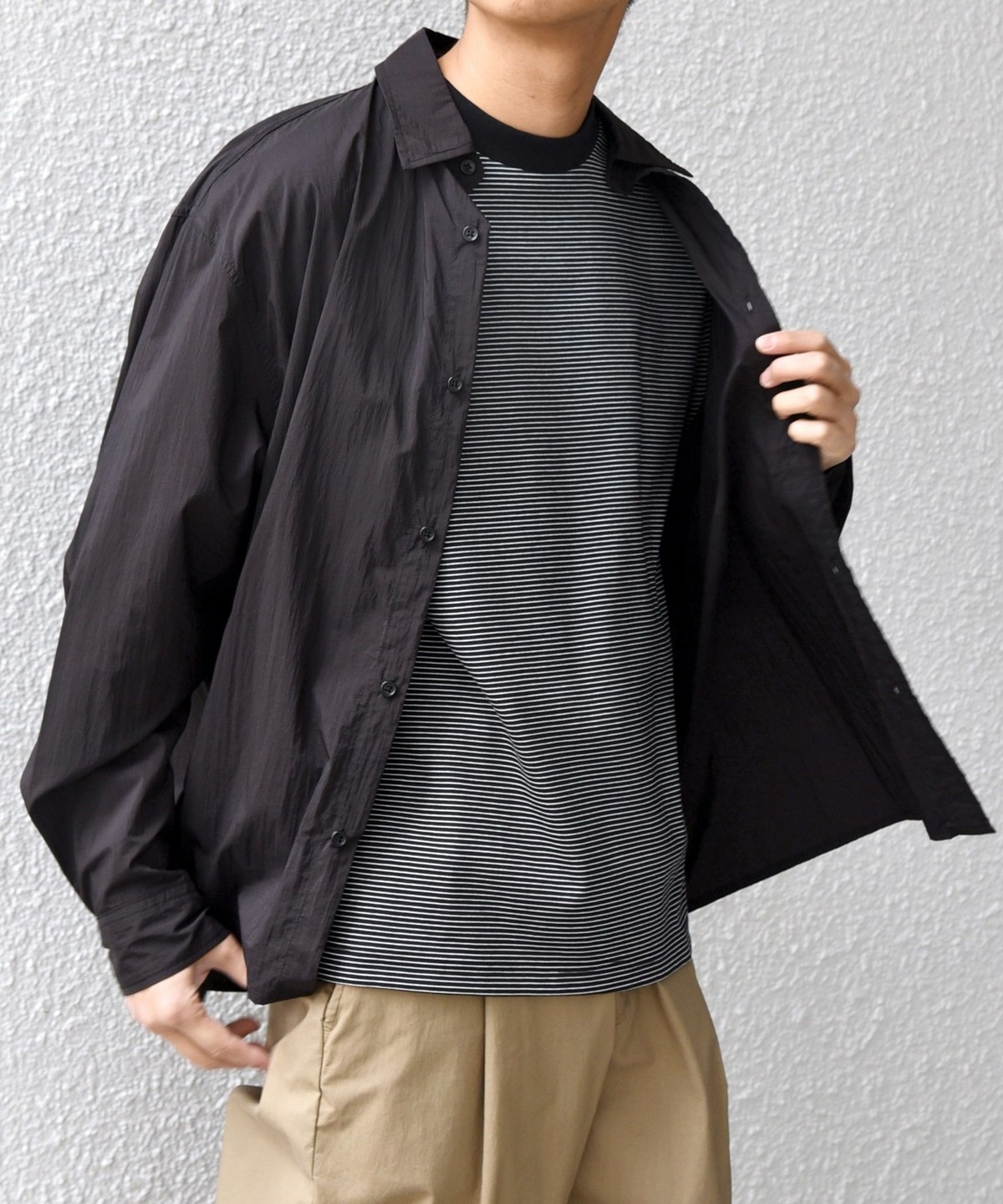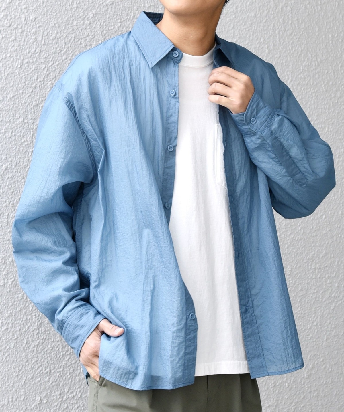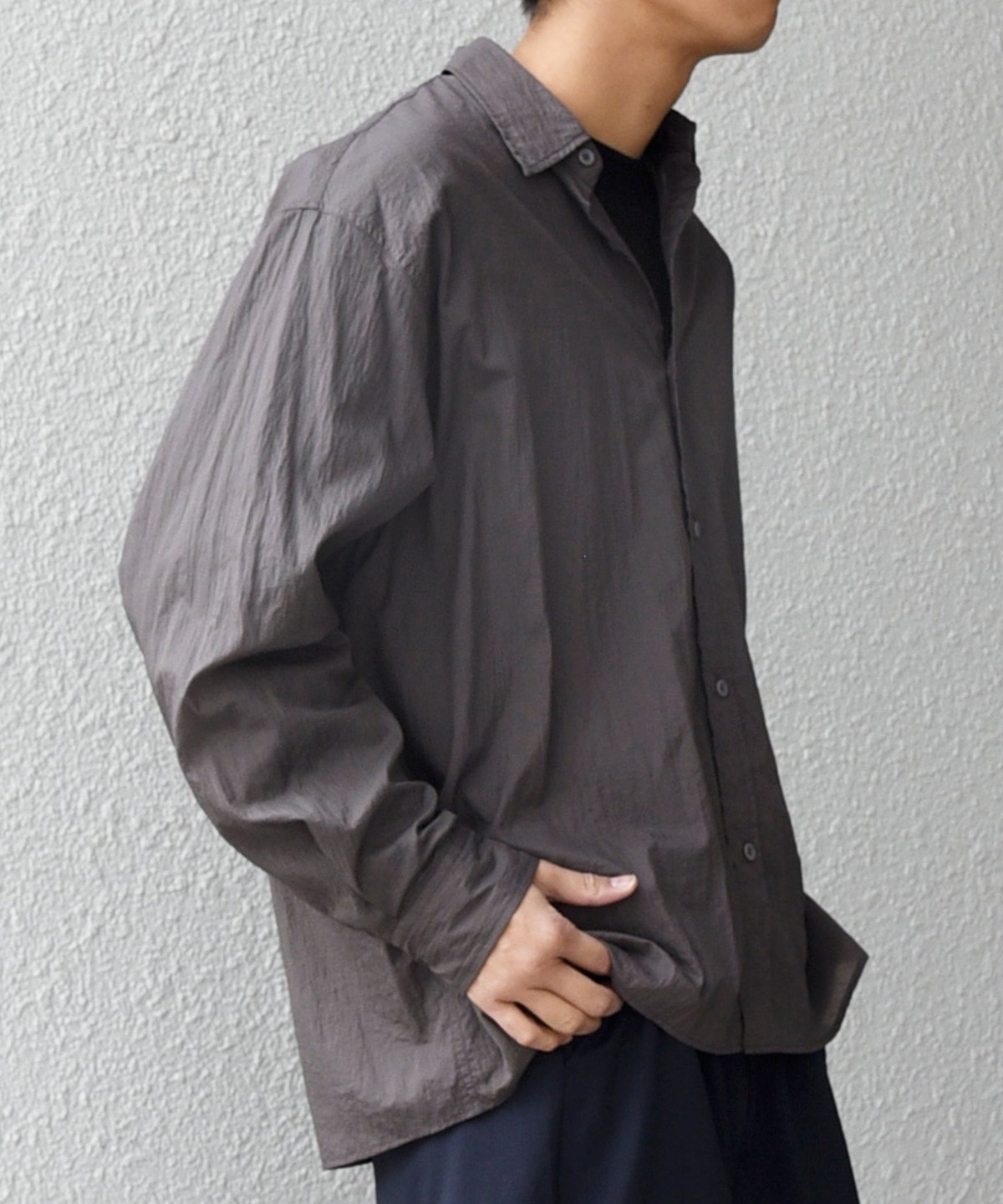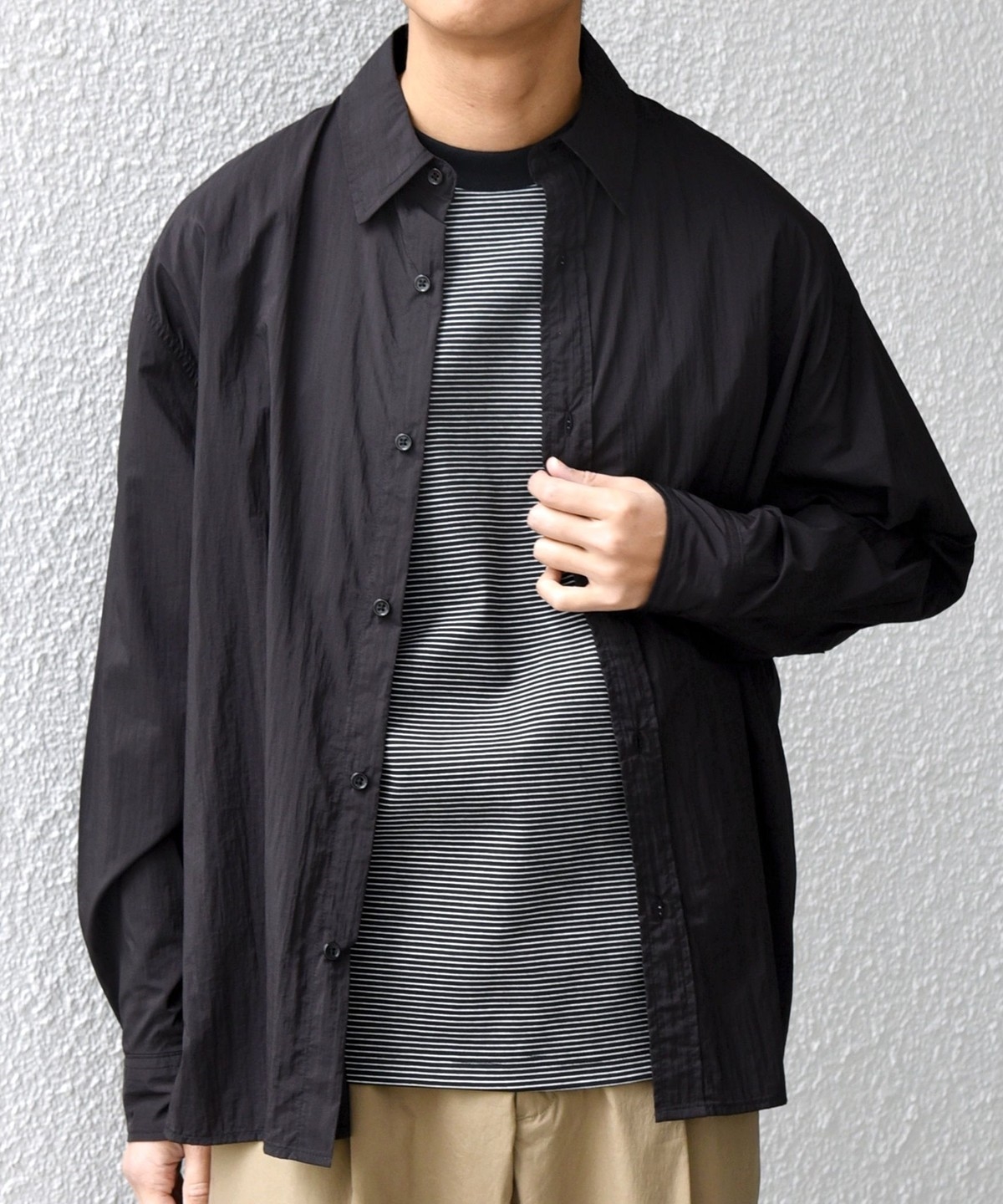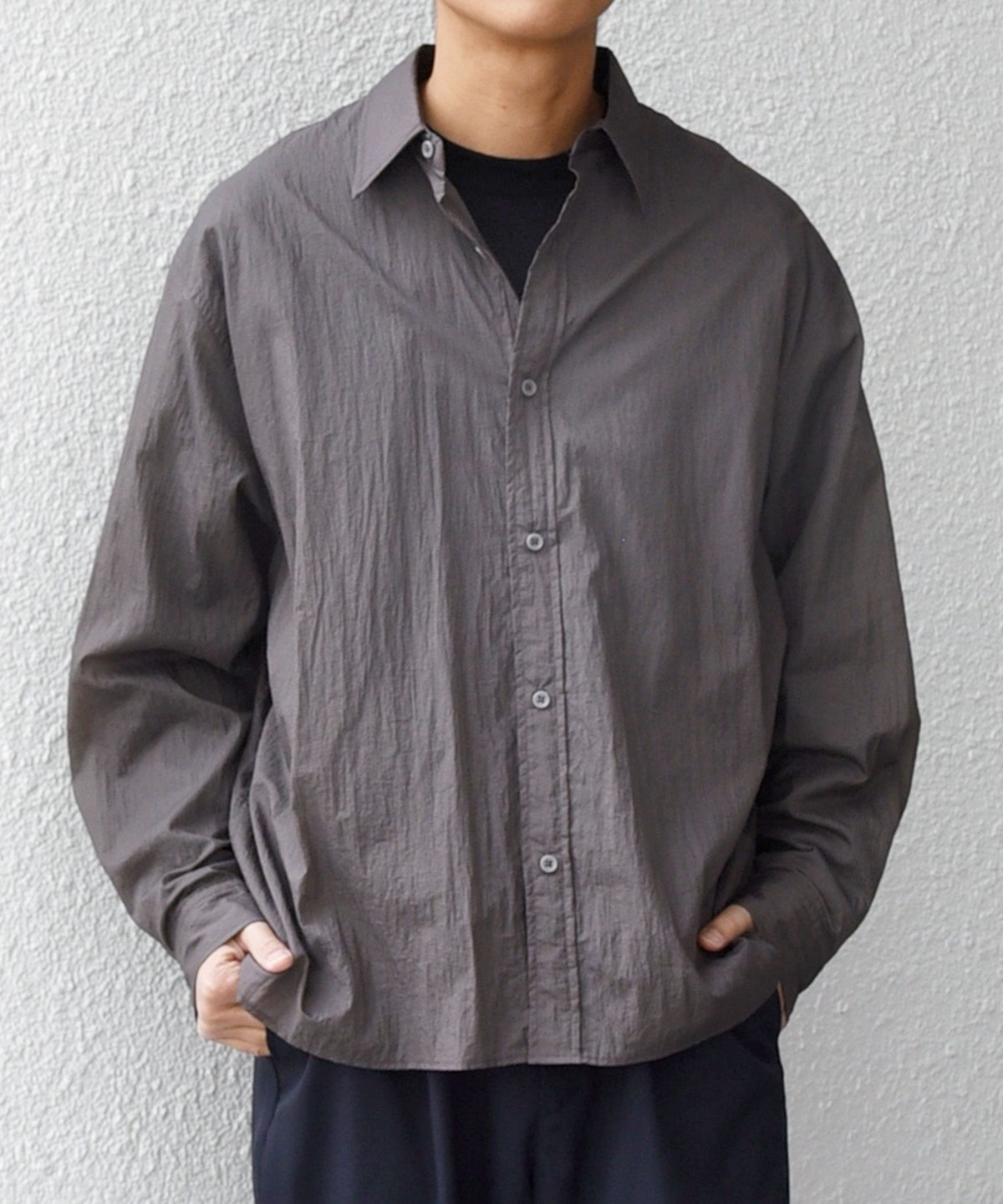 独特のシワ感が表情を生む、軽やかなワッシャーナイロンシャツ