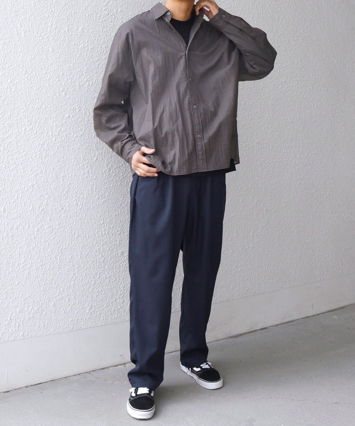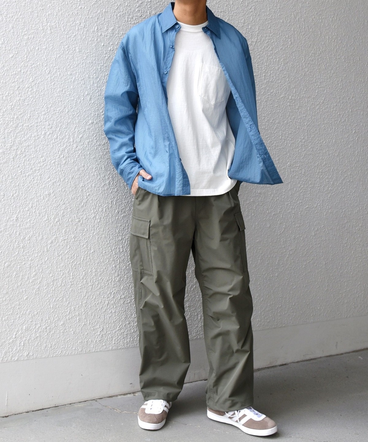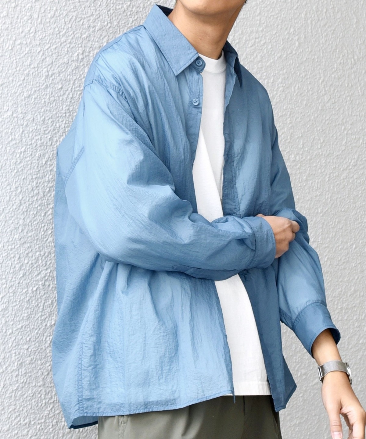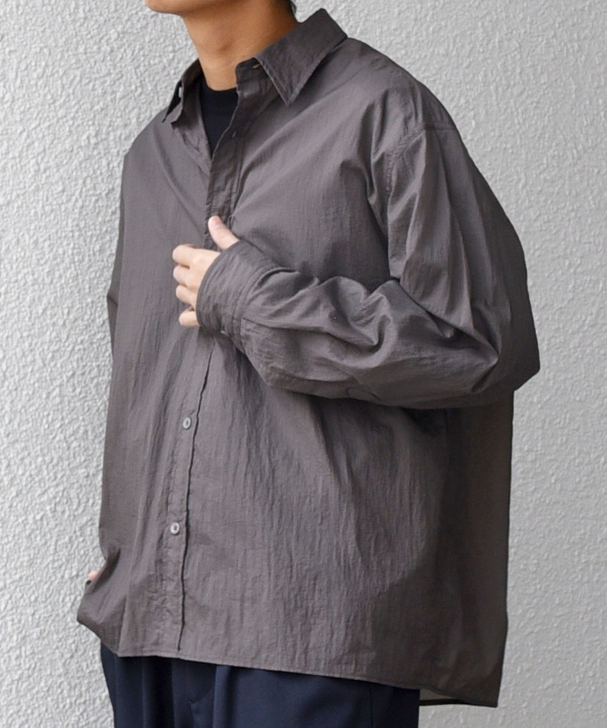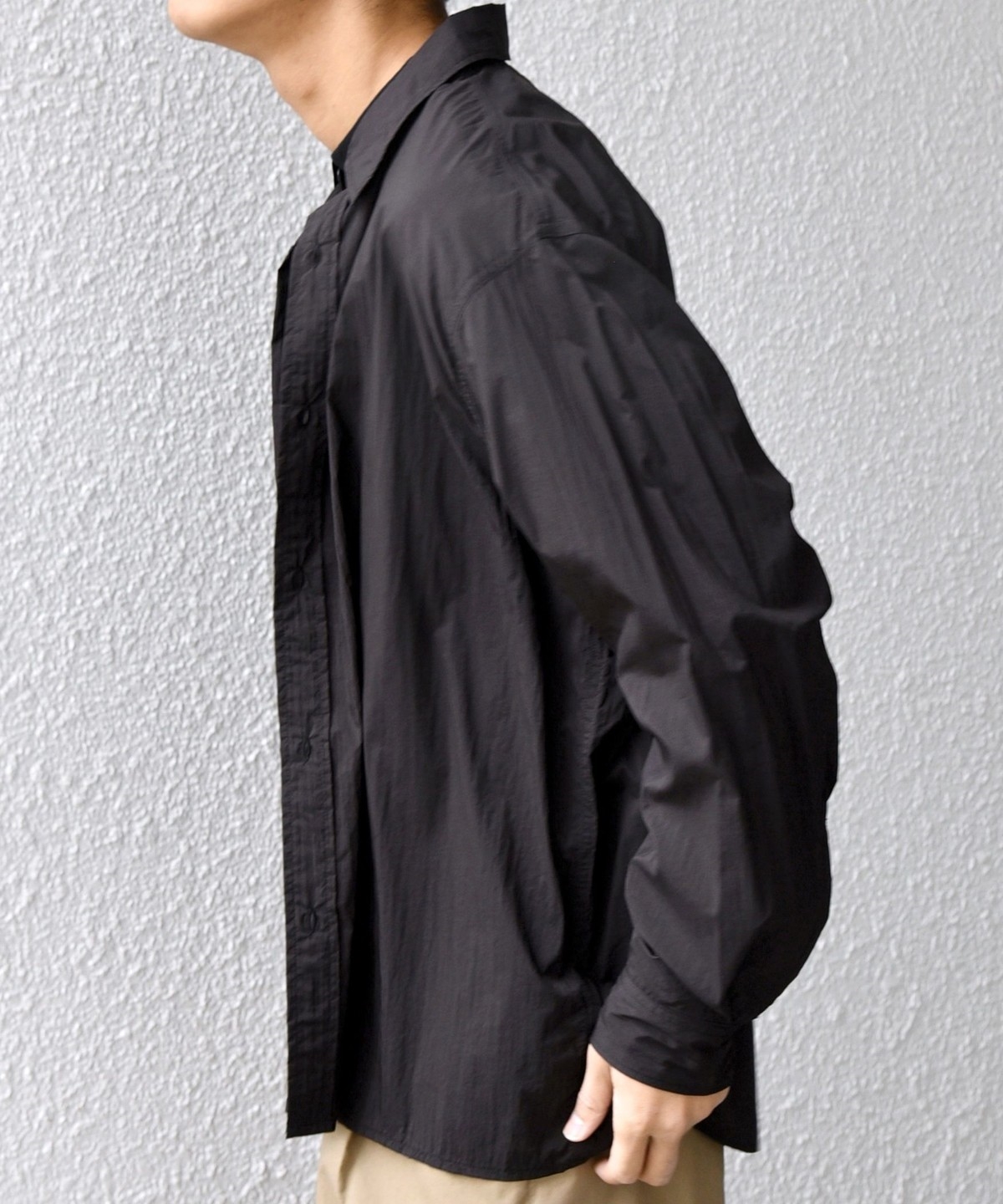 独特のシワ感が表情を生む、軽やかなワッシャーナイロンシャツ