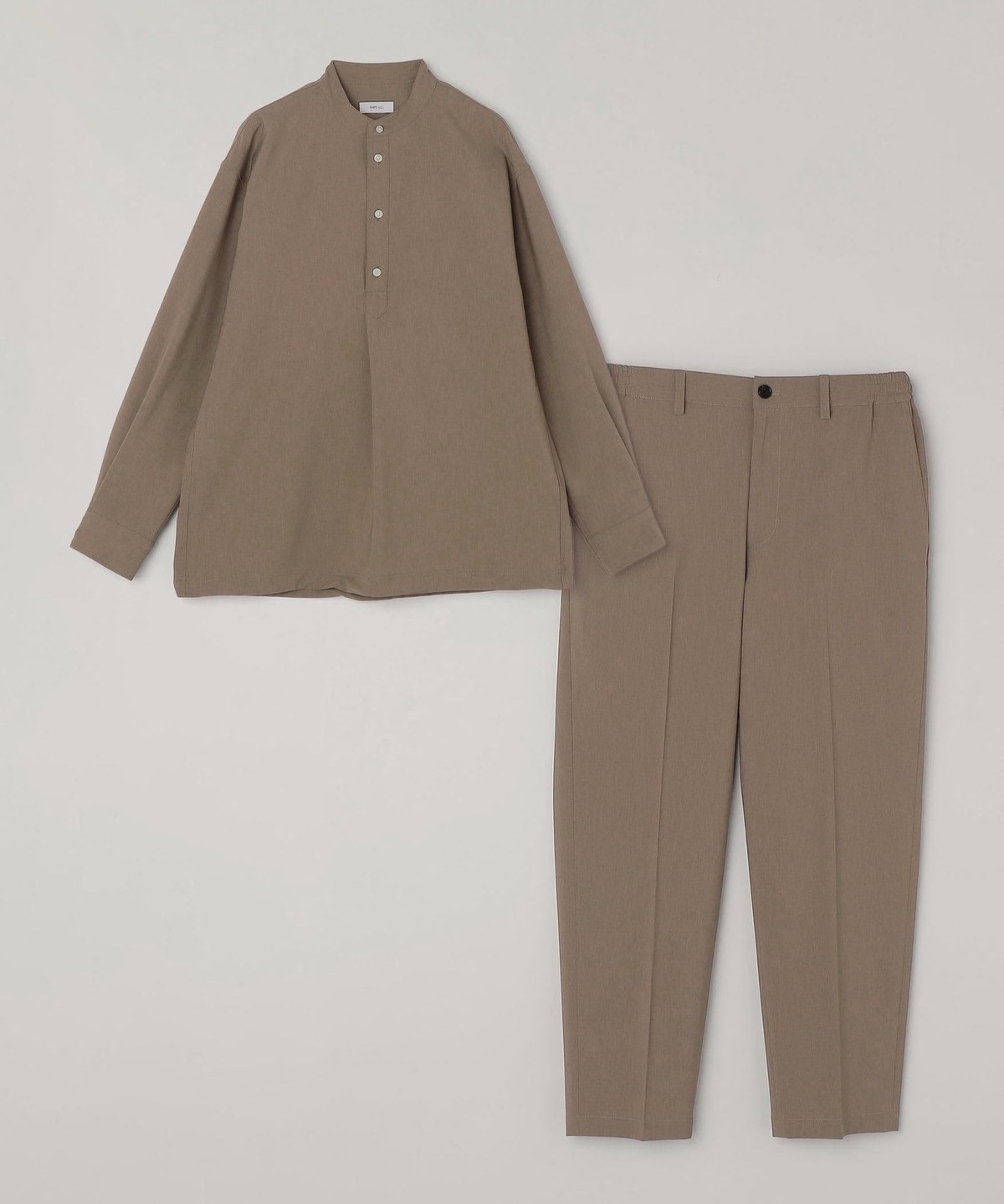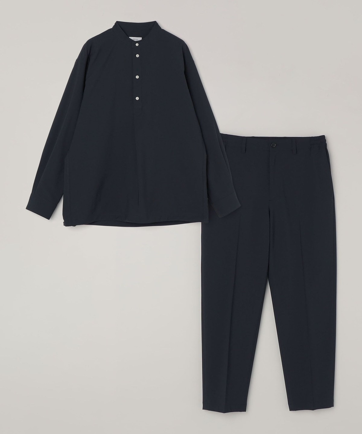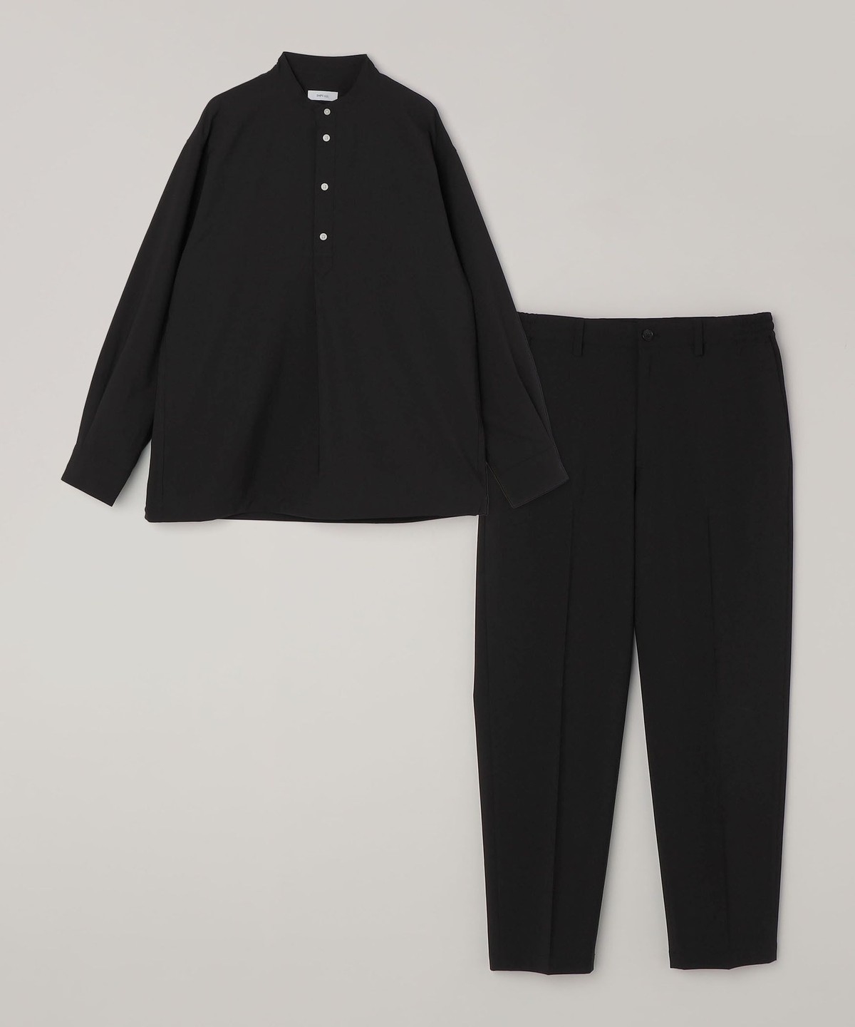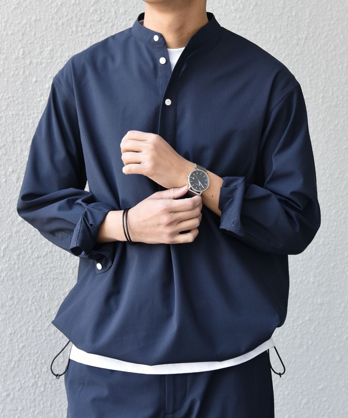 今期は人気のタック入りバンドカラープルオーバーシャツの裾をスピンドル仕様へとブラッシュアップ!