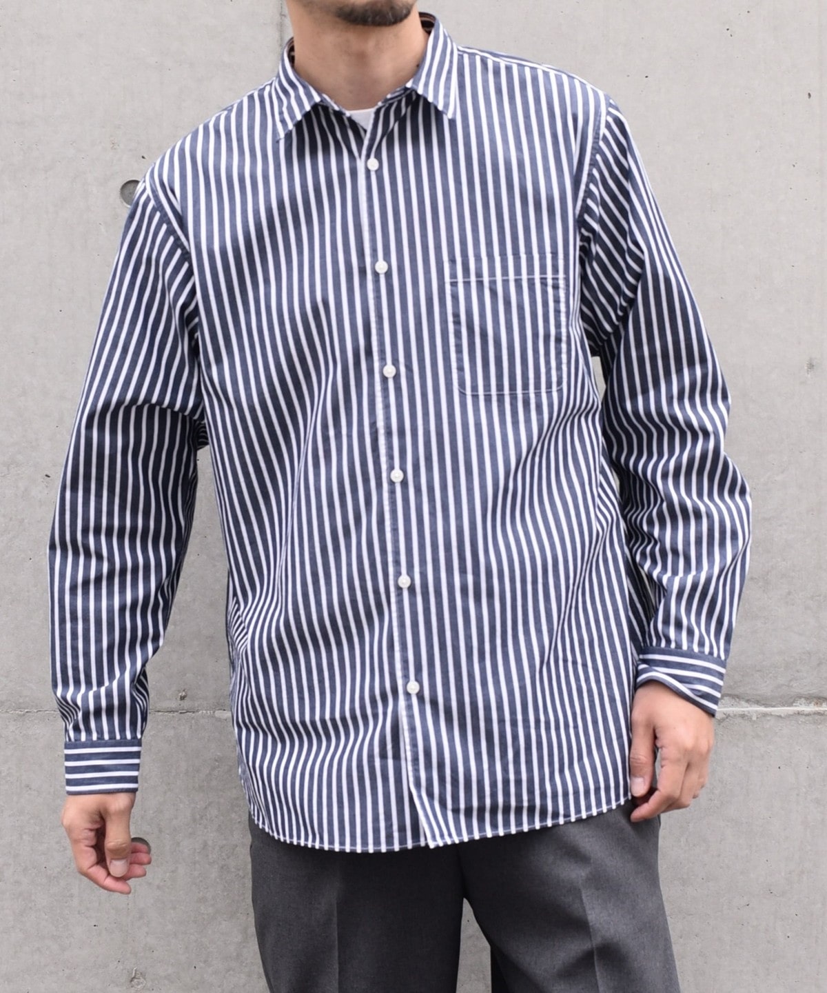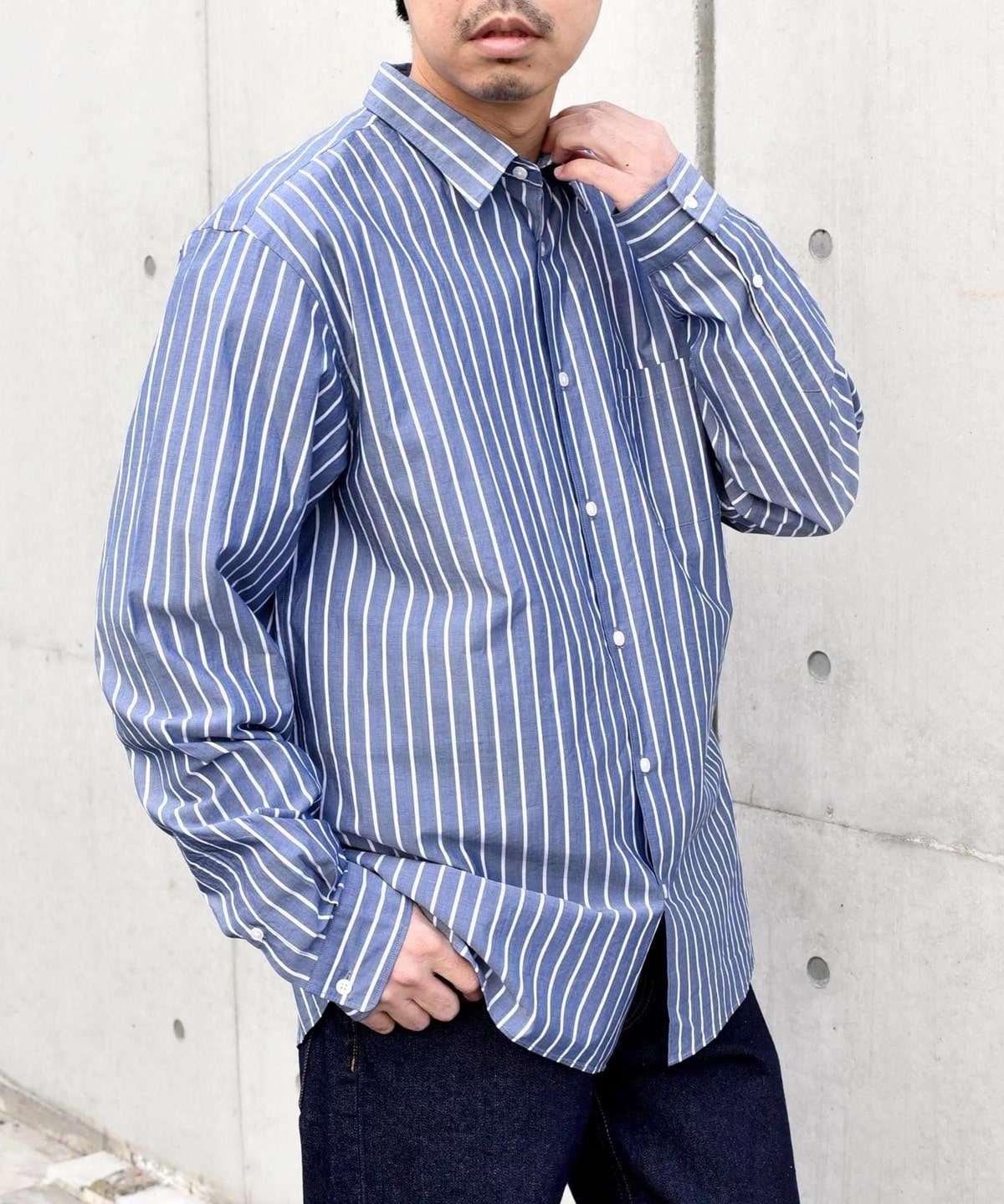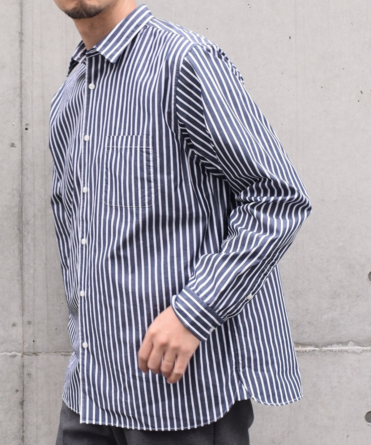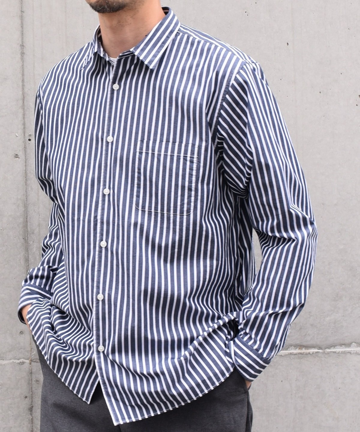 程良いヌケ感を伴ったサイジングと汎用性ある無地+ストライプでの展開です。