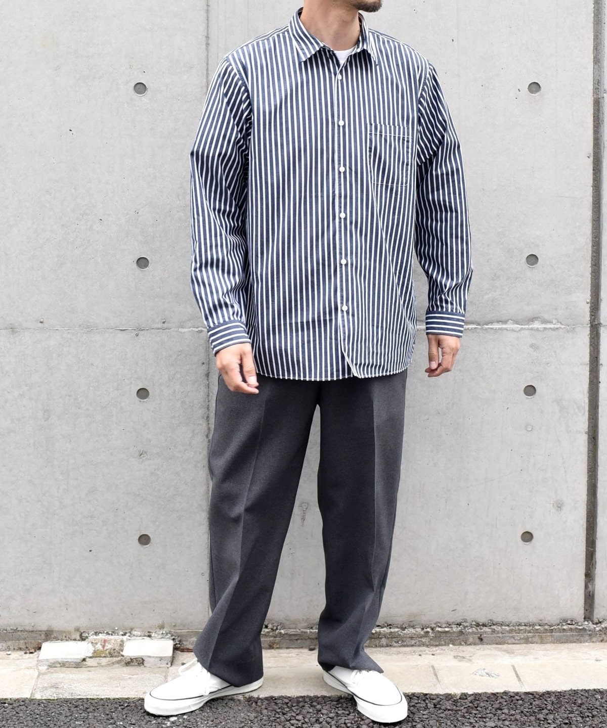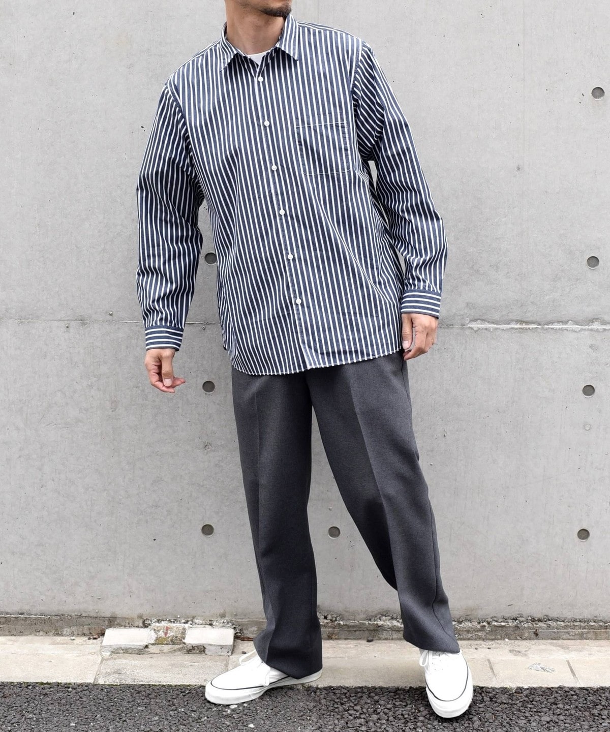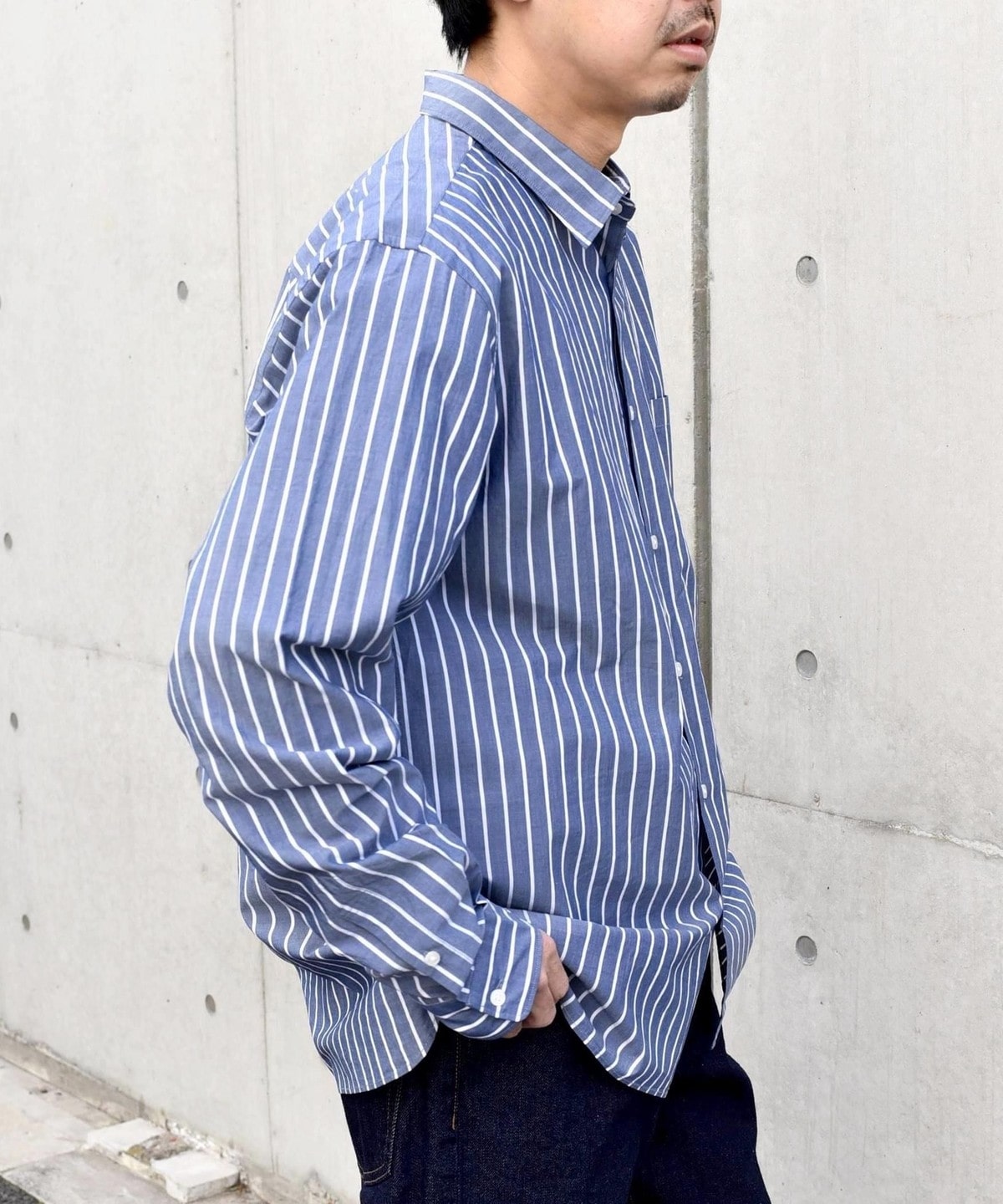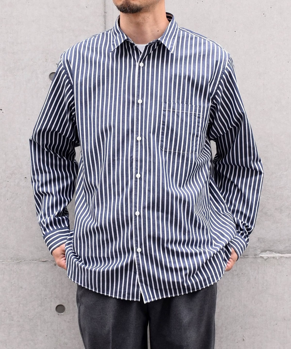 程良いヌケ感を伴ったサイジングと汎用性ある無地+ストライプでの展開です。