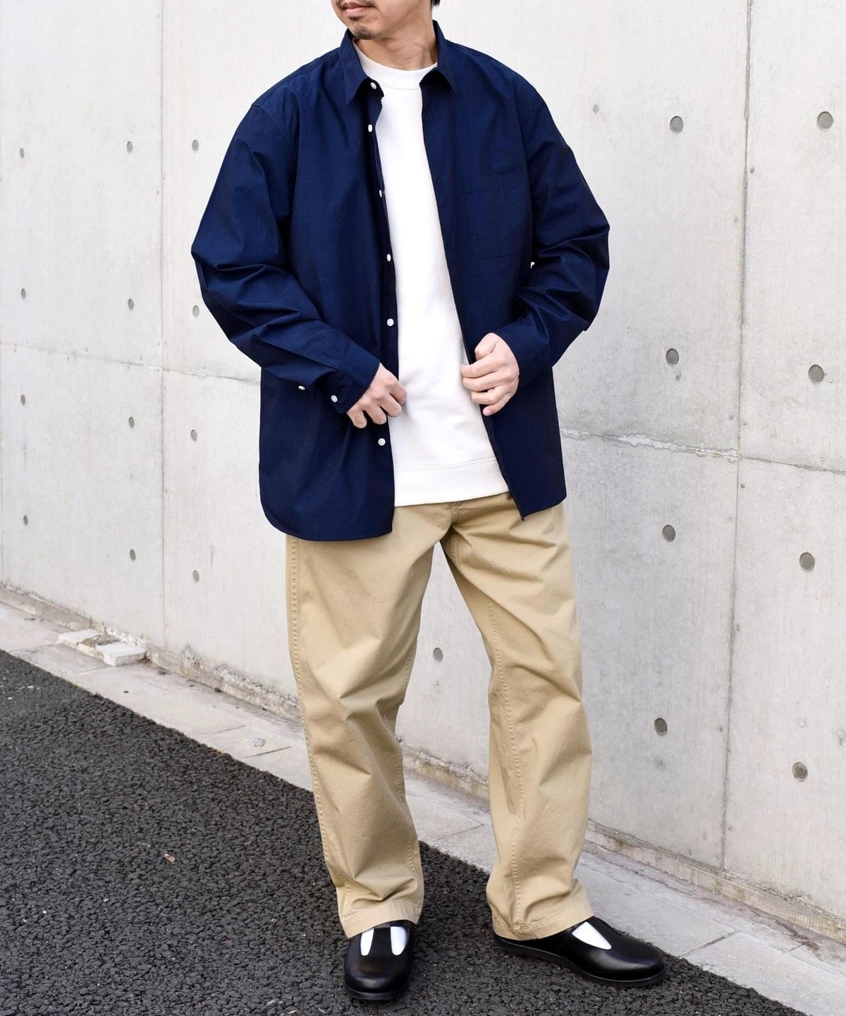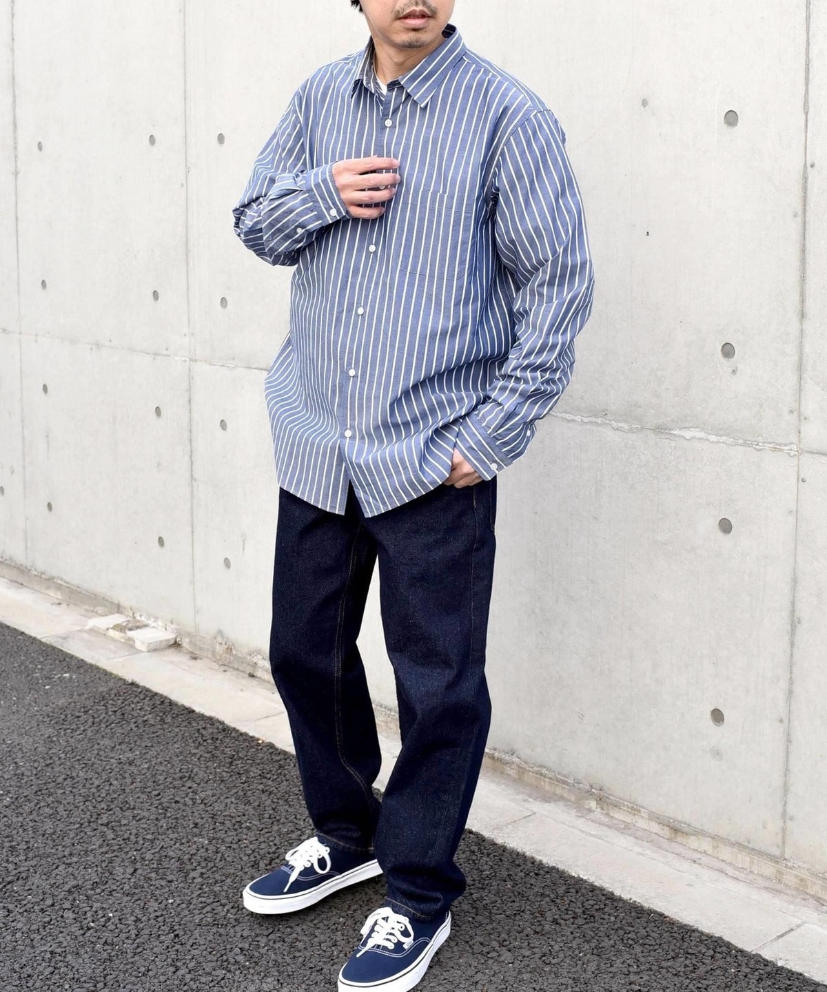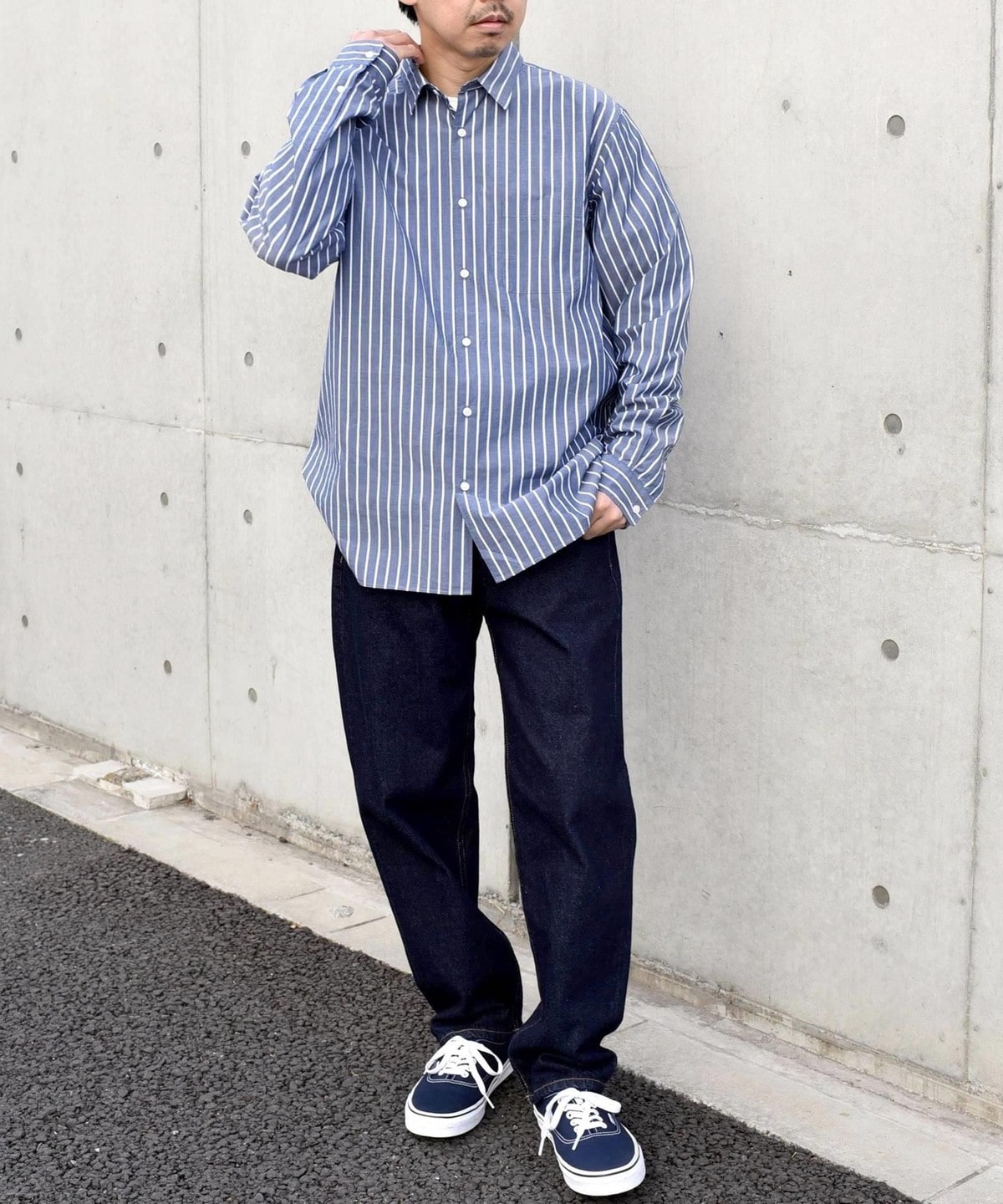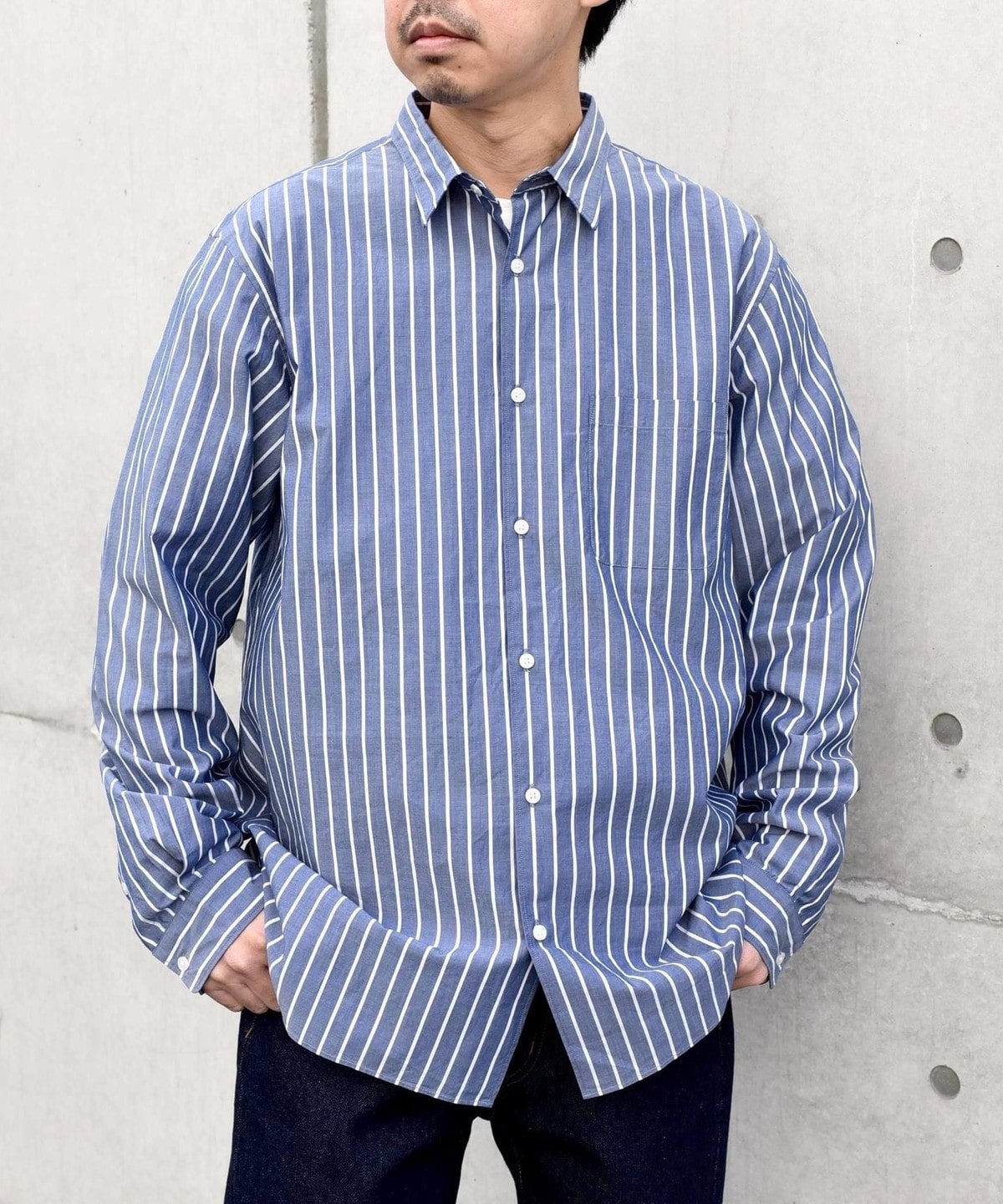 程良いヌケ感を伴ったサイジングと汎用性ある無地+ストライプでの展開です。