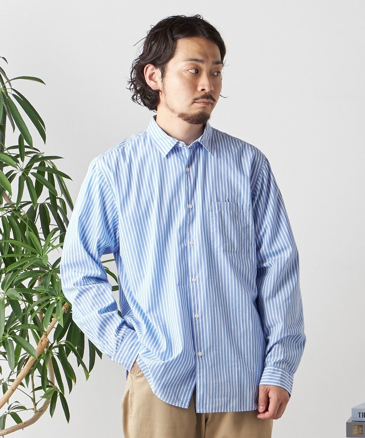 5. SHIPS any: ストライプ / ソリッド リラックス レギュラーカラー シャツ 24SS◇ ライトブルー