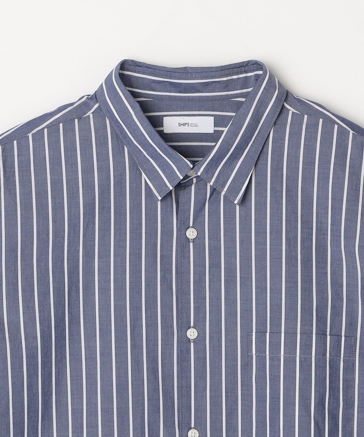 8. SHIPS any: ストライプ / ソリッド リラックス レギュラーカラー シャツ 24SS◇ ブルー