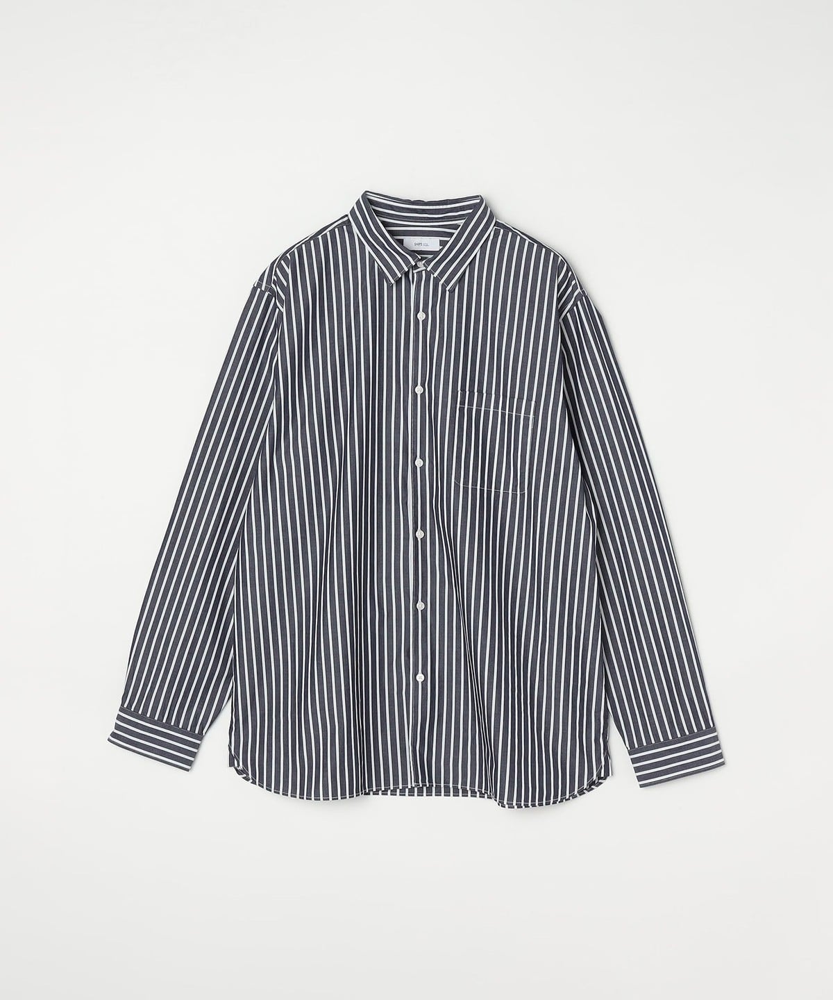 1. SHIPS any: ストライプ / ソリッド リラックス レギュラーカラー シャツ 24SS◇ グレー
