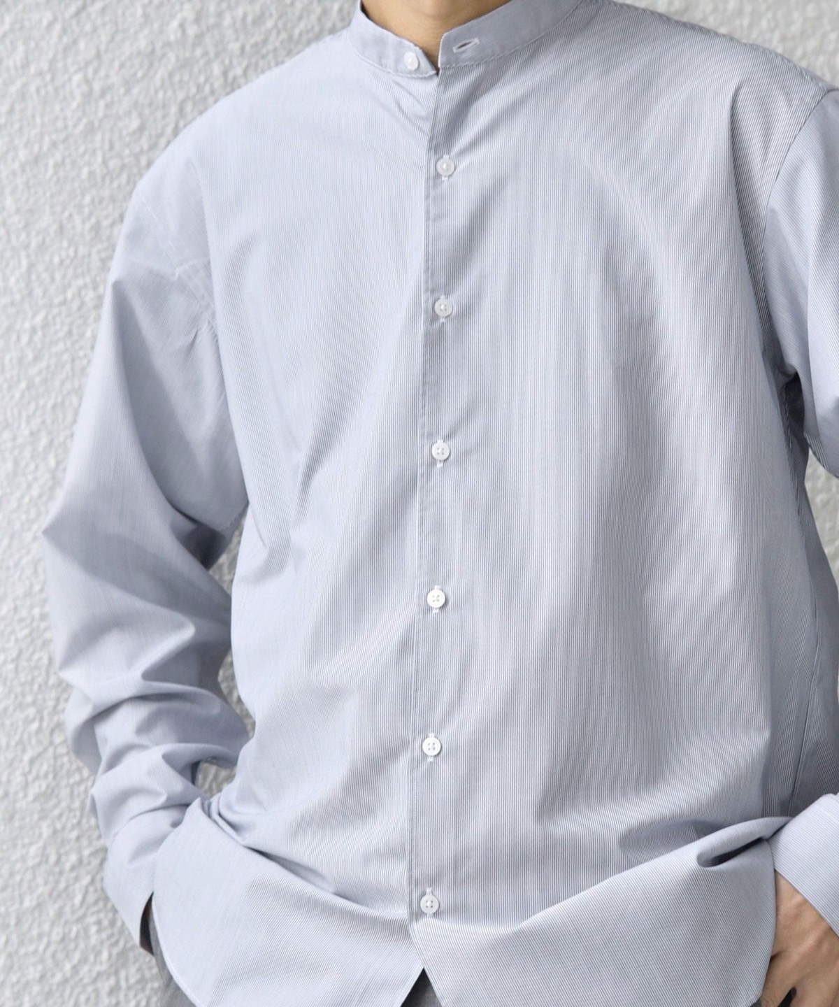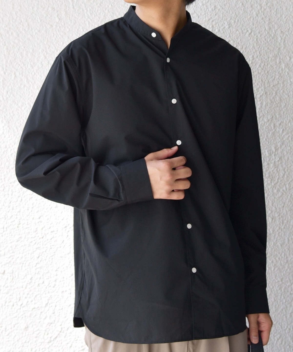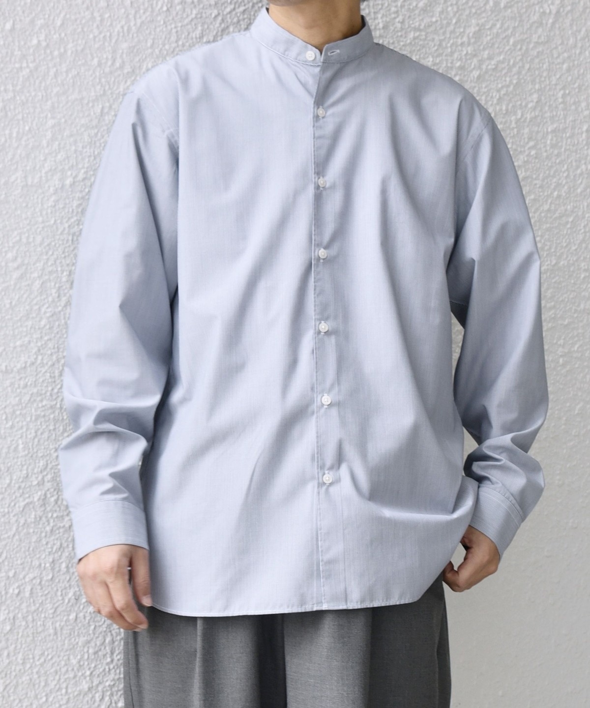 程よいリラックス感のあるシルエットに仕上げたバンドカラーシャツ。