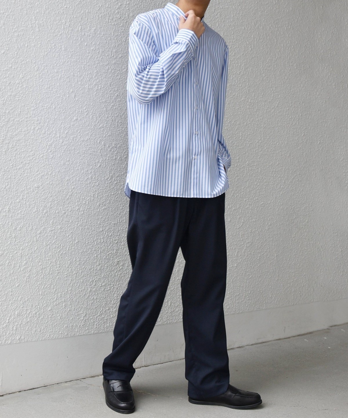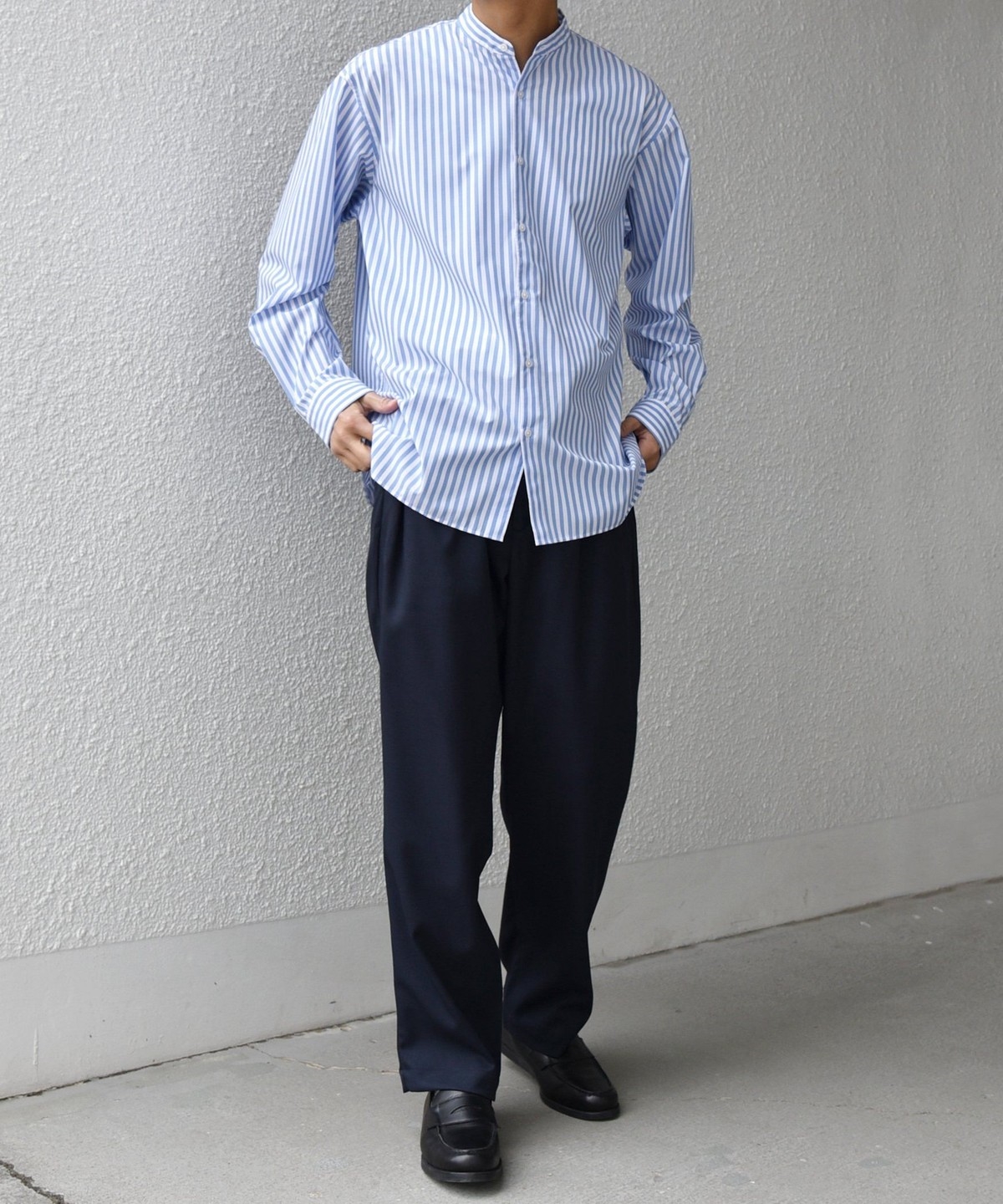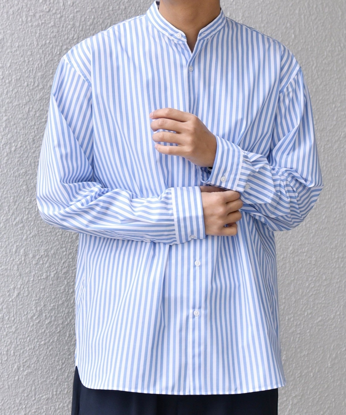 程よいリラックス感のあるシルエットに仕上げたバンドカラーシャツ。