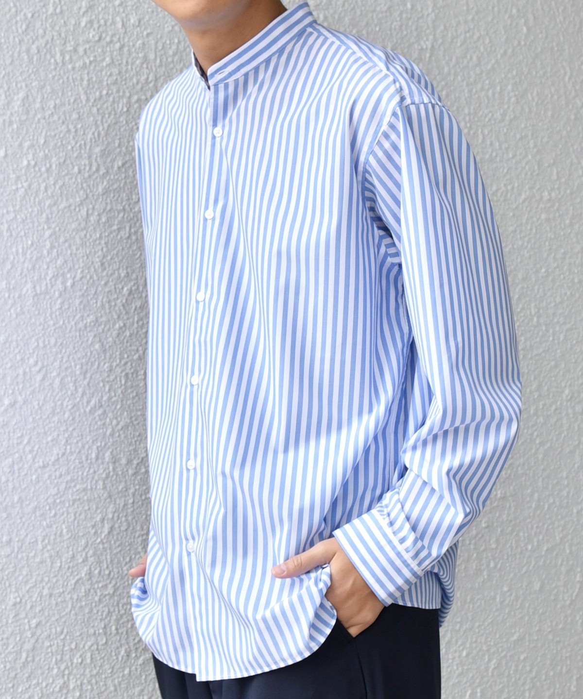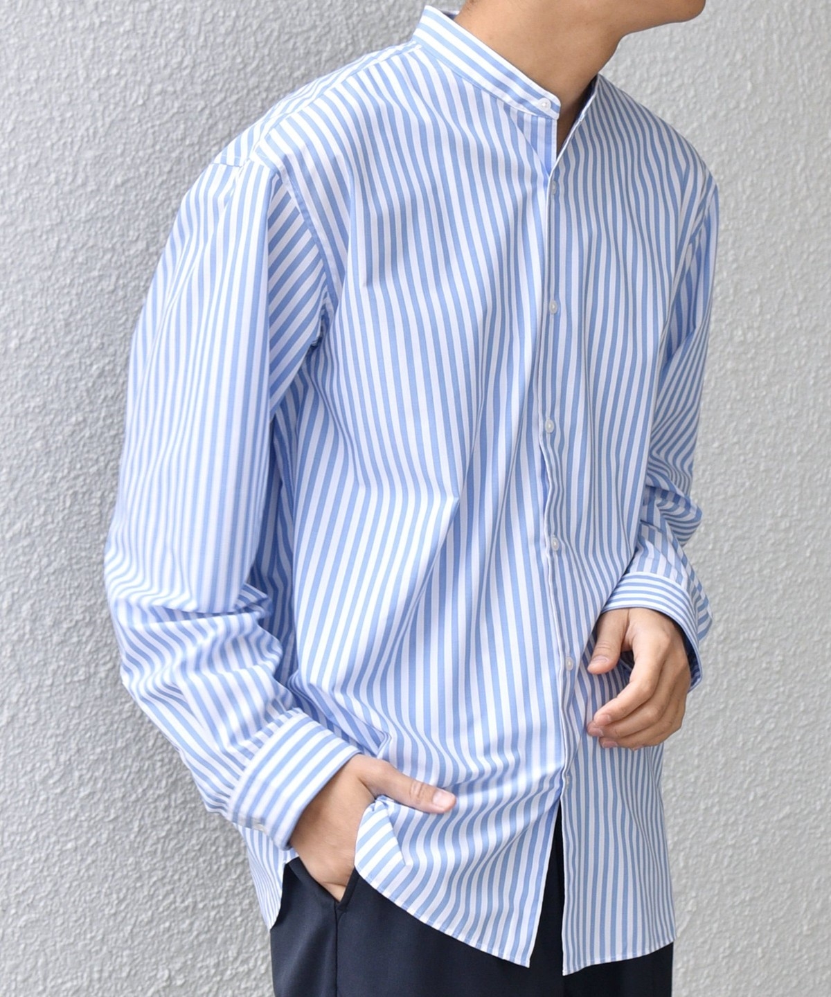 ビジネスからカジュアルまで幅広く活躍する、きれいめバンドカラーシャツ