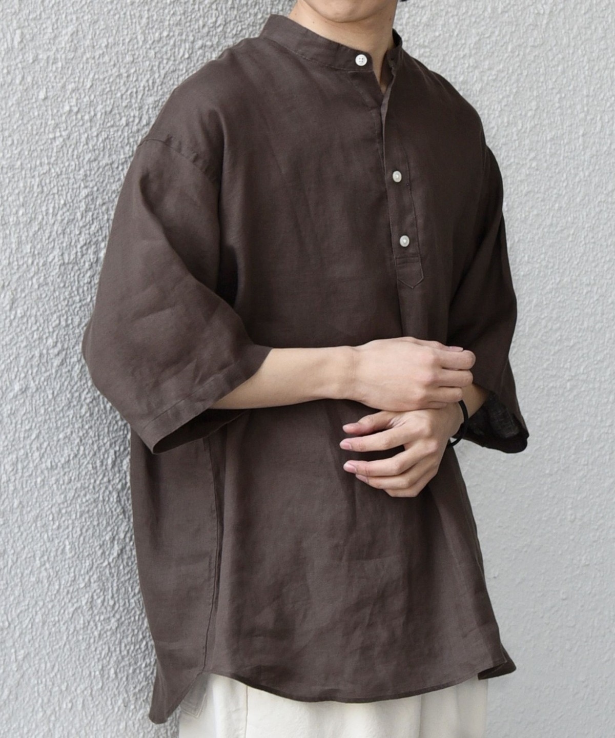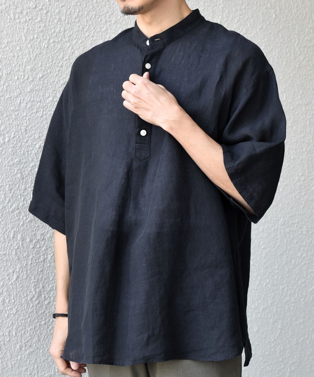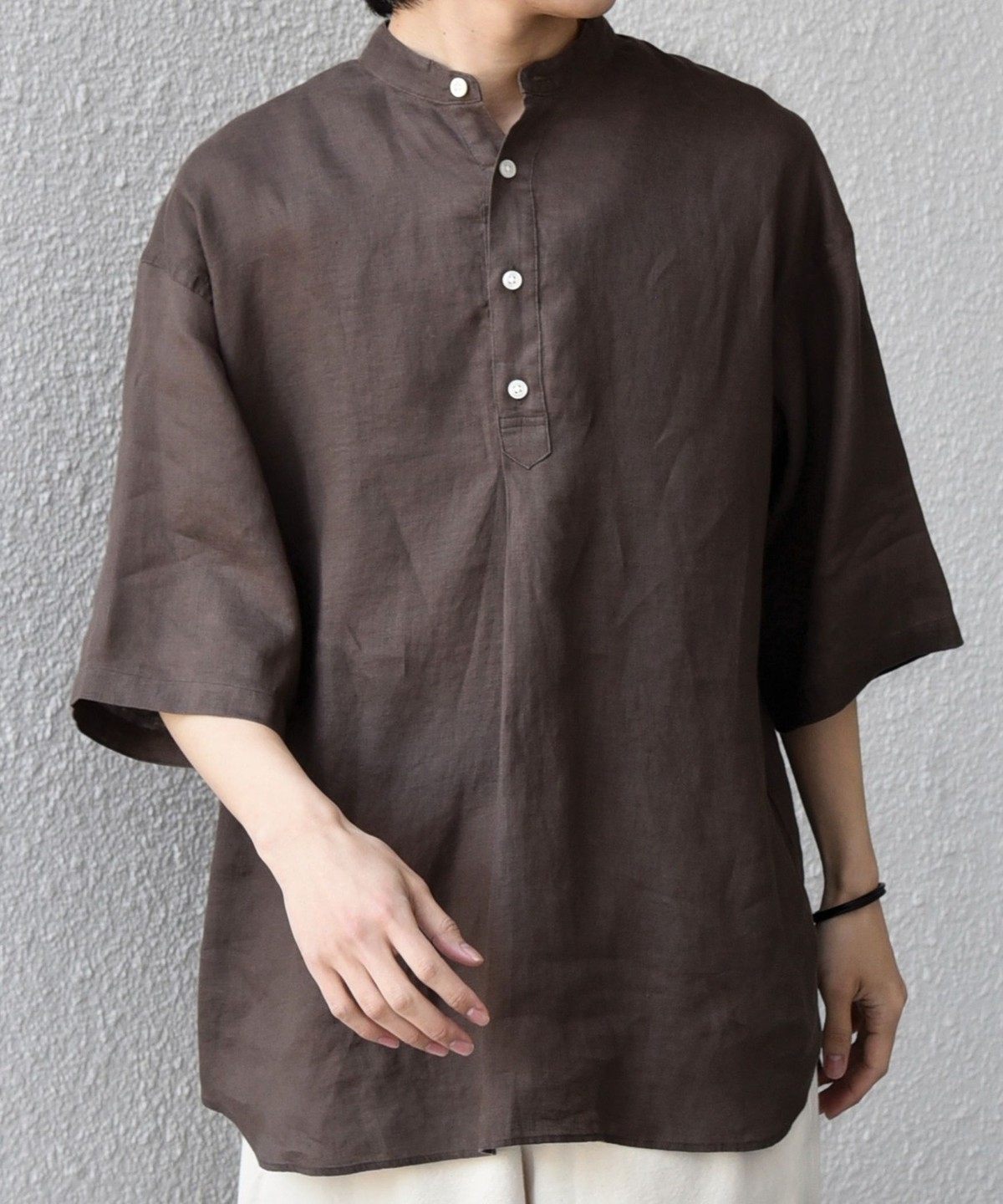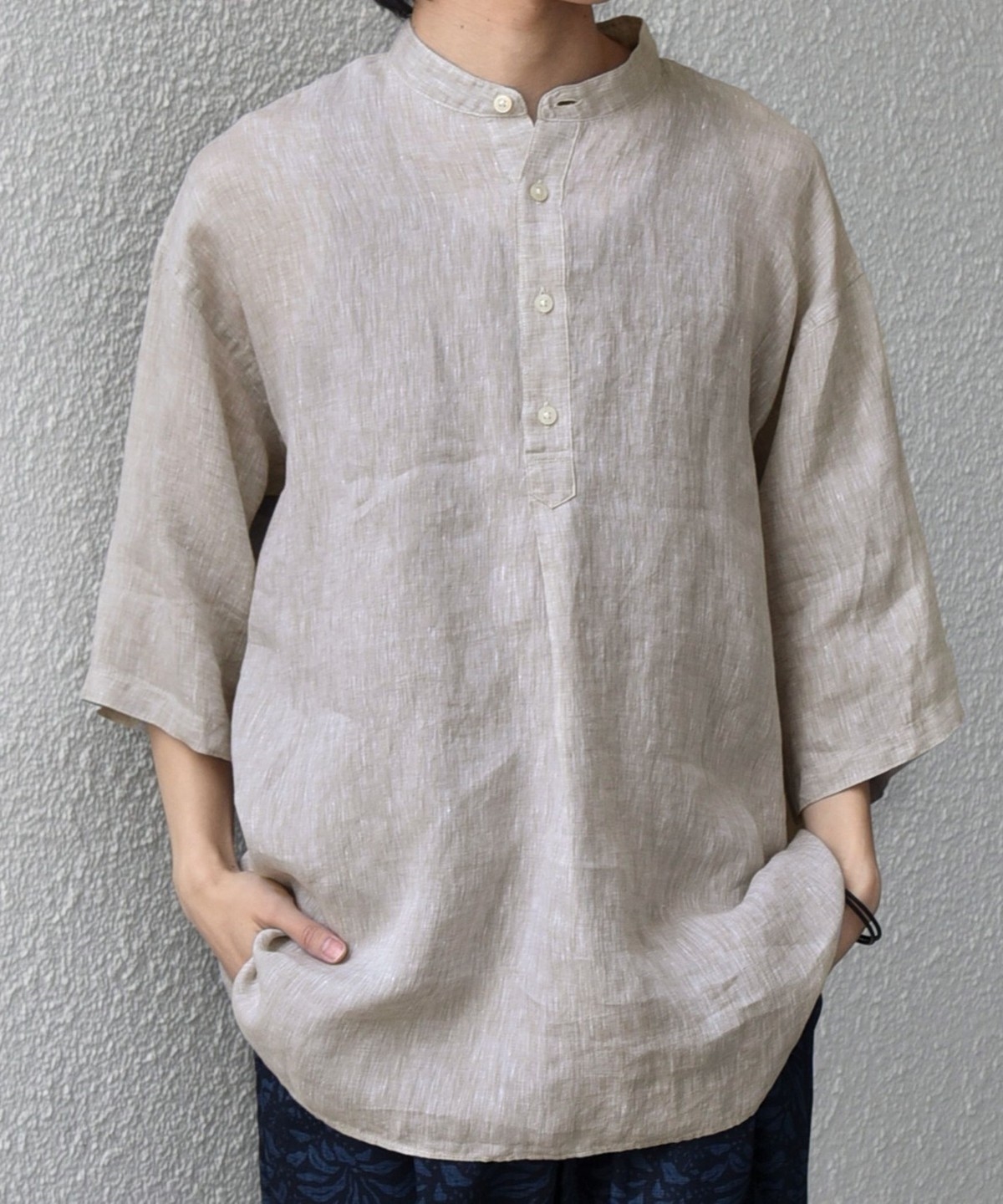 夏の定番人気アイテム!リネン素材を使用したプルオーバーシャツ