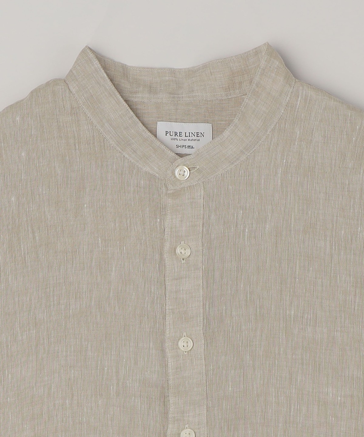 3. SHIPS any:〈洗濯機可能〉ピュアリネン バンド スキッパー ハーフスリーブ プルオーバー シャツ 26SS◆ ライトグレー