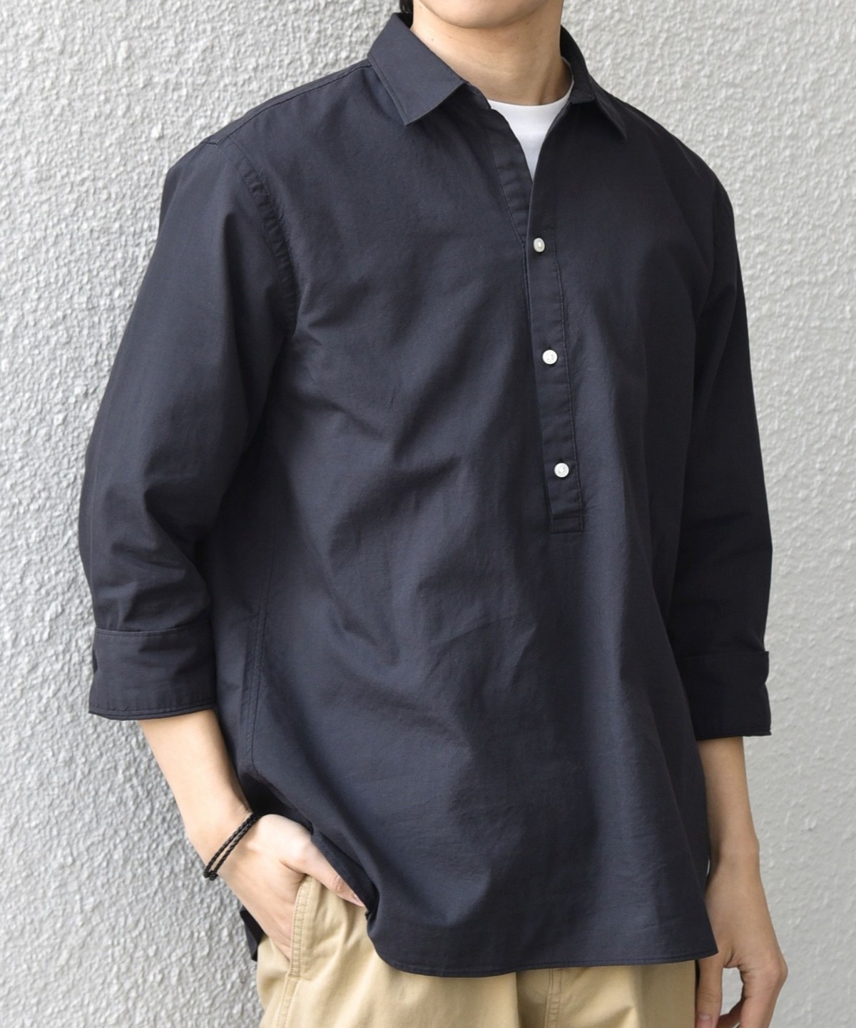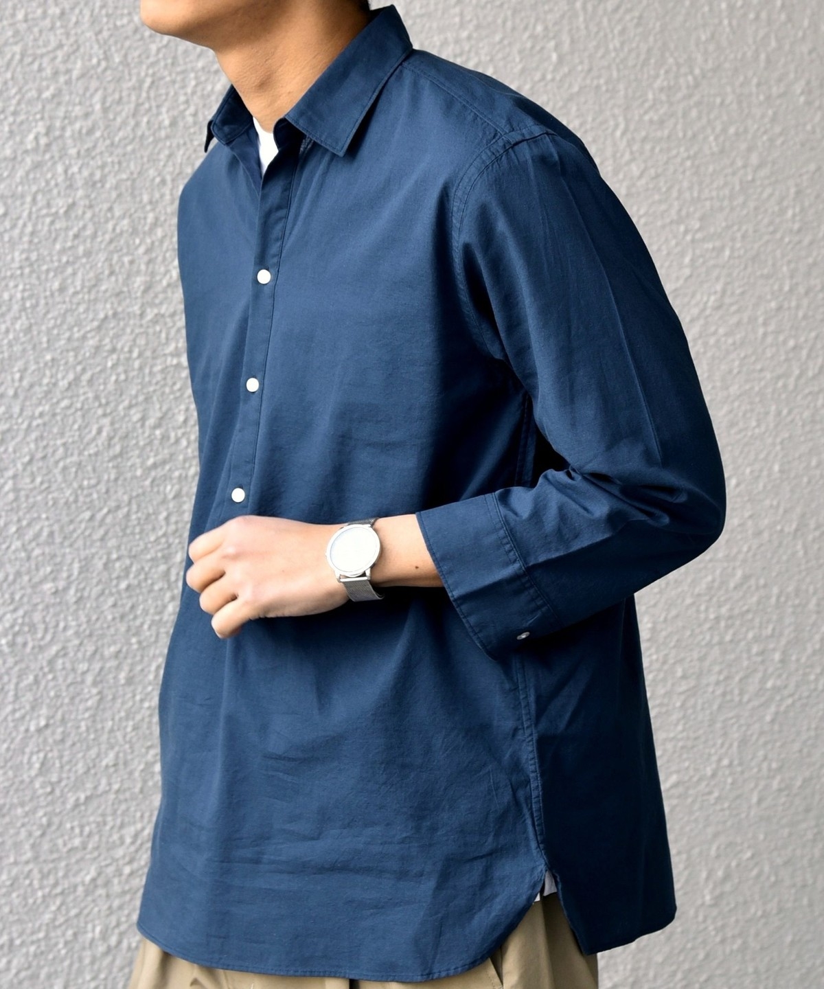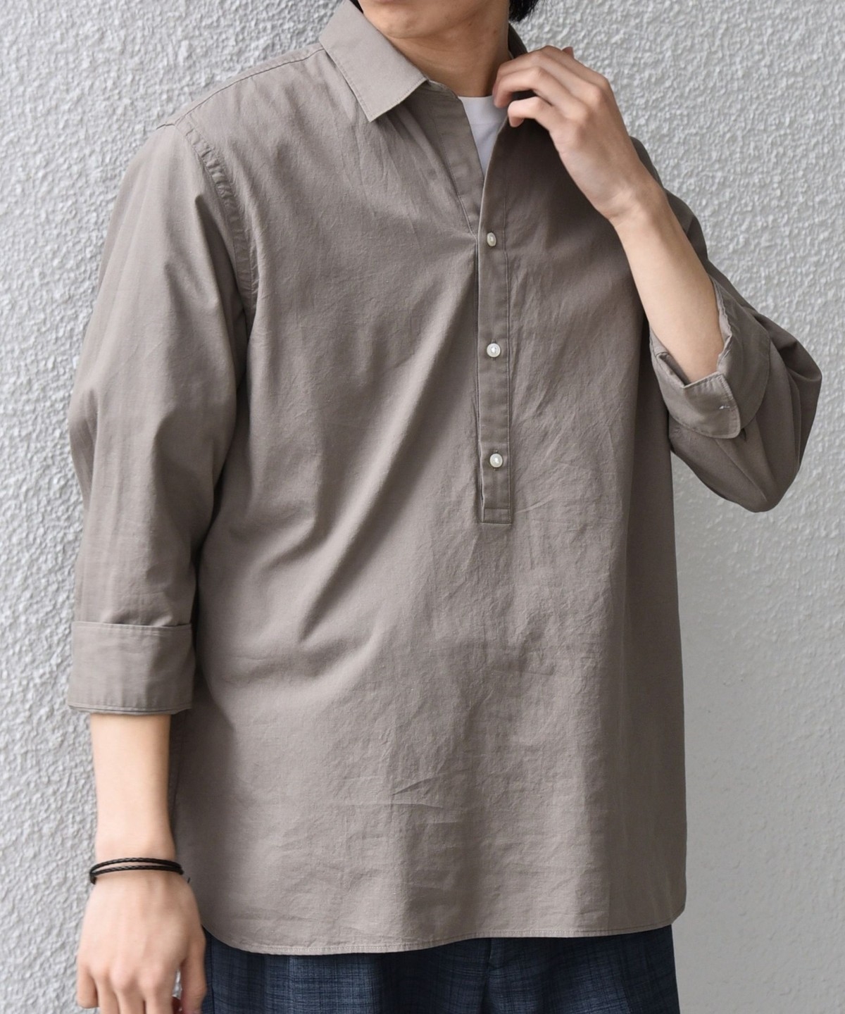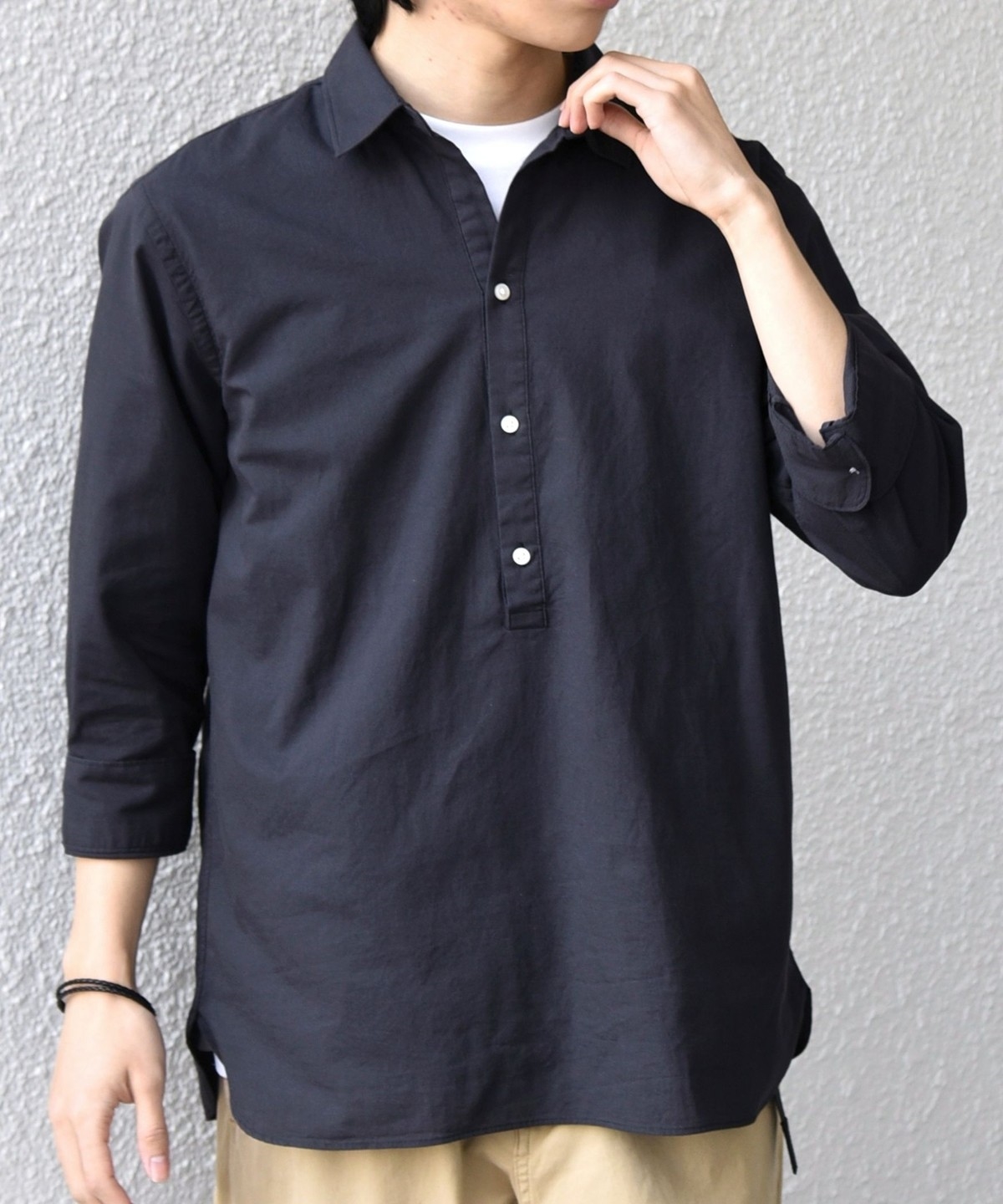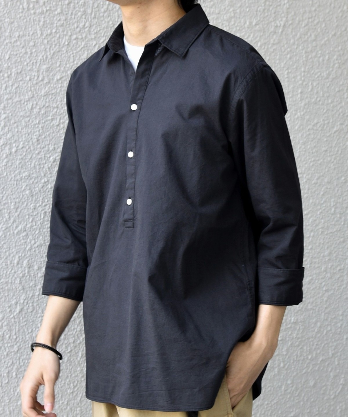 汎用性抜群!コットンリネン素材を使用した7分袖のプルオーバーシャツ
