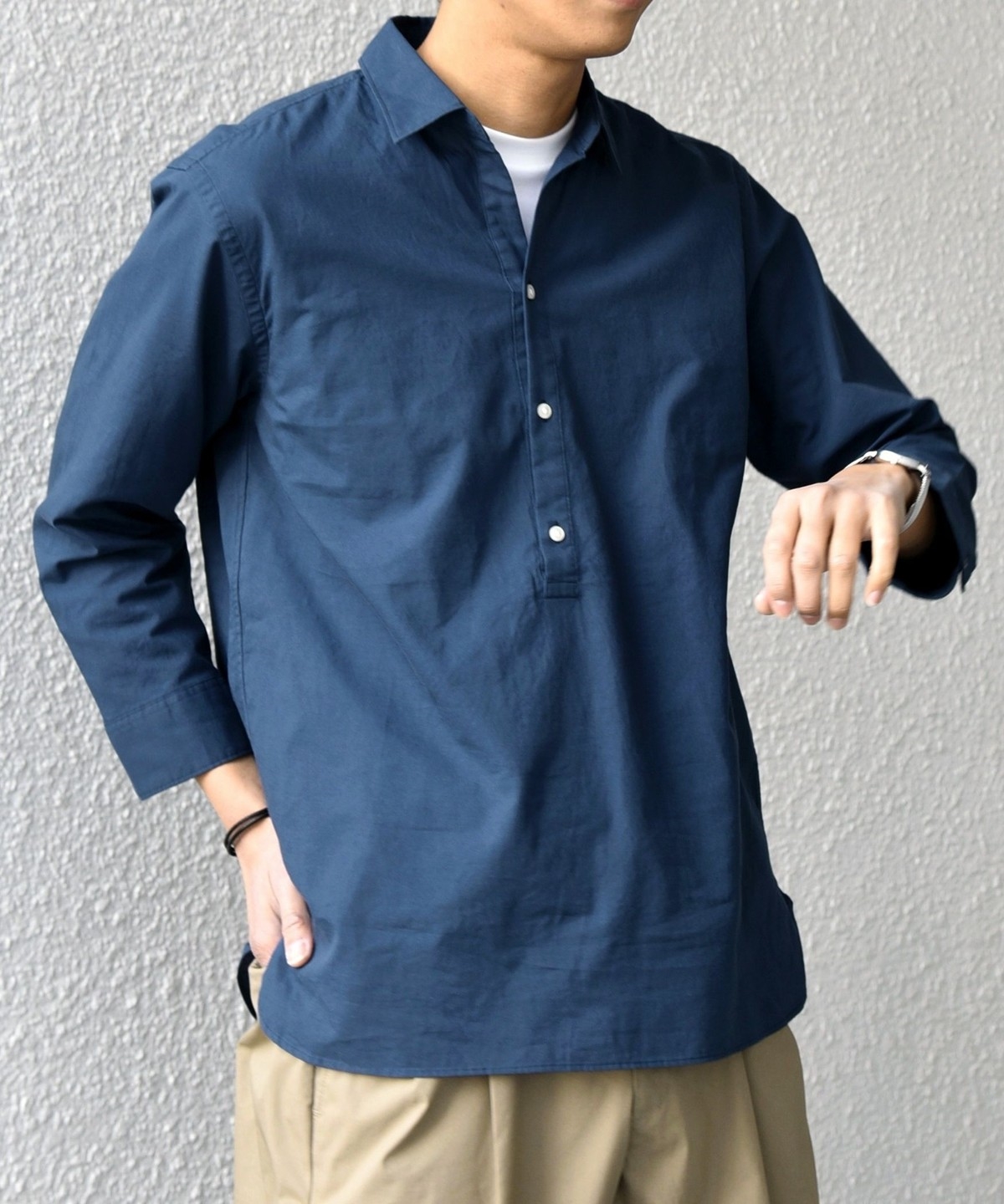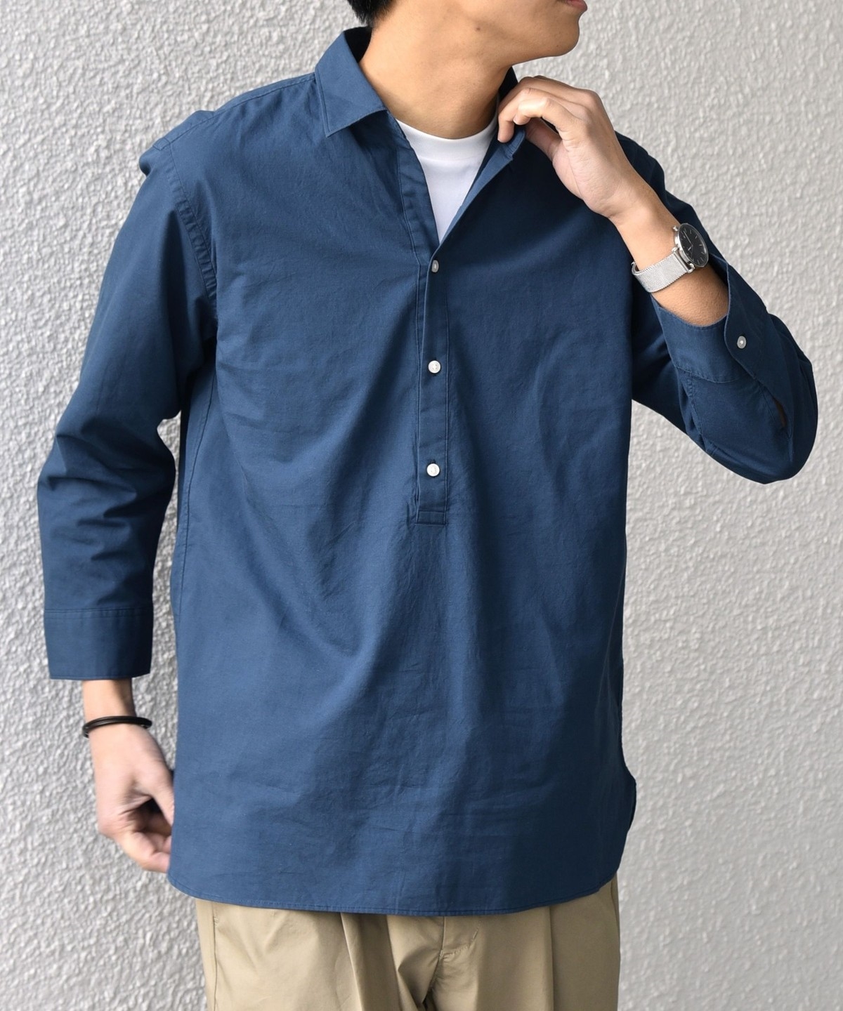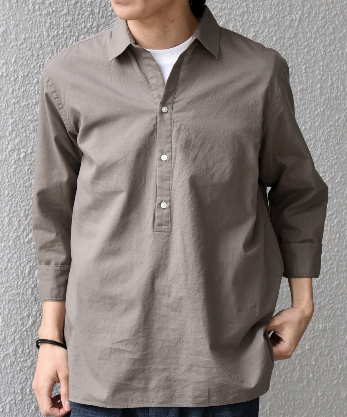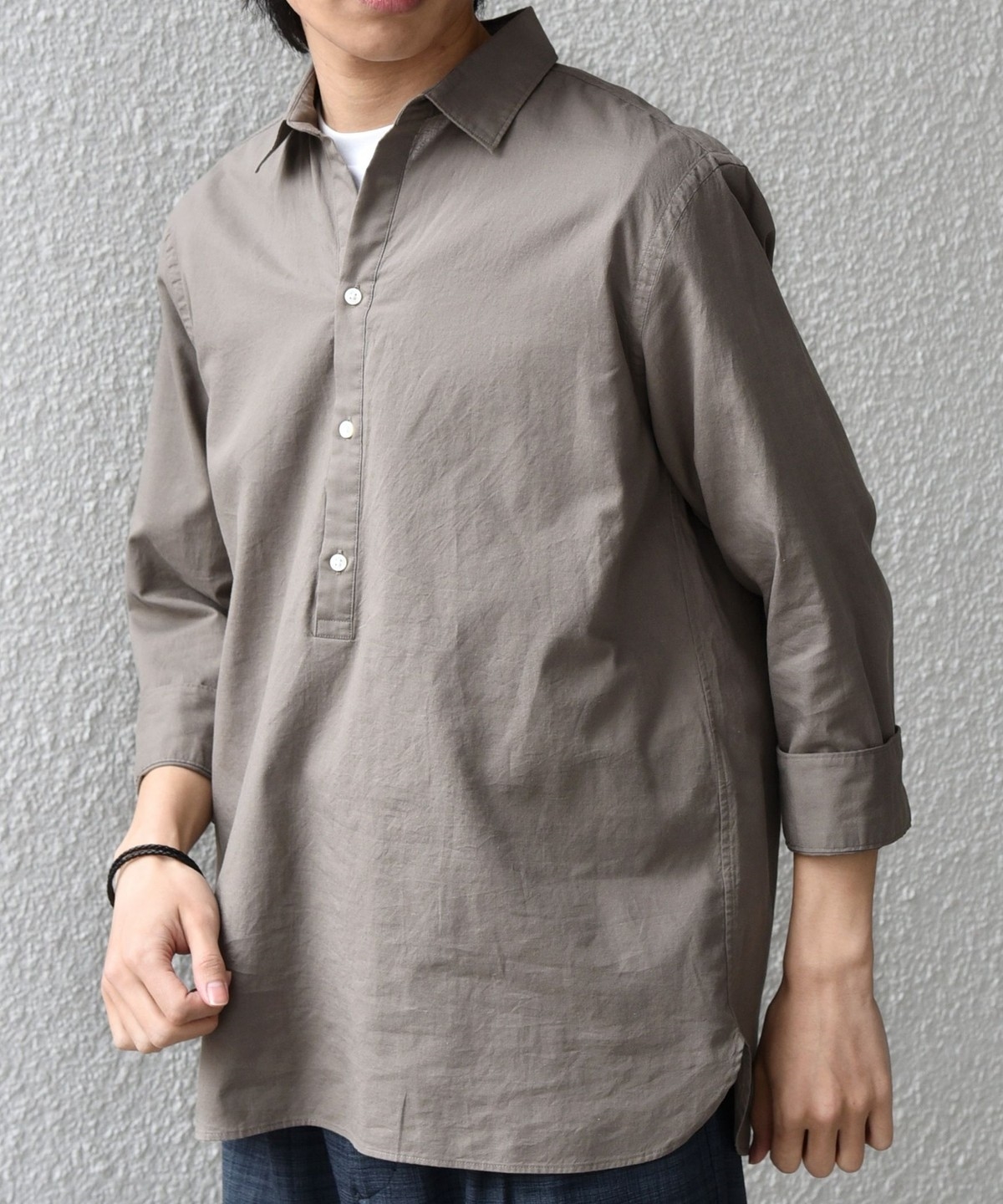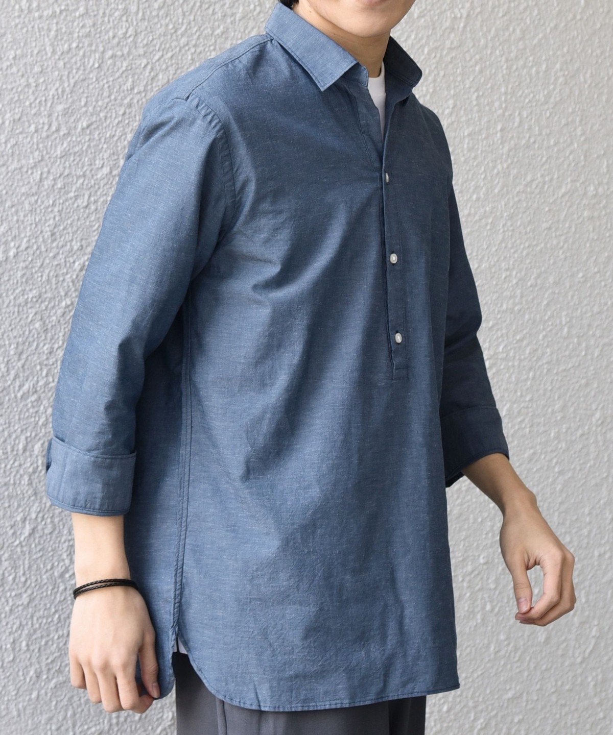 汎用性抜群!コットンリネン素材を使用した7分袖のプルオーバーシャツ