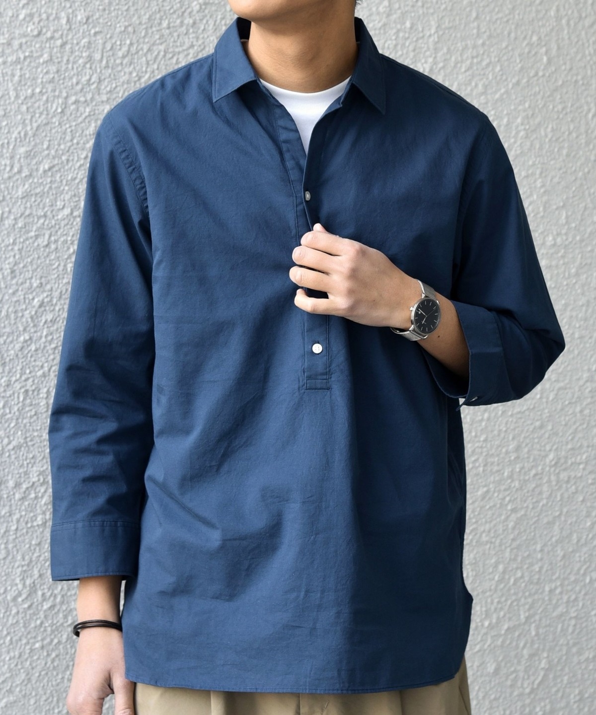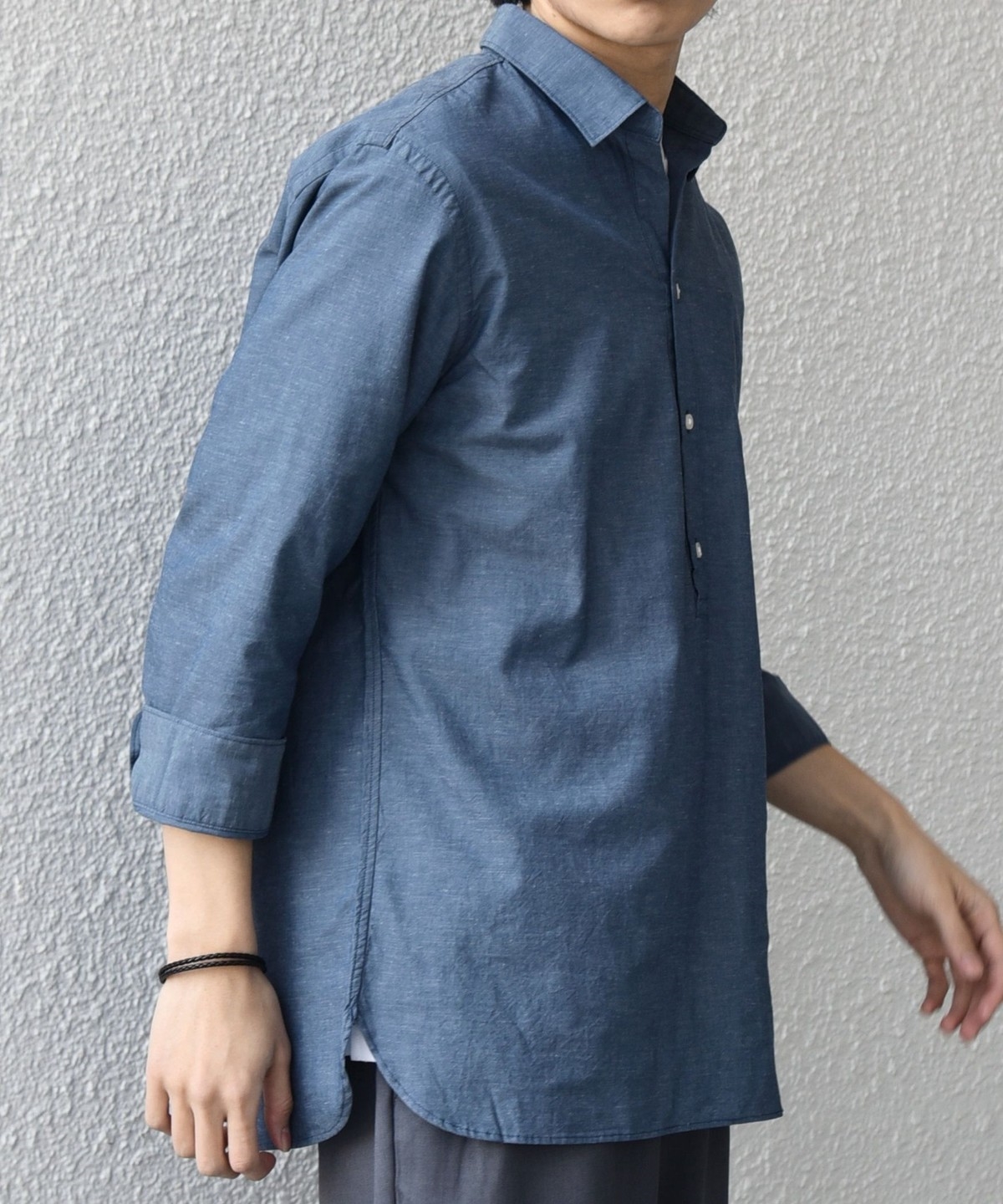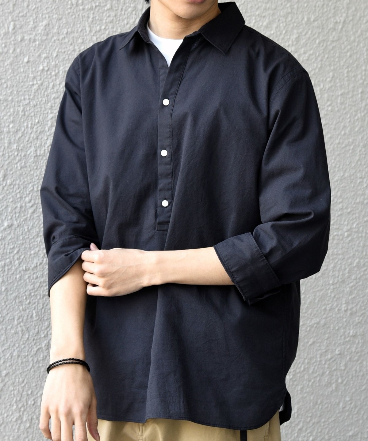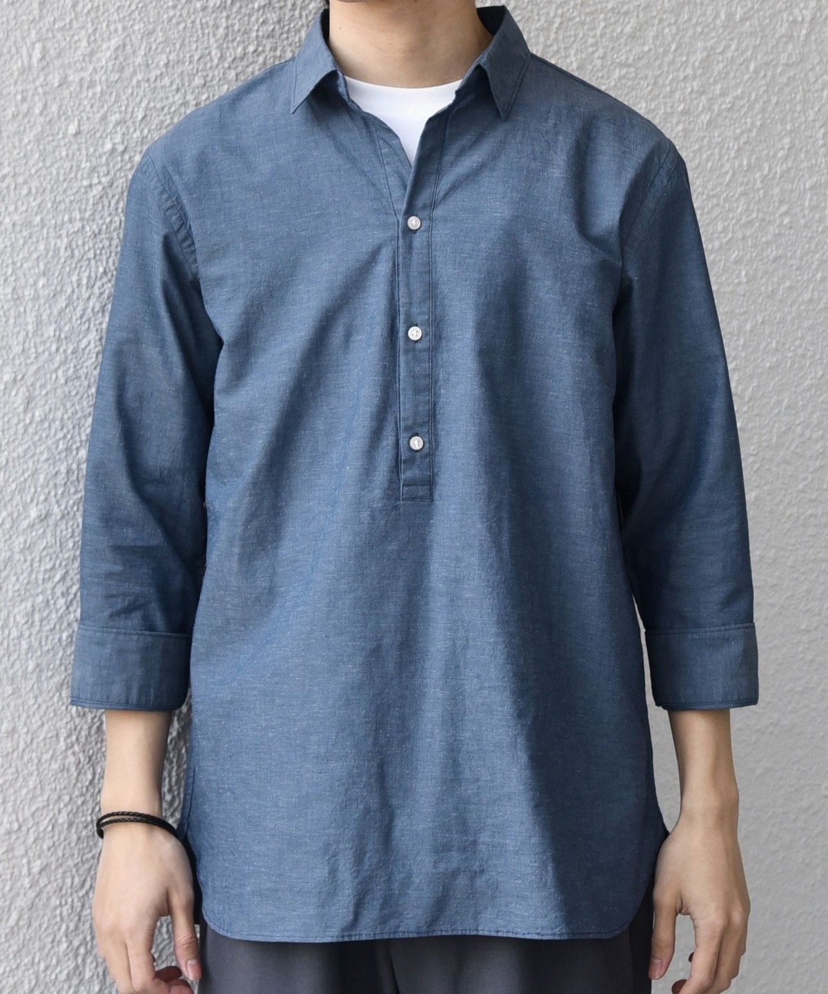 汎用性抜群!コットンリネン素材を使用した7分袖のプルオーバーシャツ