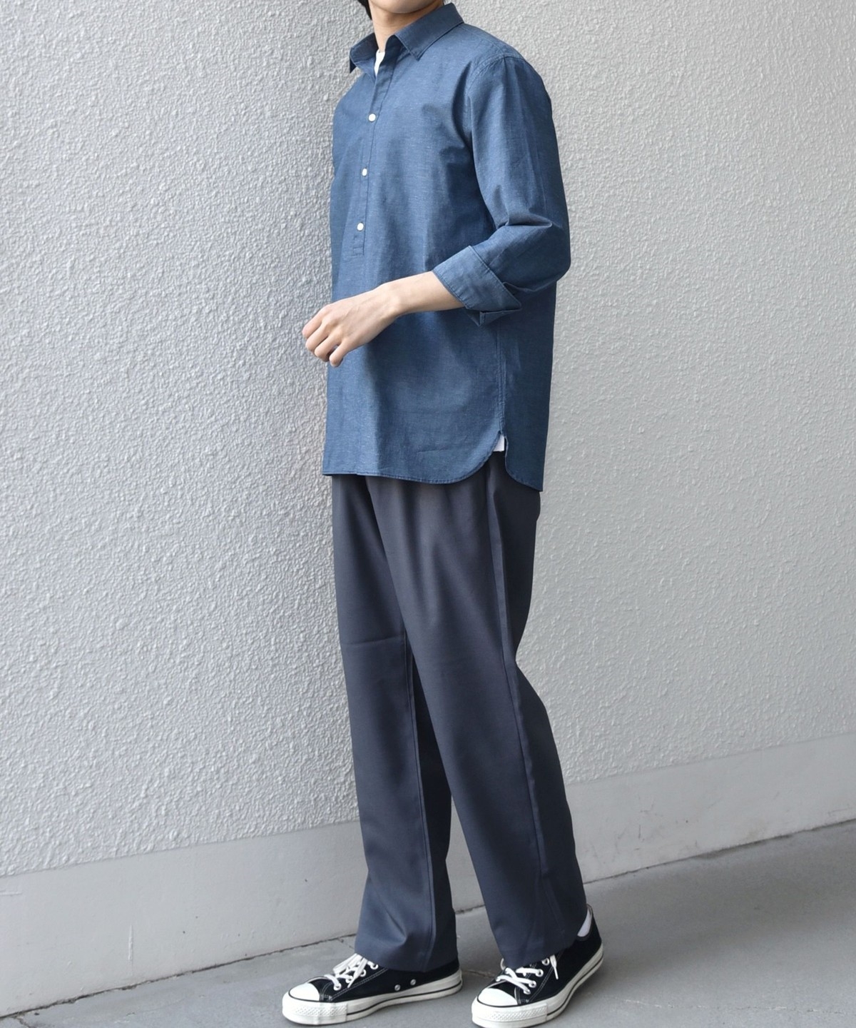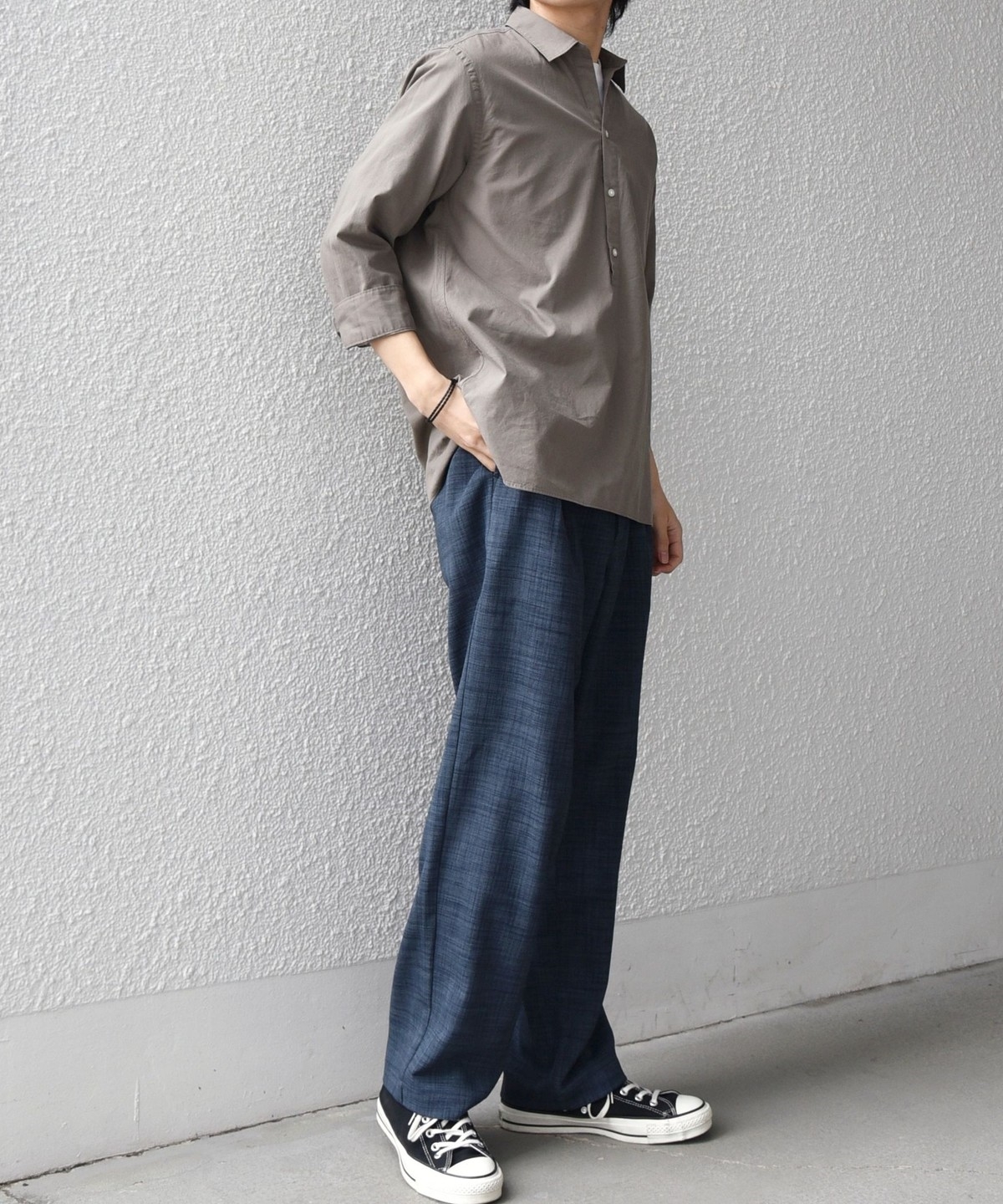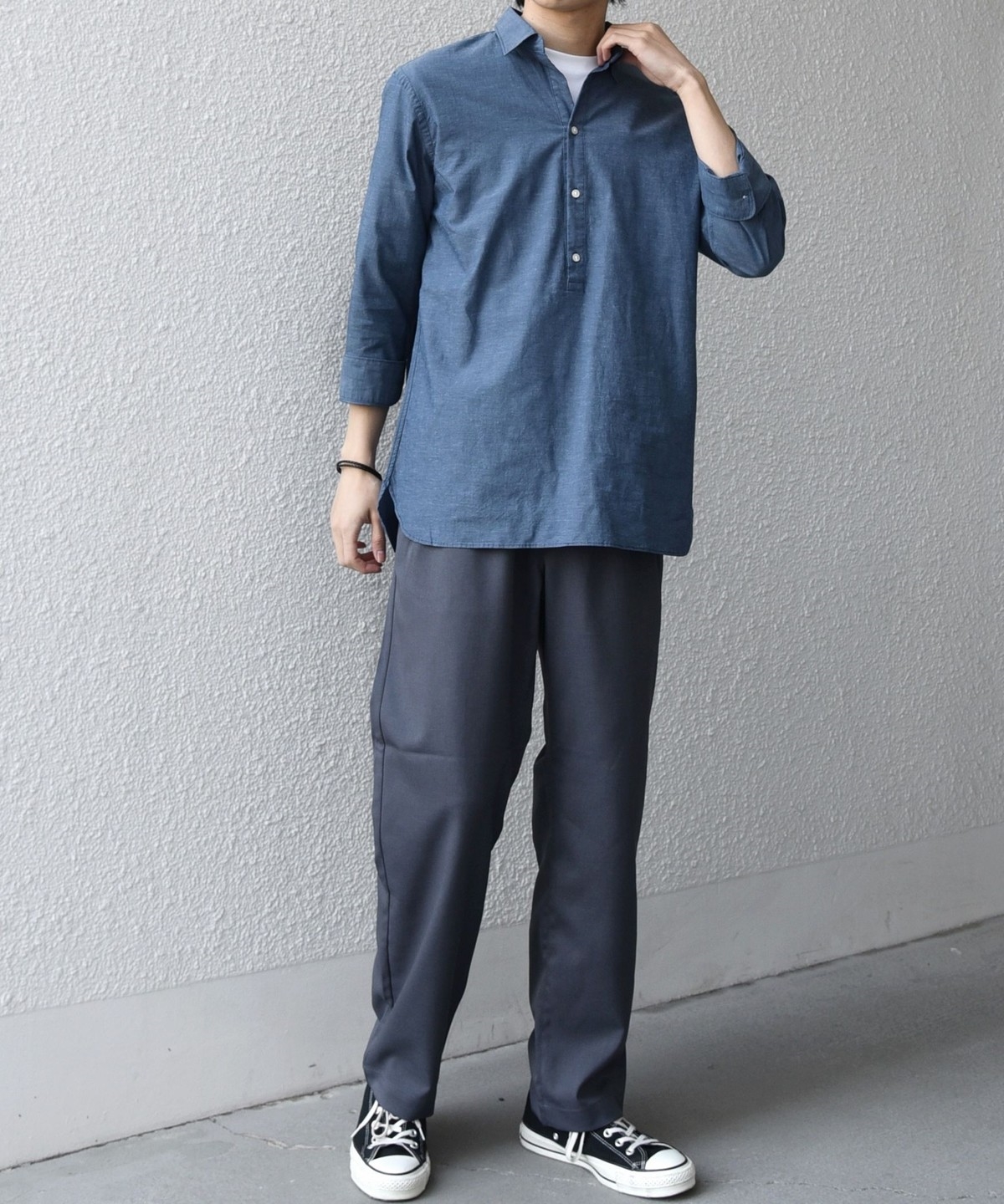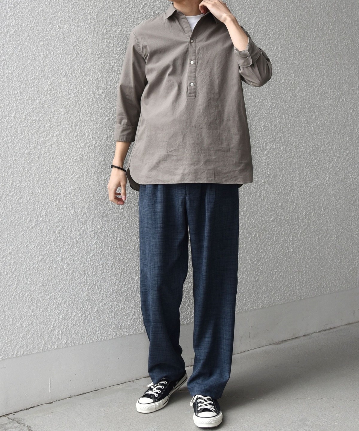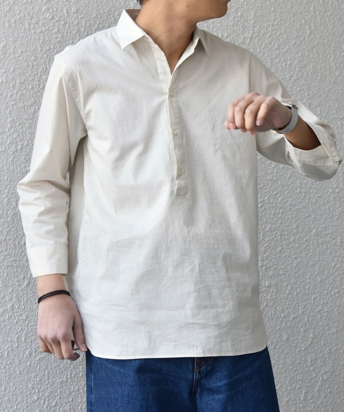 汎用性抜群!コットンリネン素材を使用した7分袖のプルオーバーシャツ