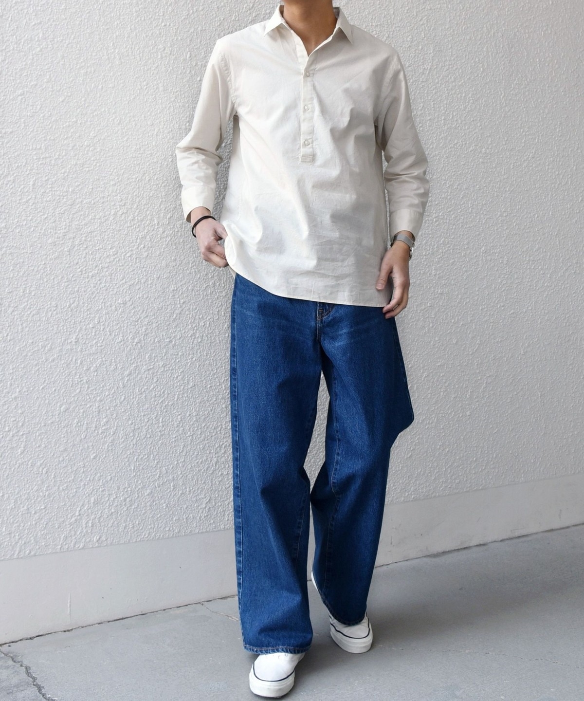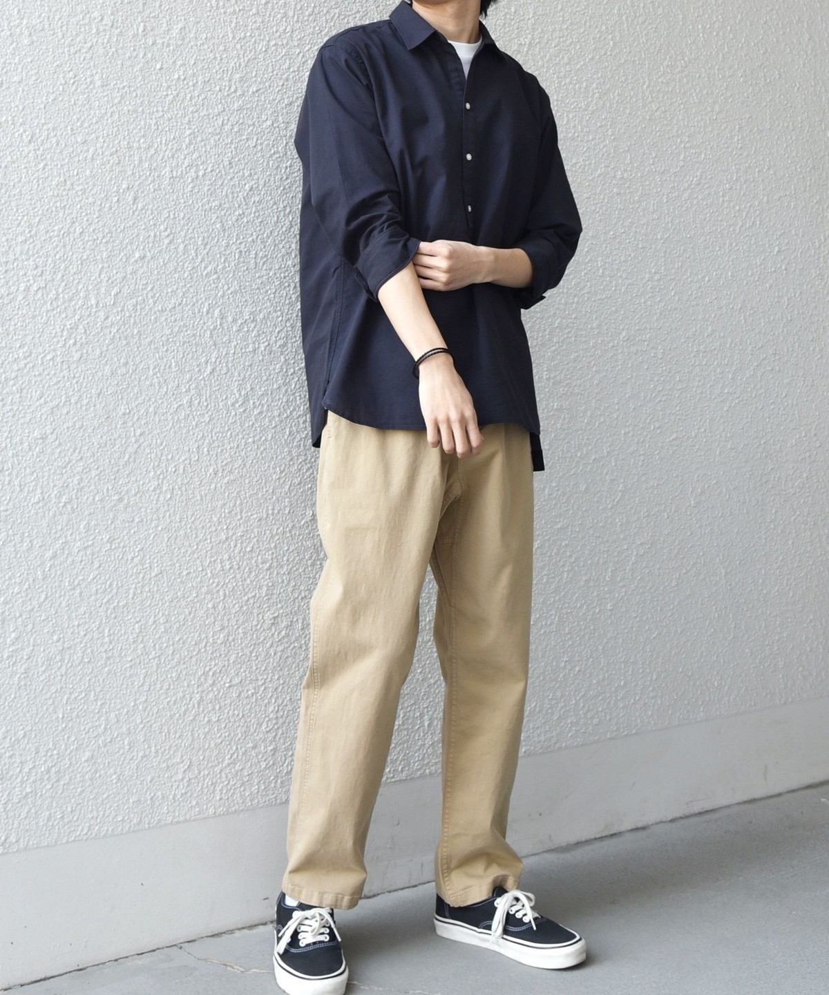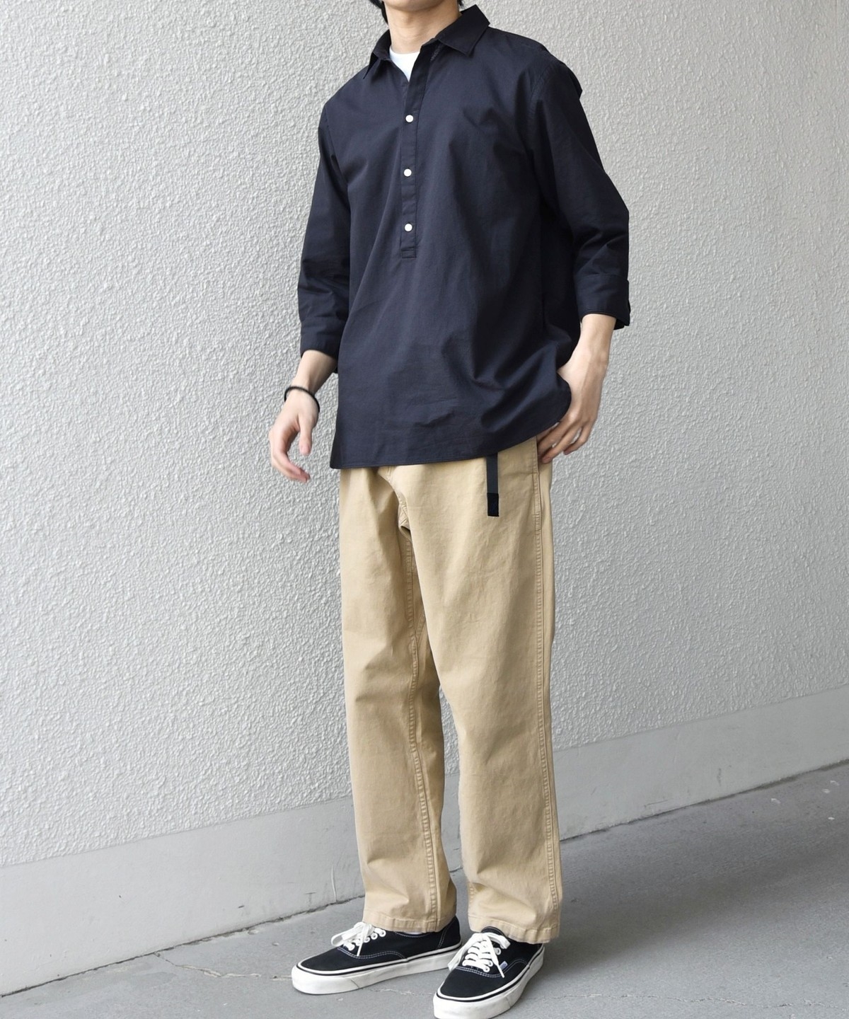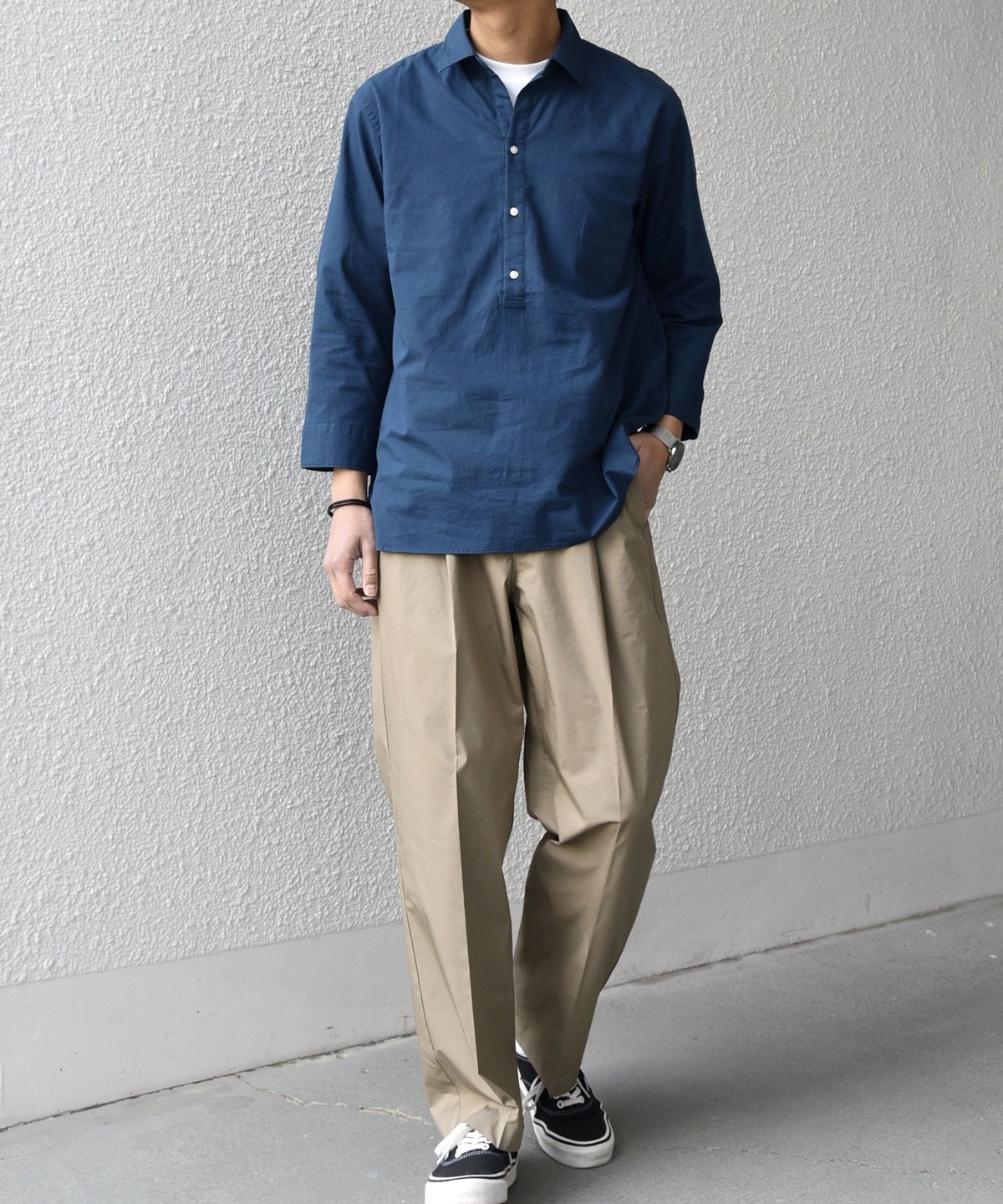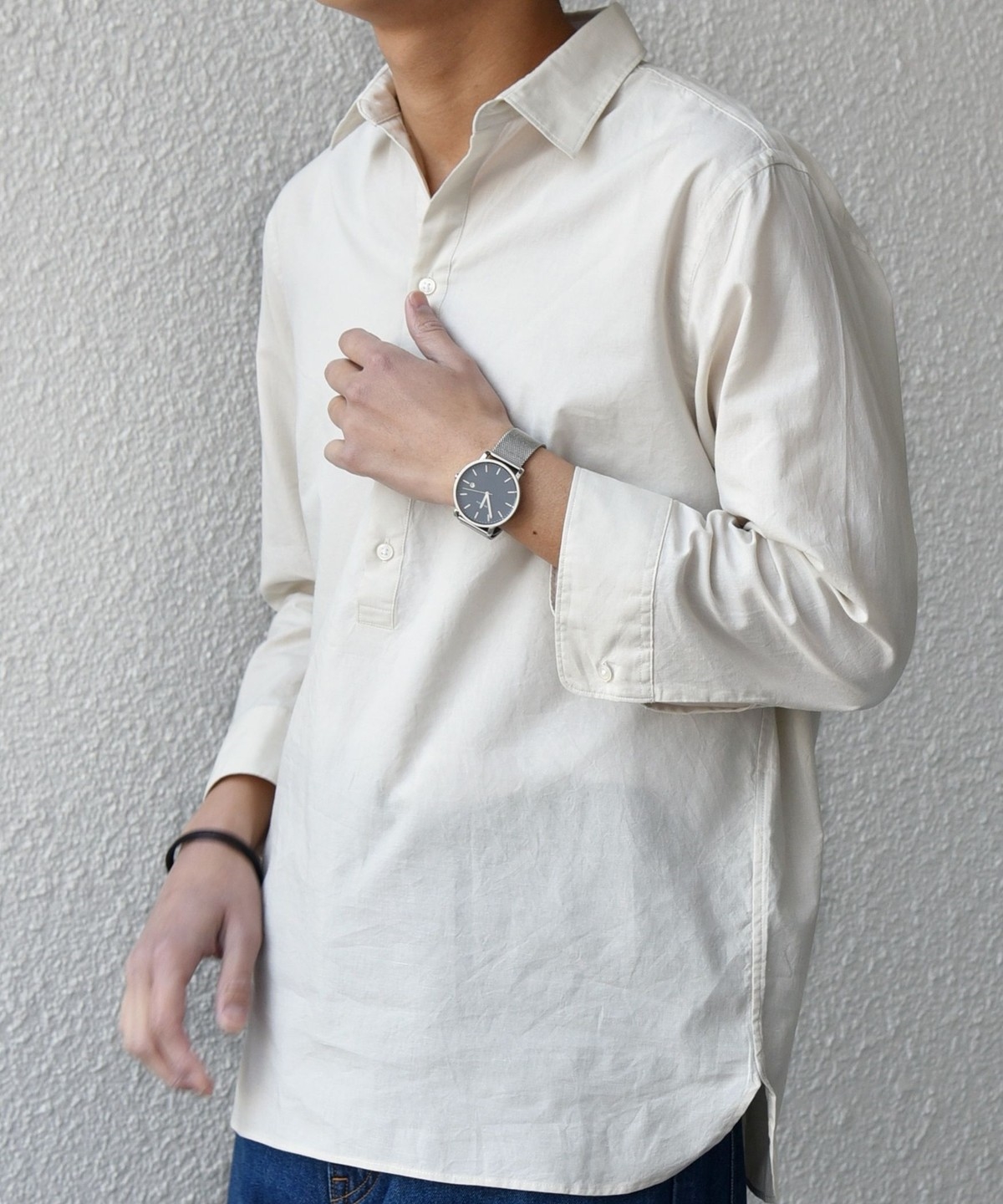 汎用性抜群!コットンリネン素材を使用した7分袖のプルオーバーシャツ