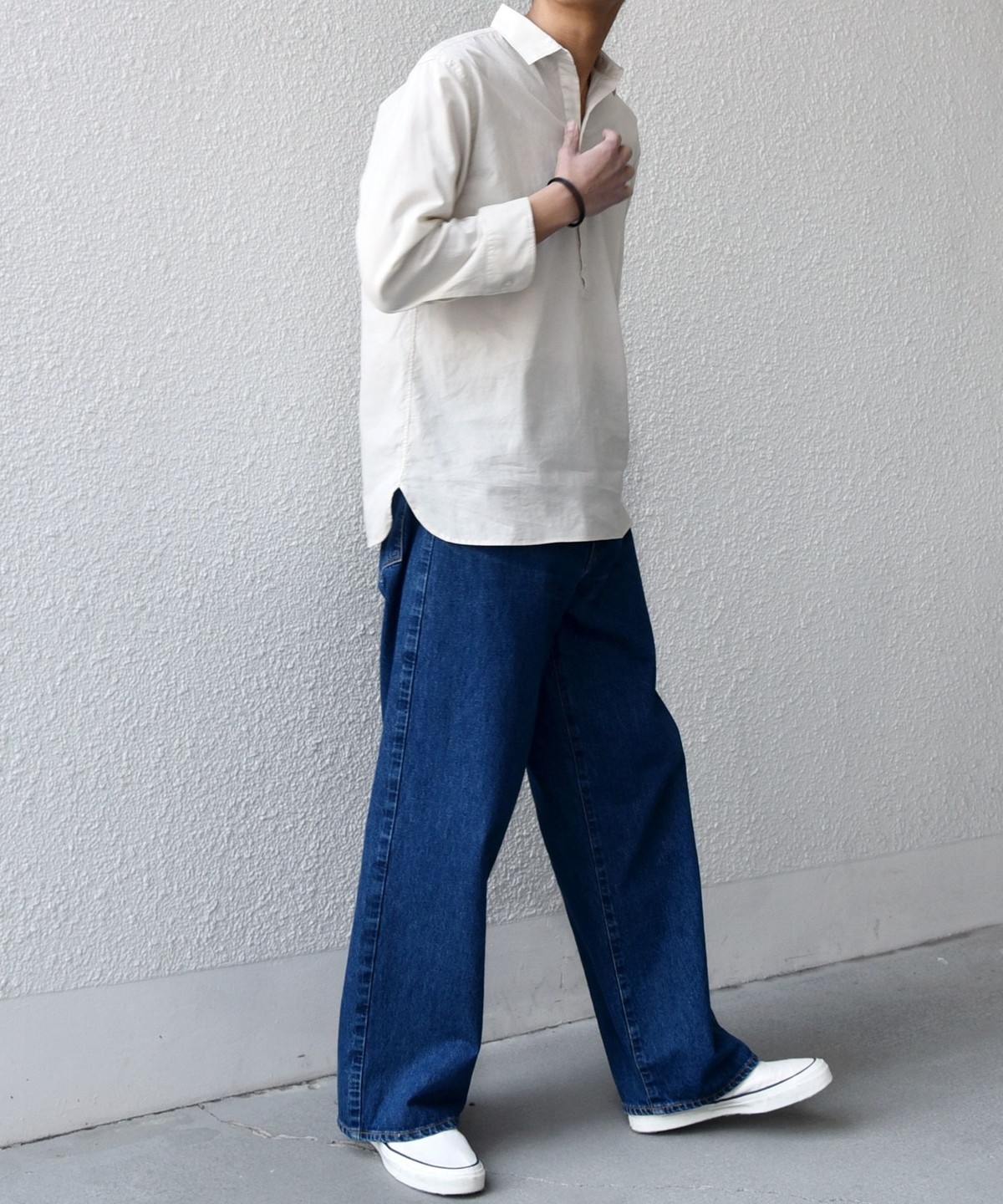 スッキリ見えるサイジングなので、様々なボトムスとあわせやすく重宝します。