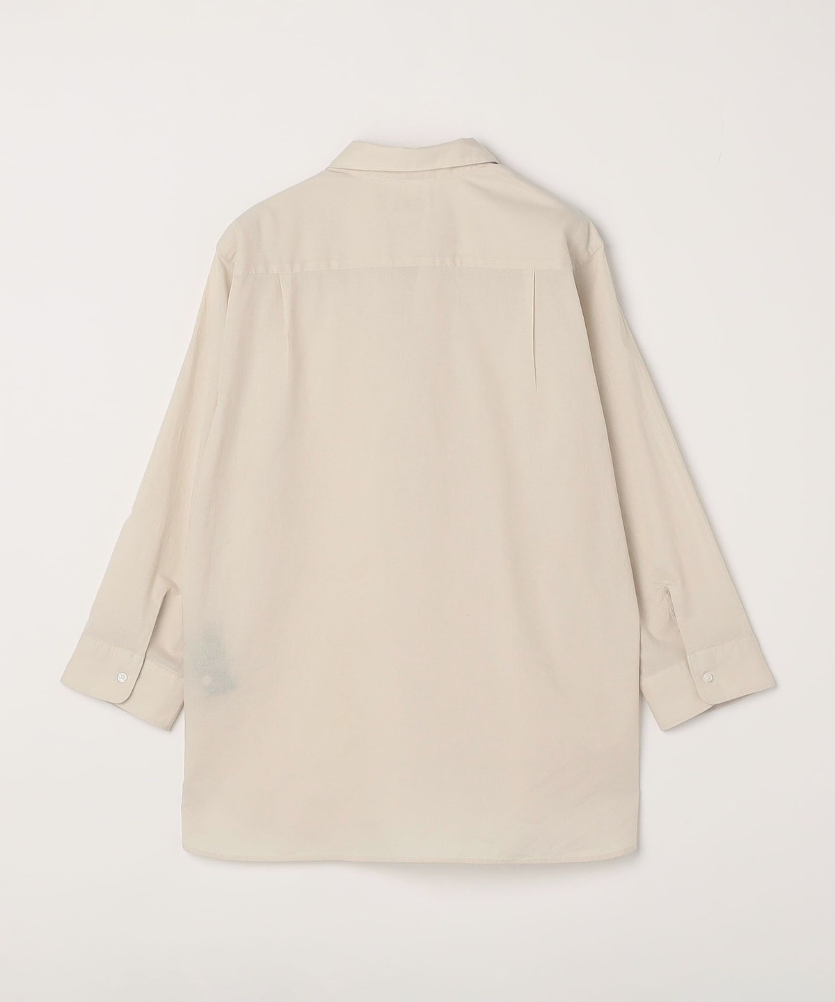 襟元は小ぶりなレギュラーカラーのスキッパーデザインで、袖口はカフス仕様のキレイめな7分袖シャツ。