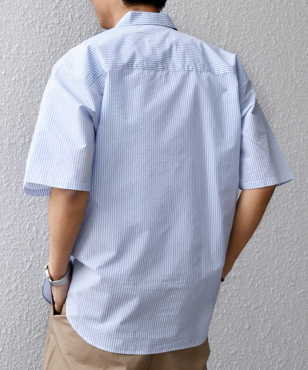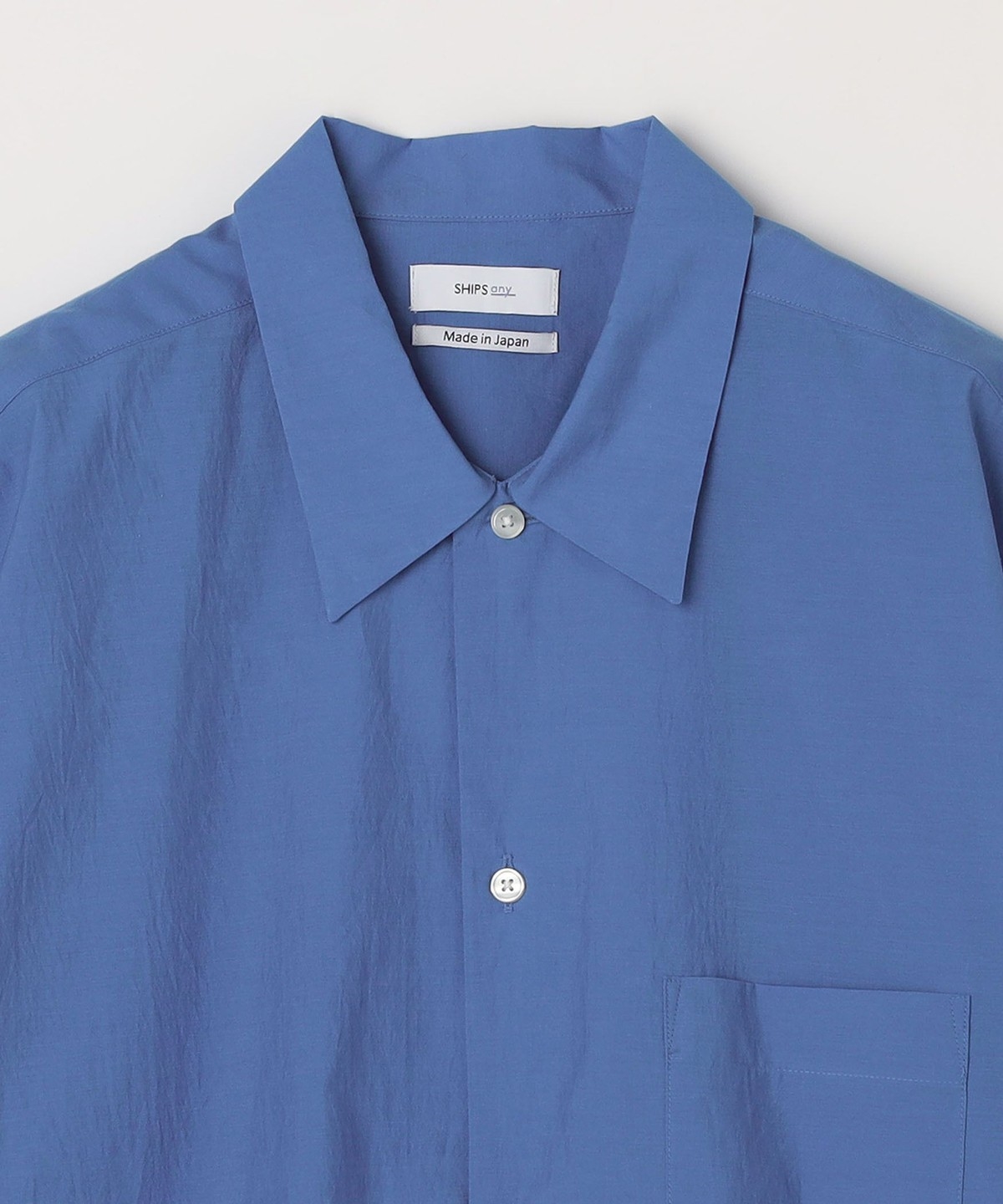 > > >  > SHIPS any: JAPAN MADE ブルー ストライプ/ソリッド レギュラーカラー 半袖 シャツ◆