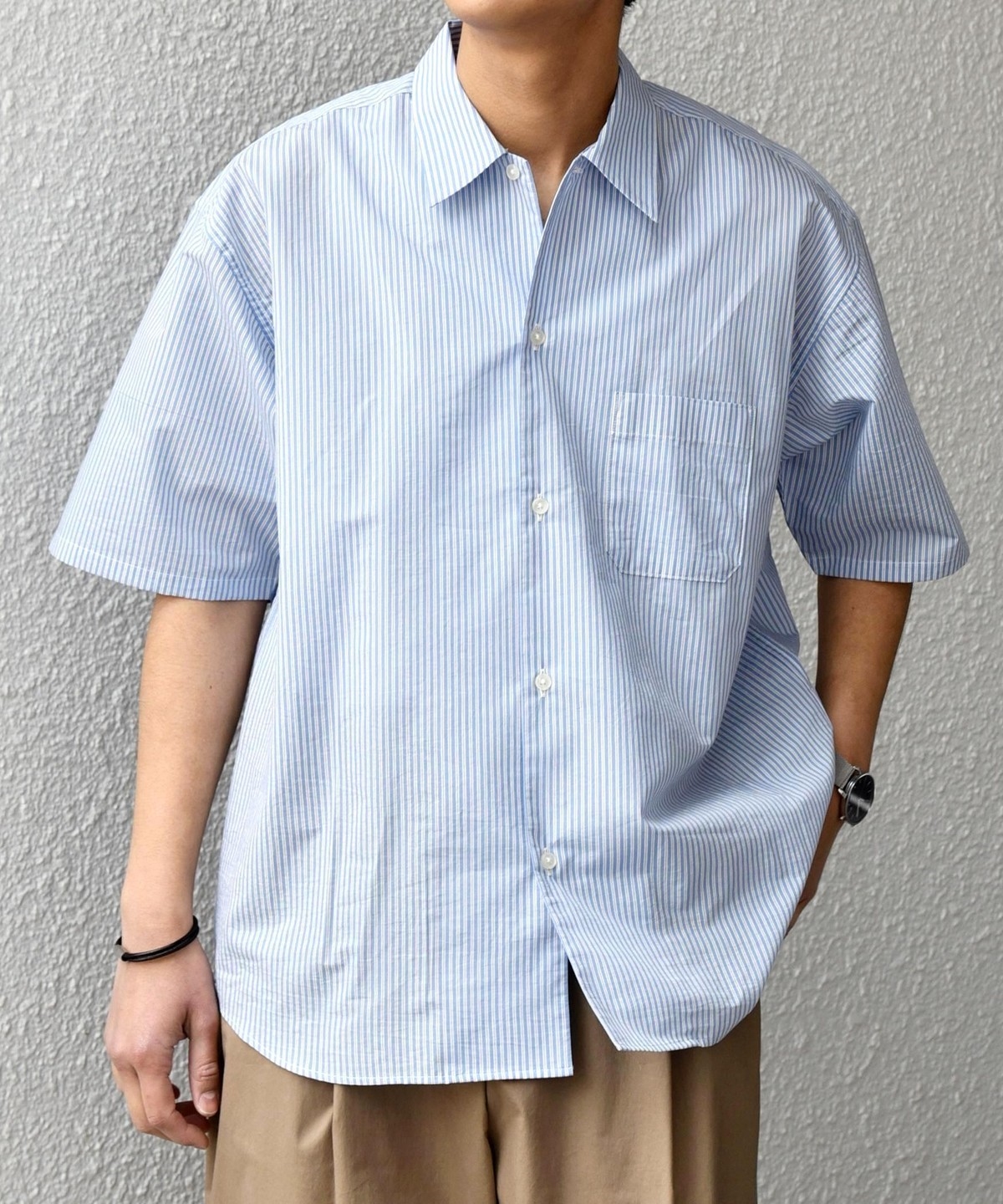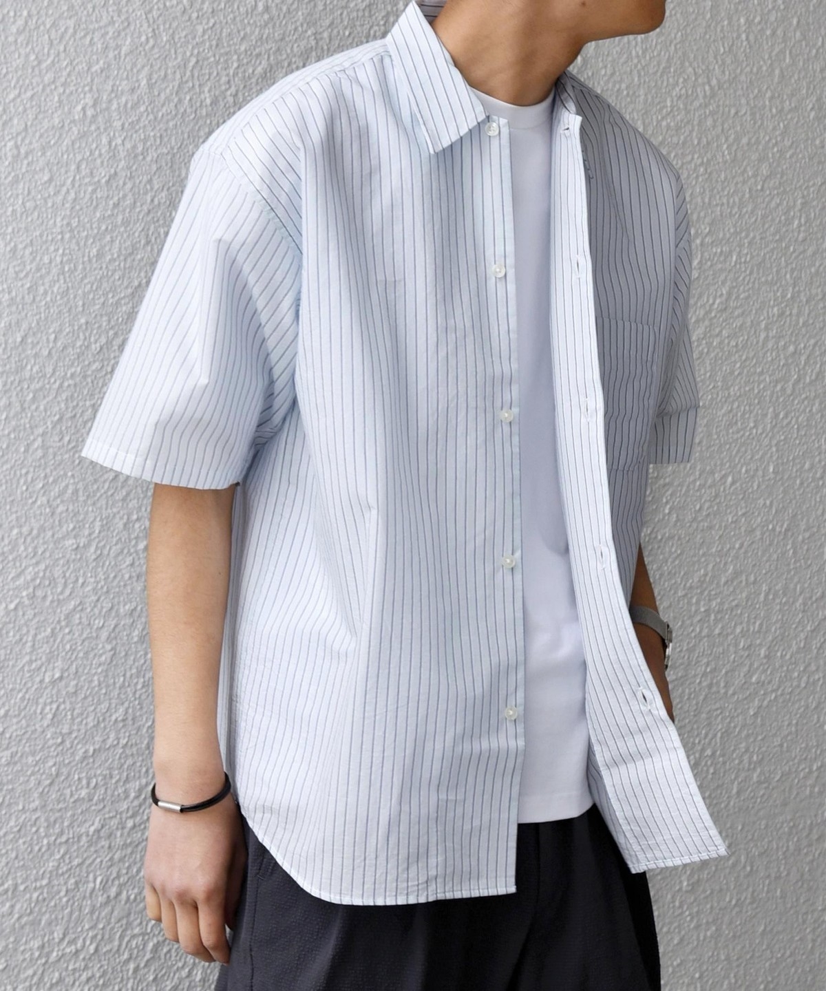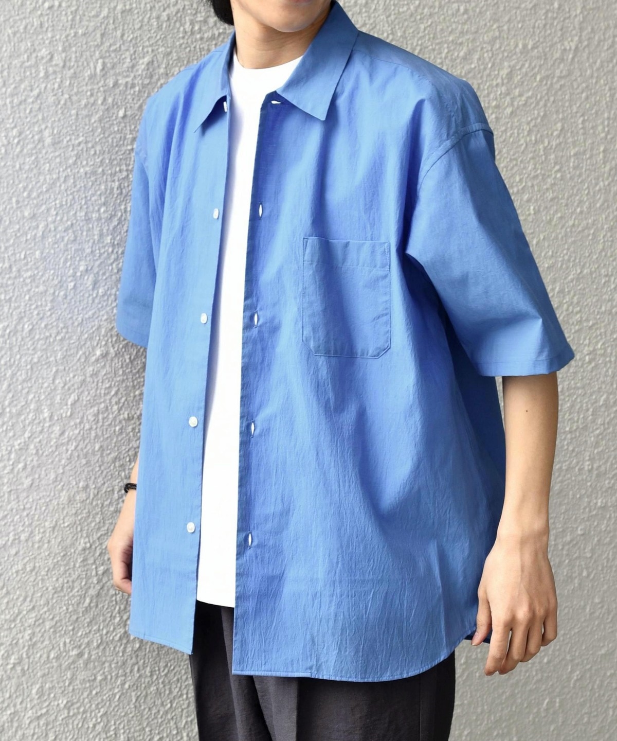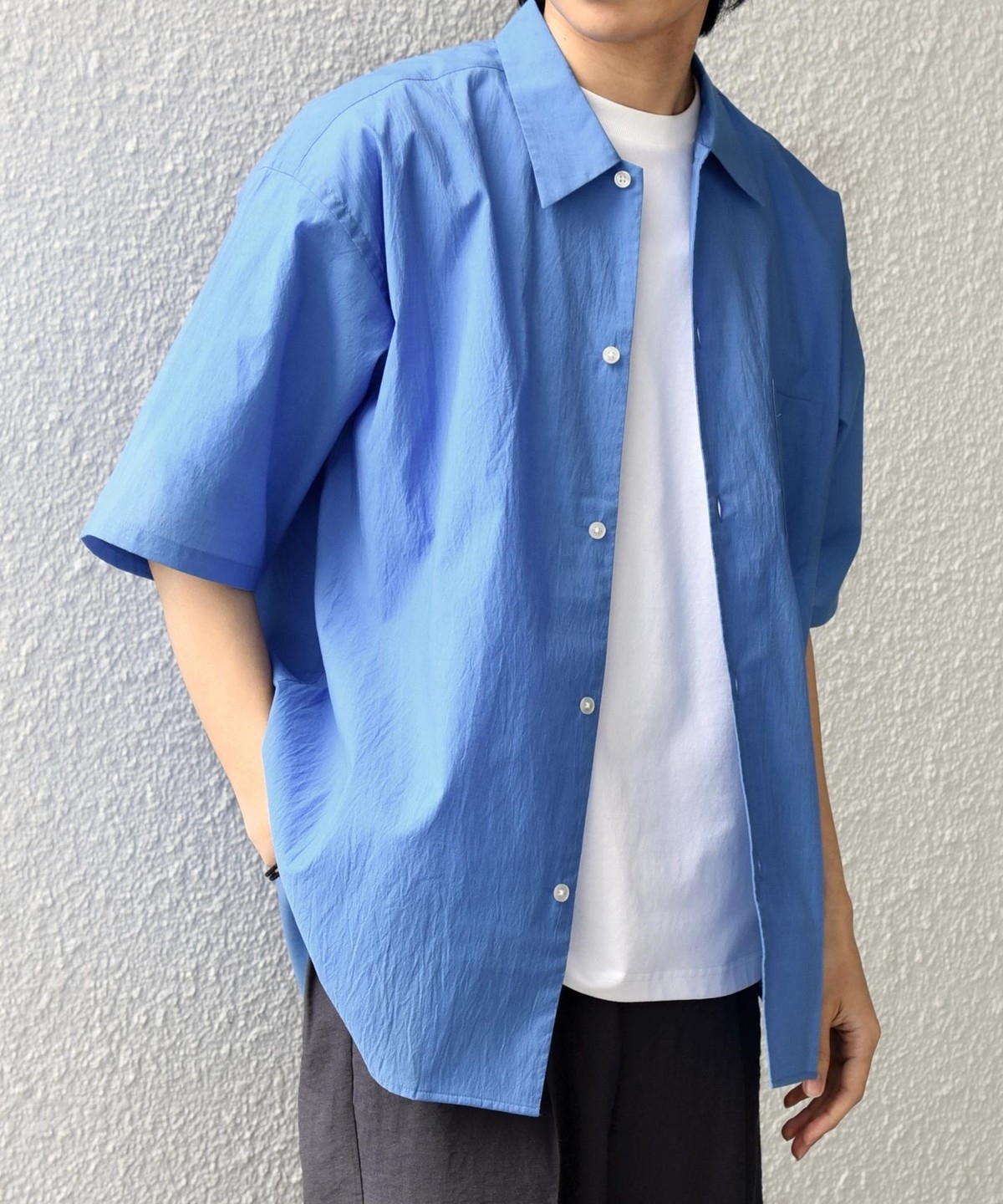 シンプルで汎用性の高い、程よいリラックスフィットの半袖シャツ。