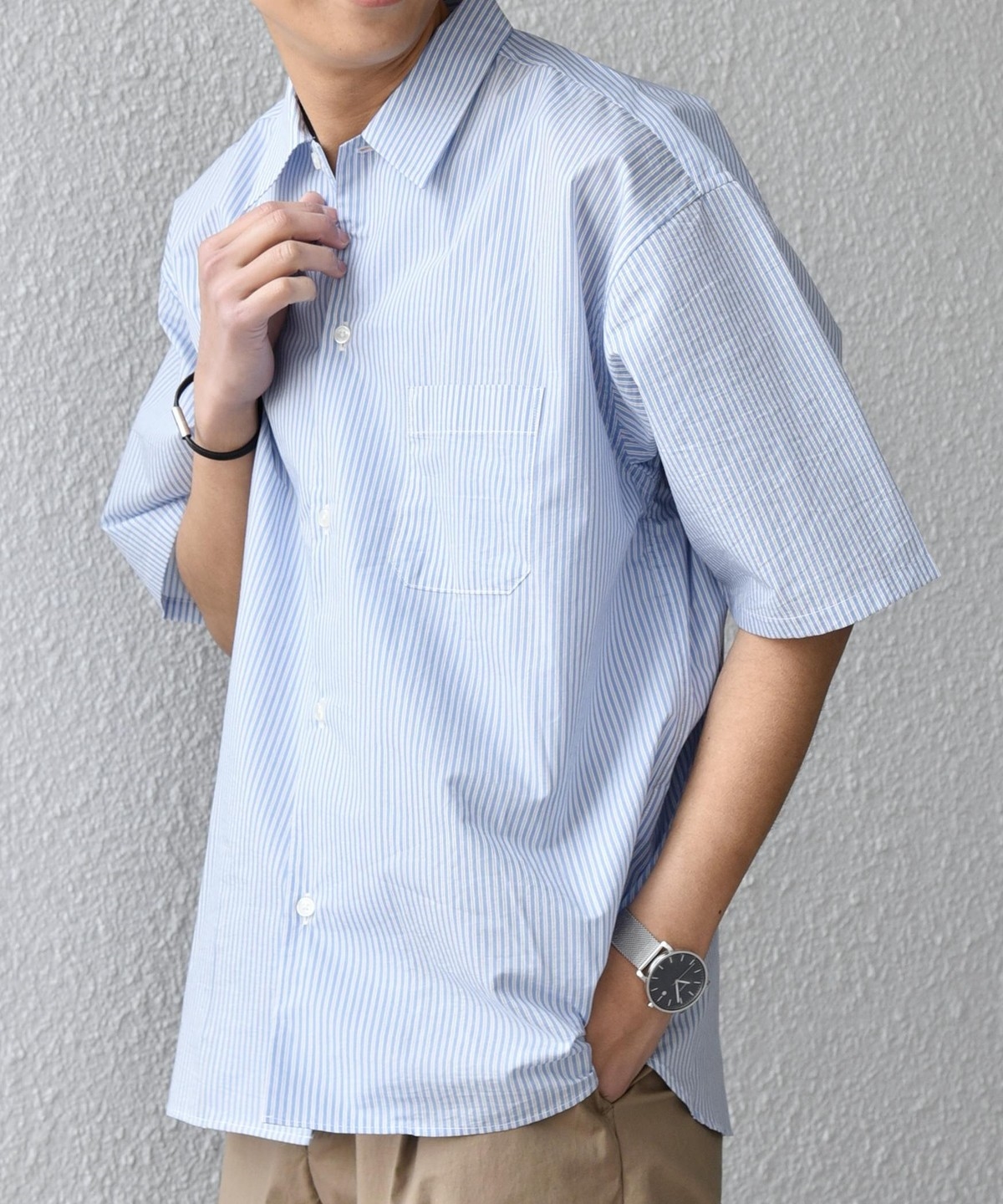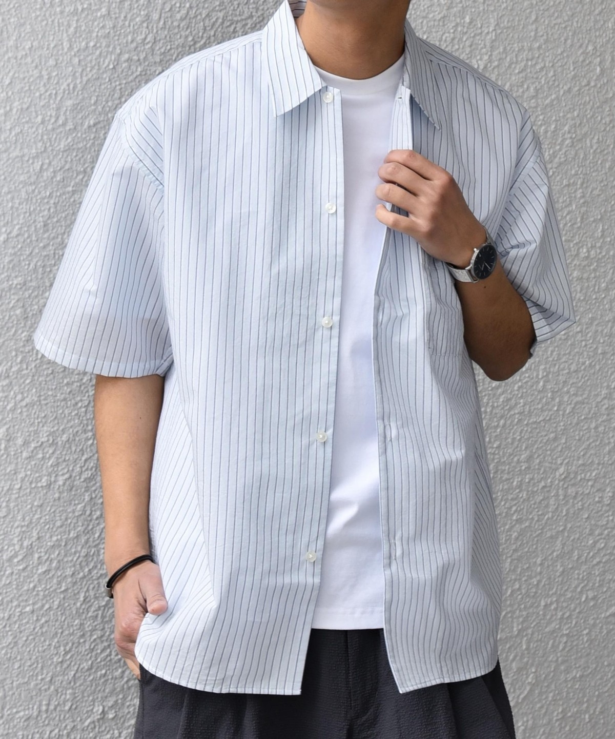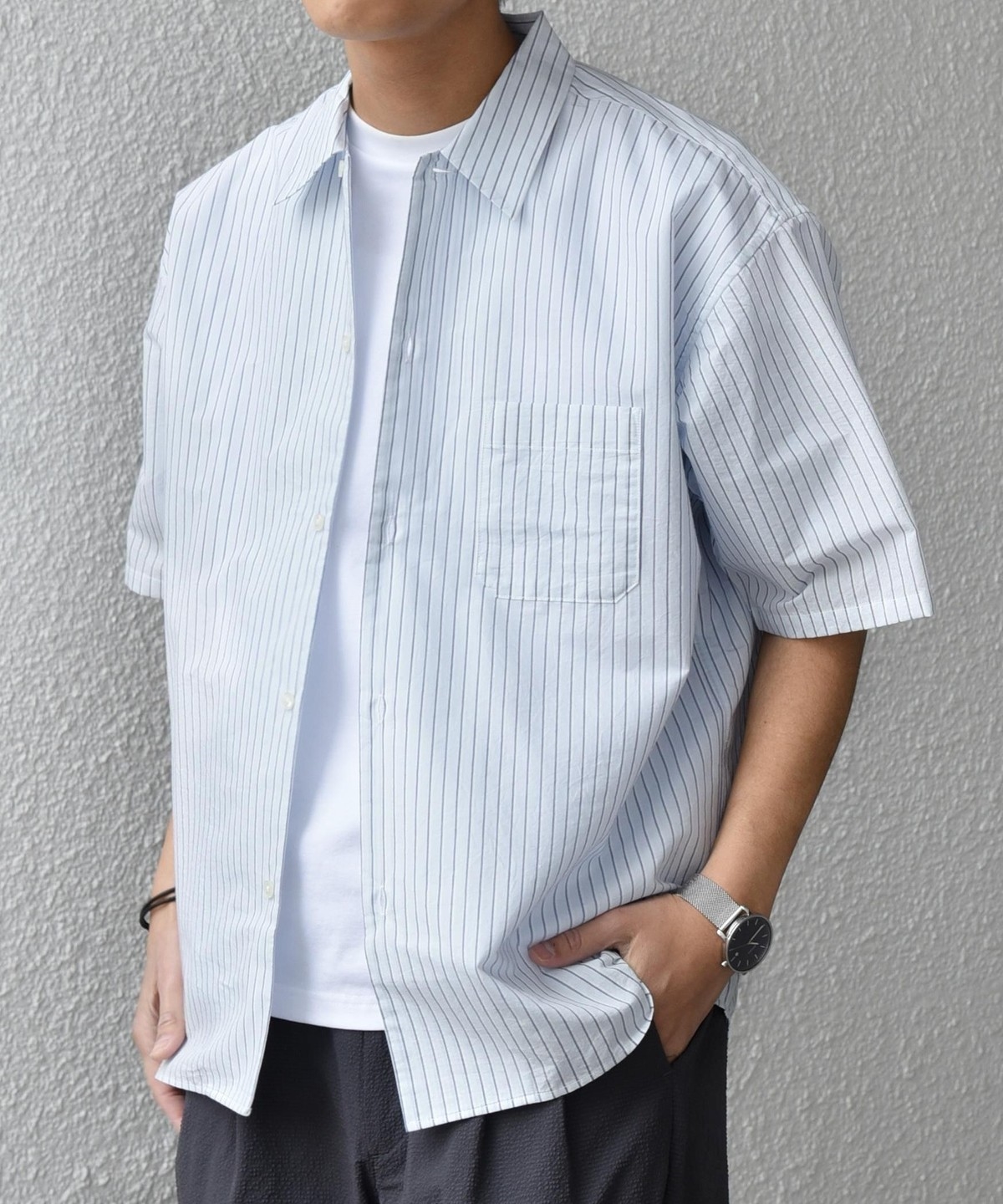 シンプルで汎用性の高い、程よいリラックスフィットの半袖シャツ。
