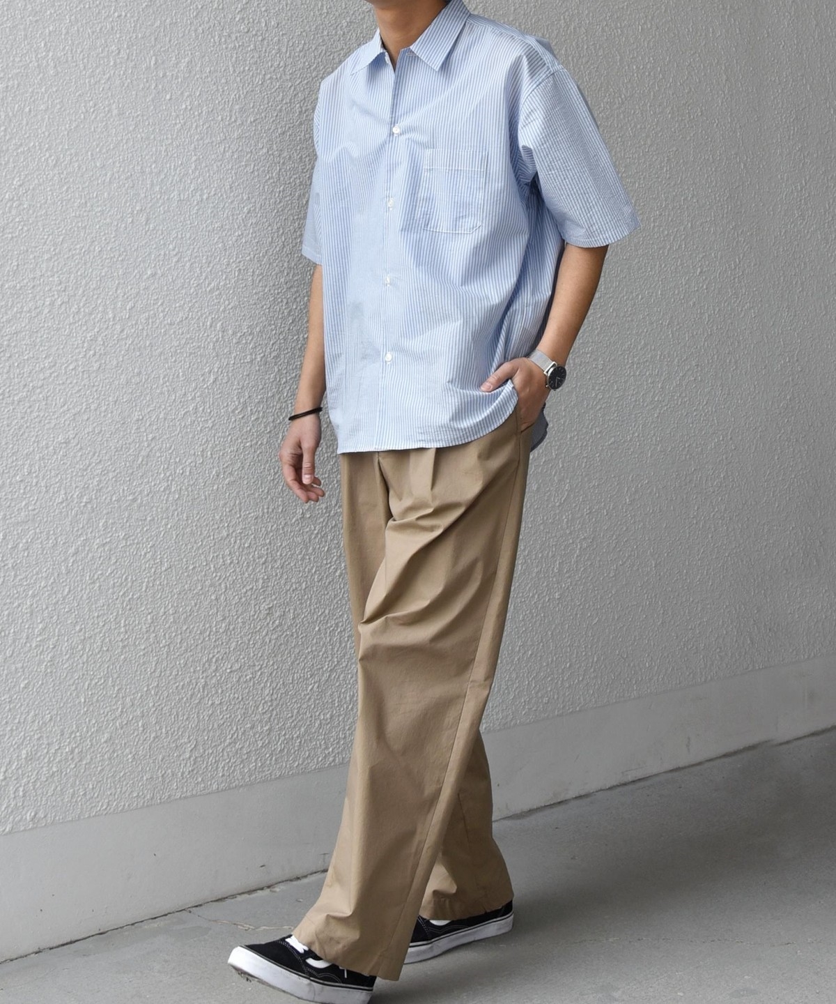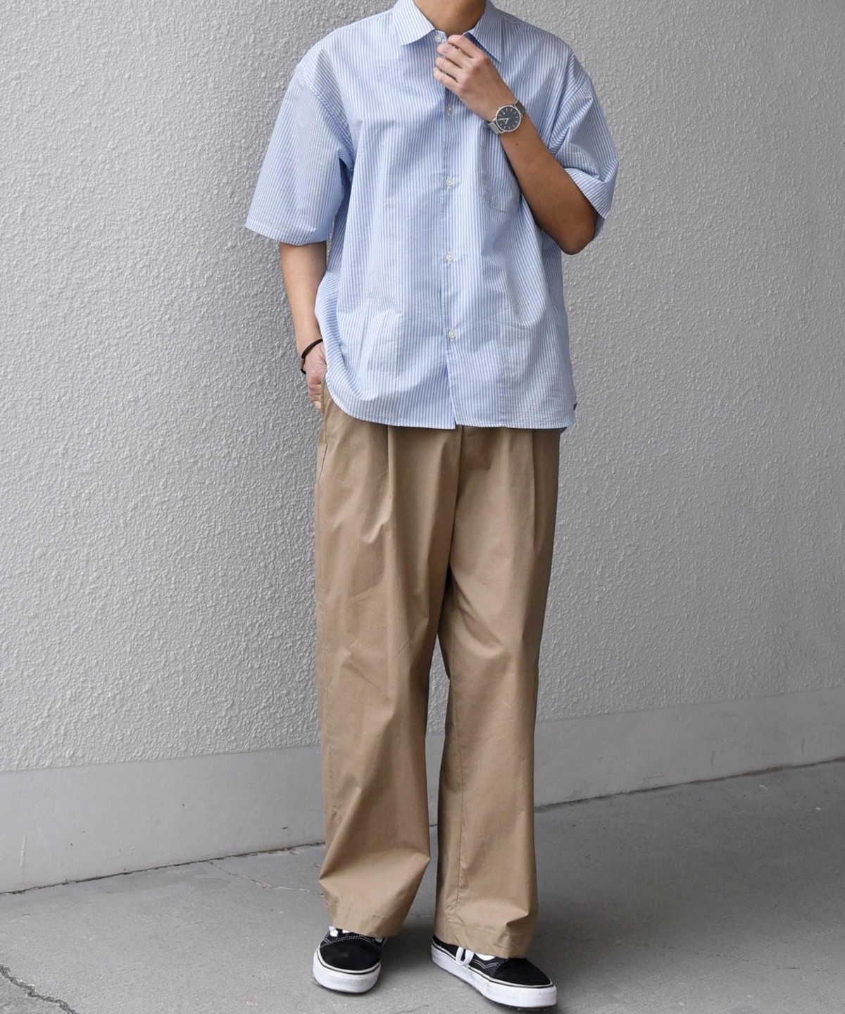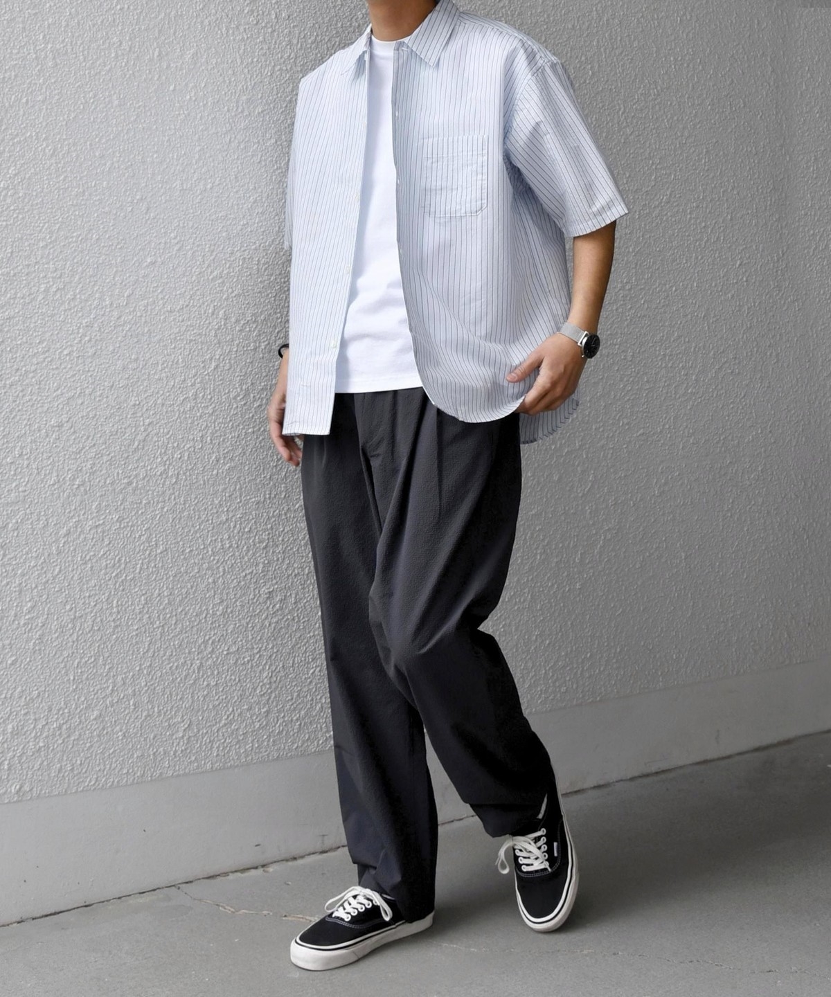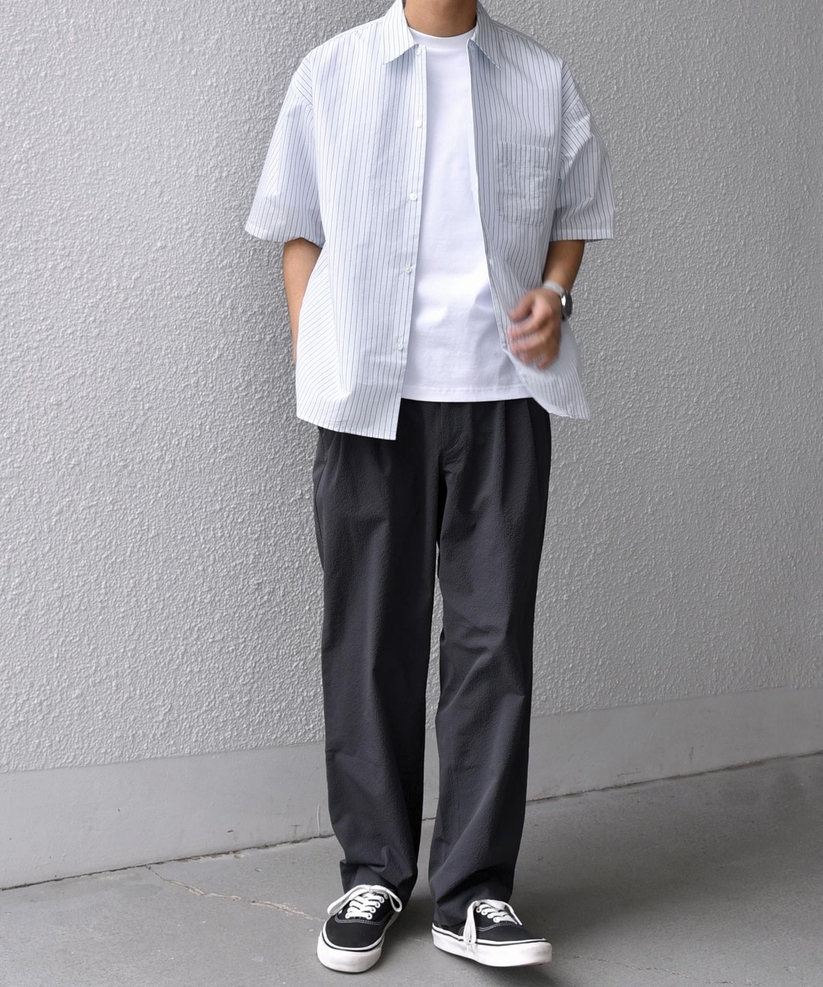 シンプルで汎用性の高い、程よいリラックスフィットの半袖シャツ。