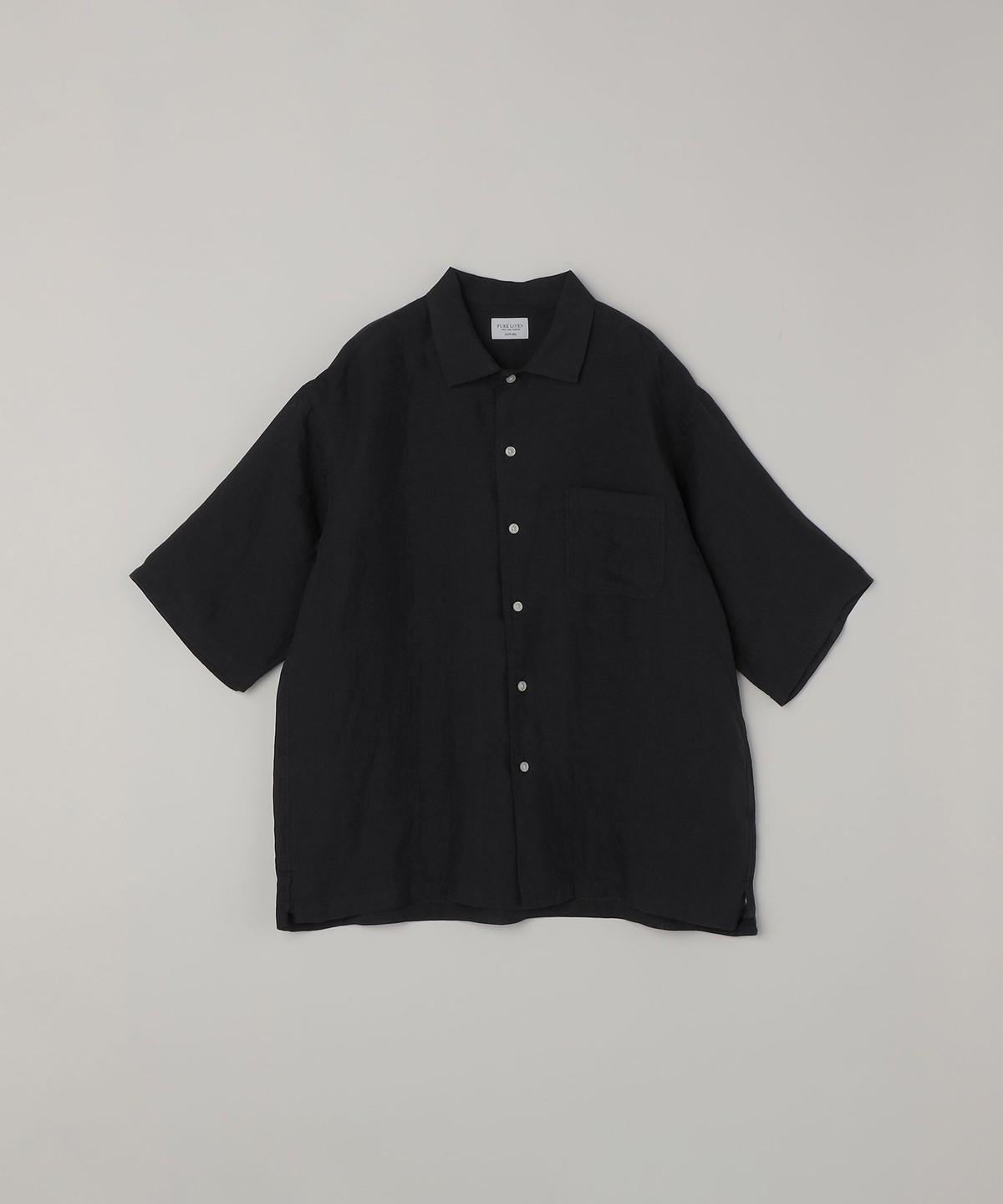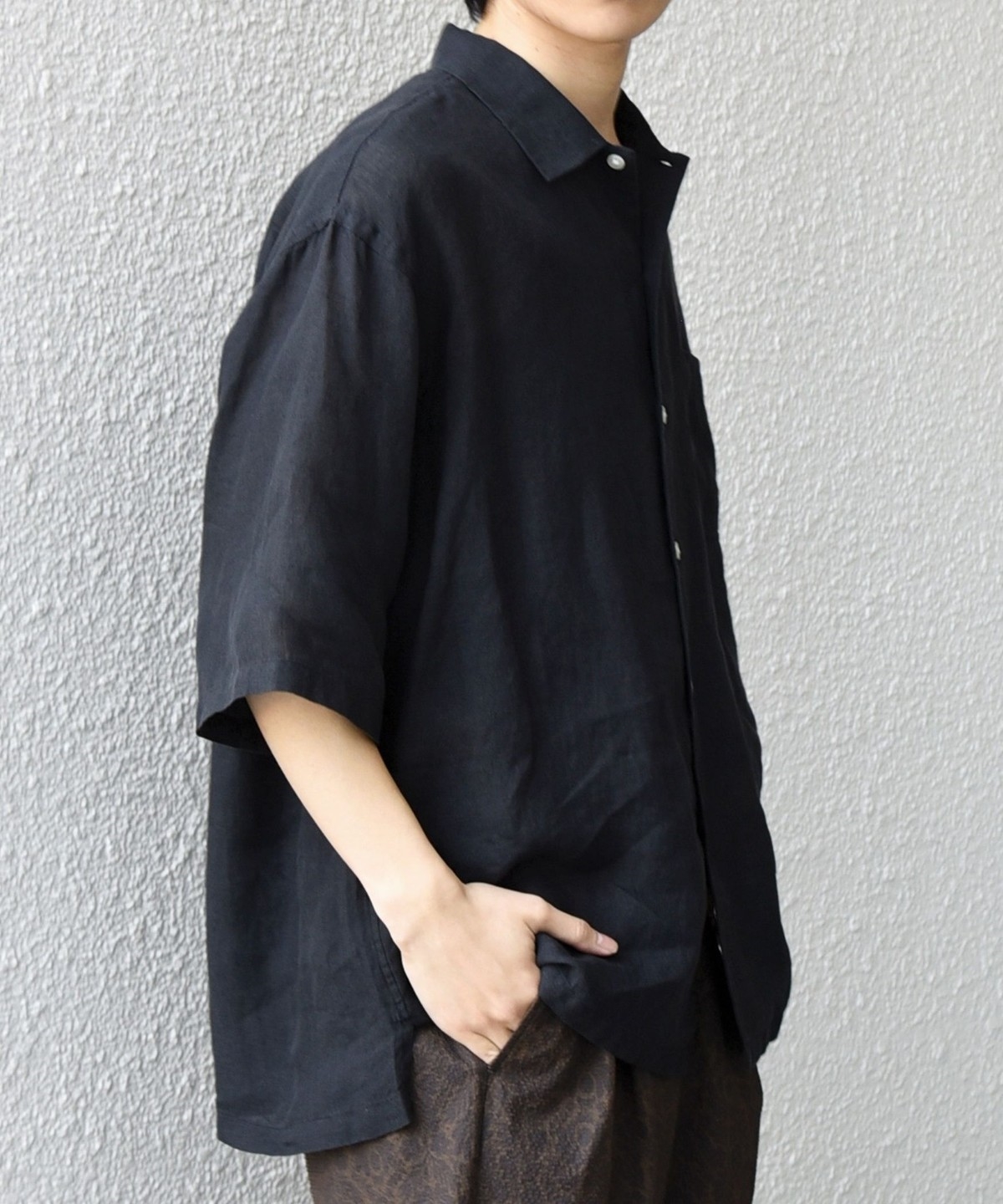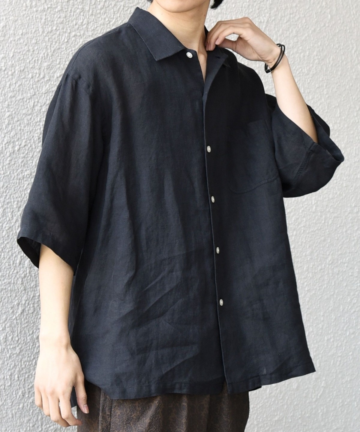 4. SHIPS any:〈洗濯機可能〉ピュアリネン リラックス オープンカラー シャツ◆ ブラック
