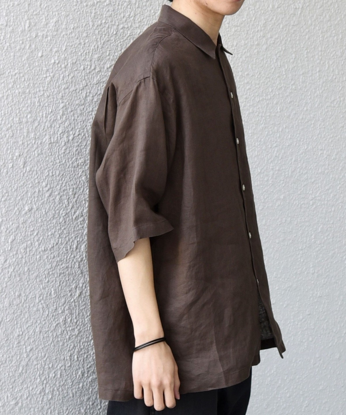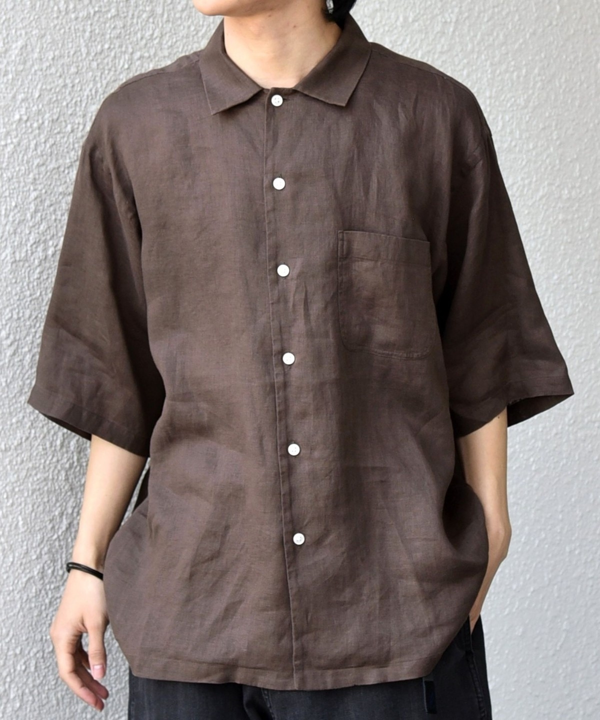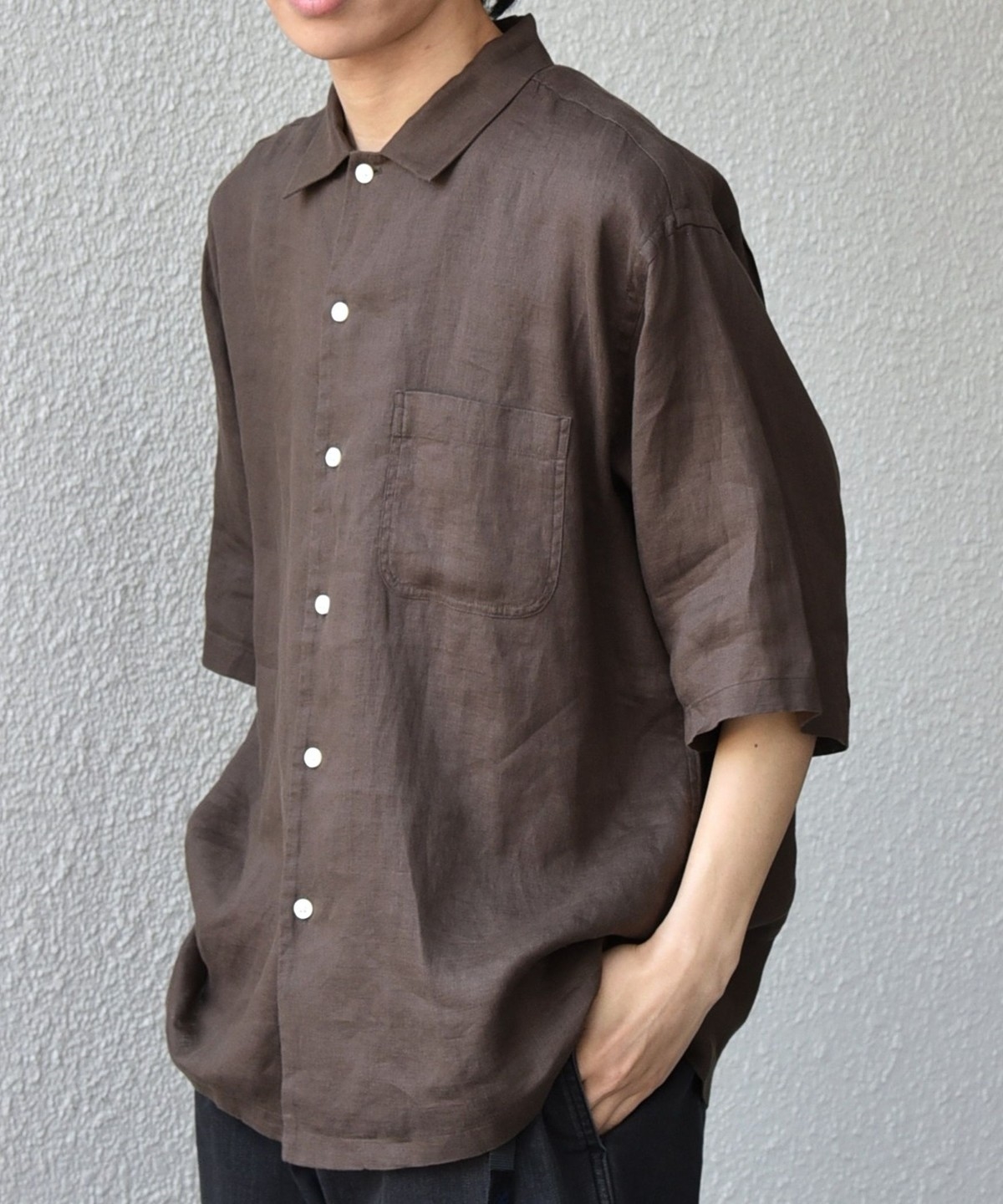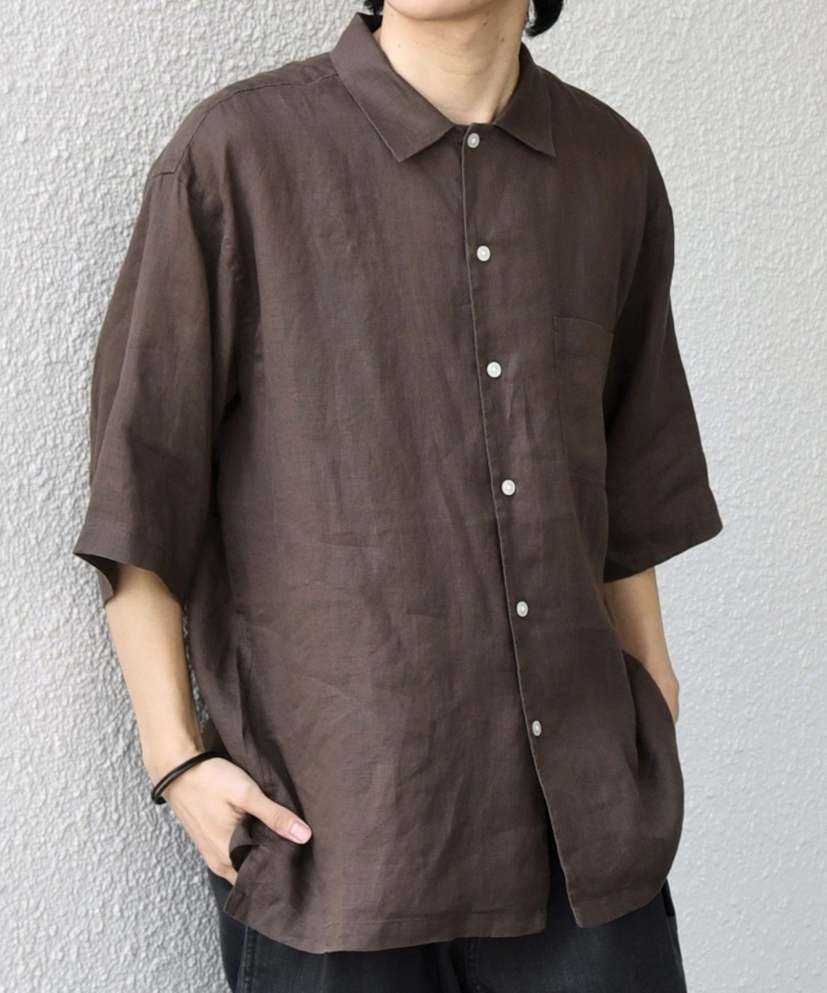 5. SHIPS any:〈洗濯機可能〉ピュアリネン リラックス オープンカラー シャツ◆ ブラウン
