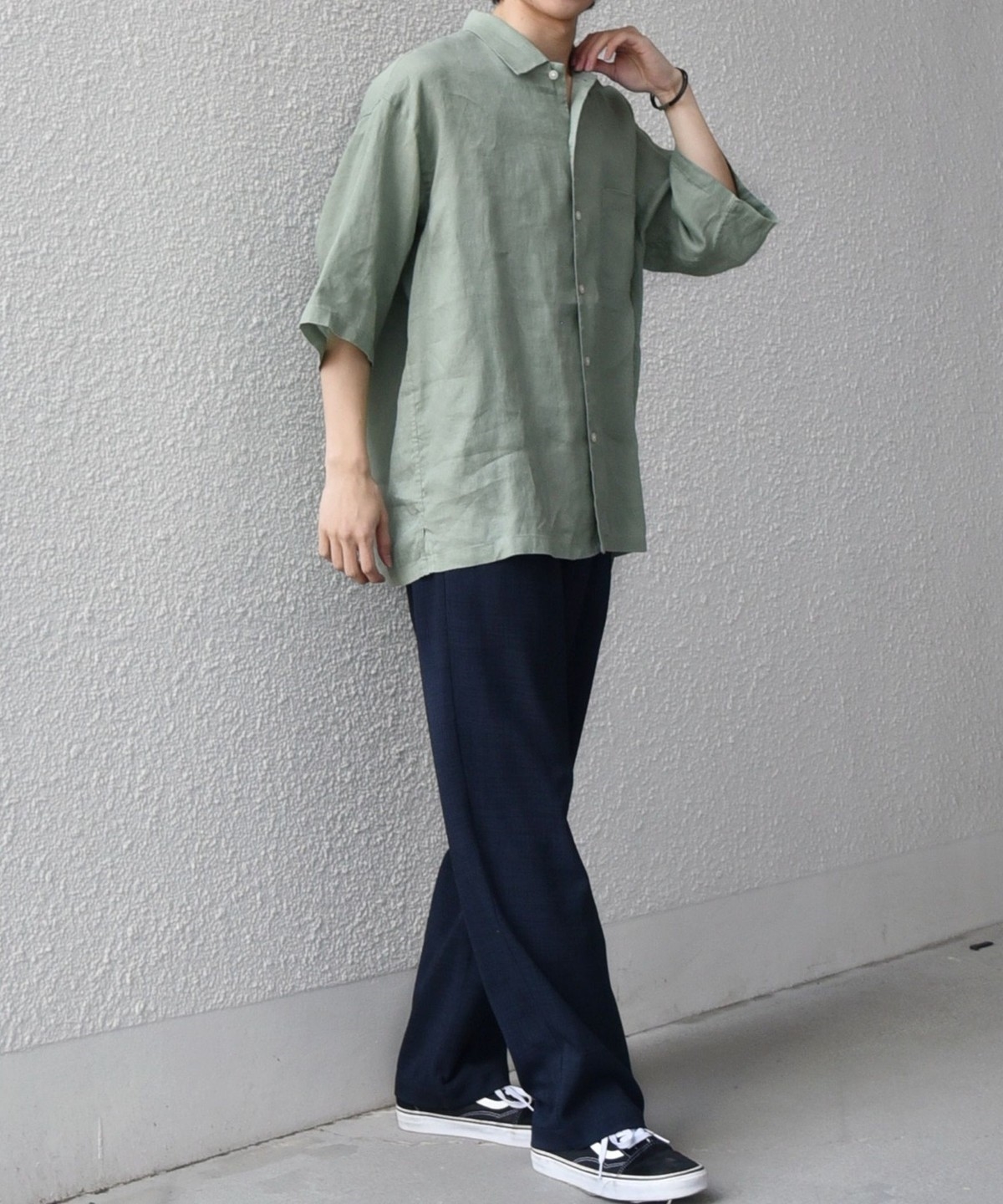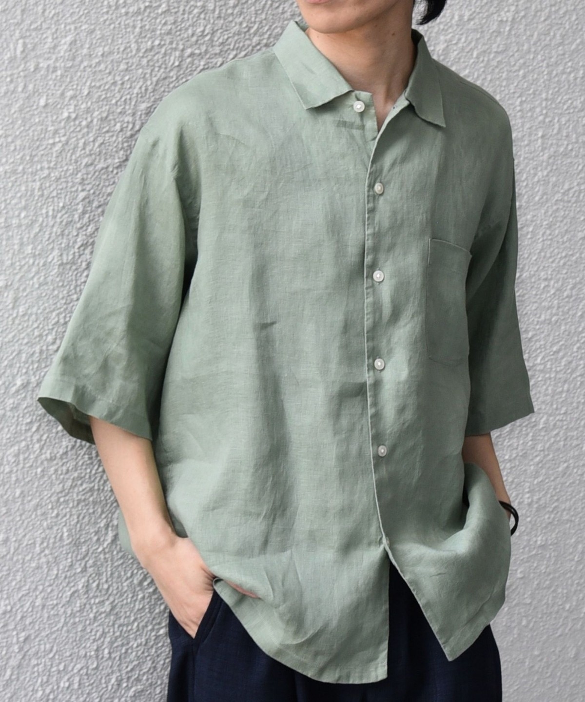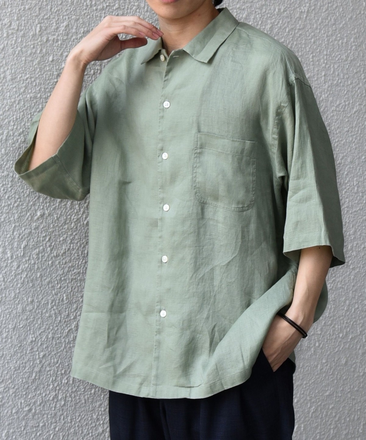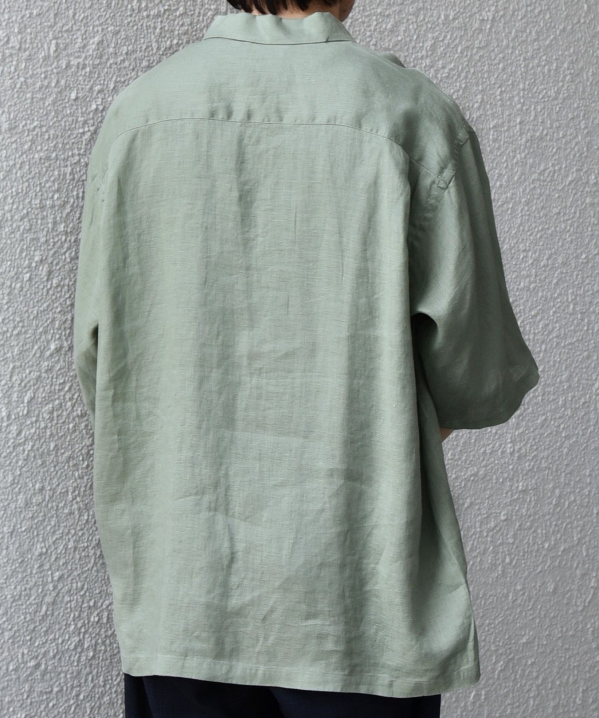 1. SHIPS any:〈洗濯機可能〉ピュアリネン リラックス オープンカラー シャツ◆ ライトグリーン
