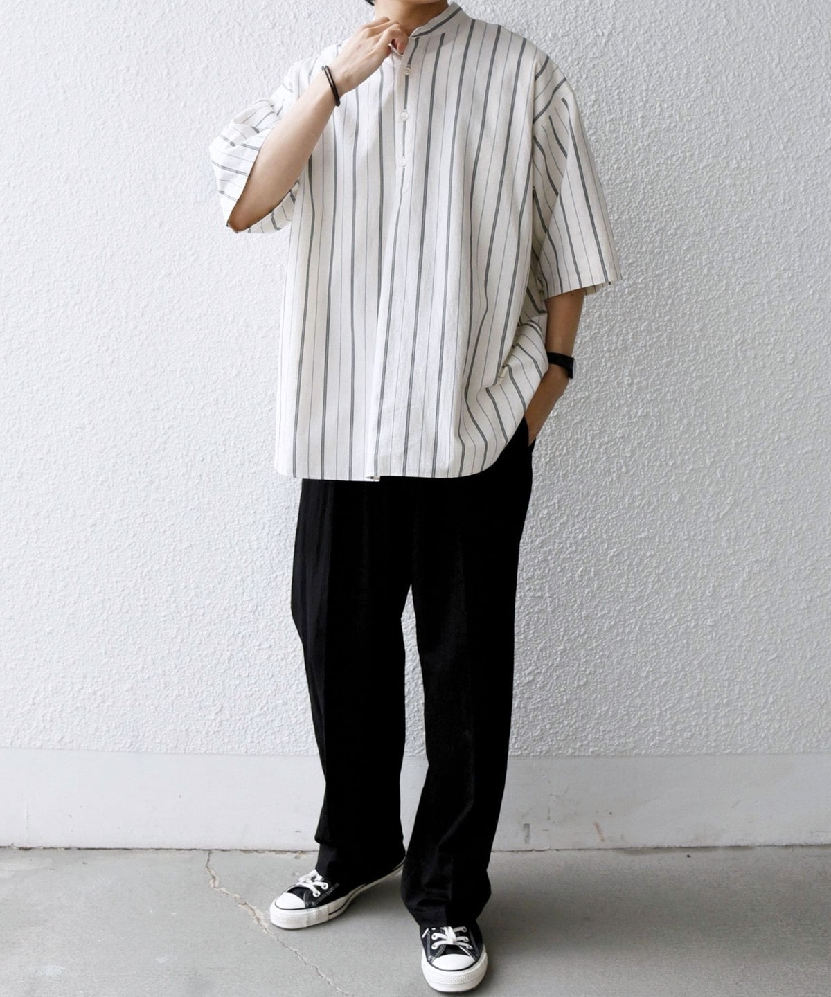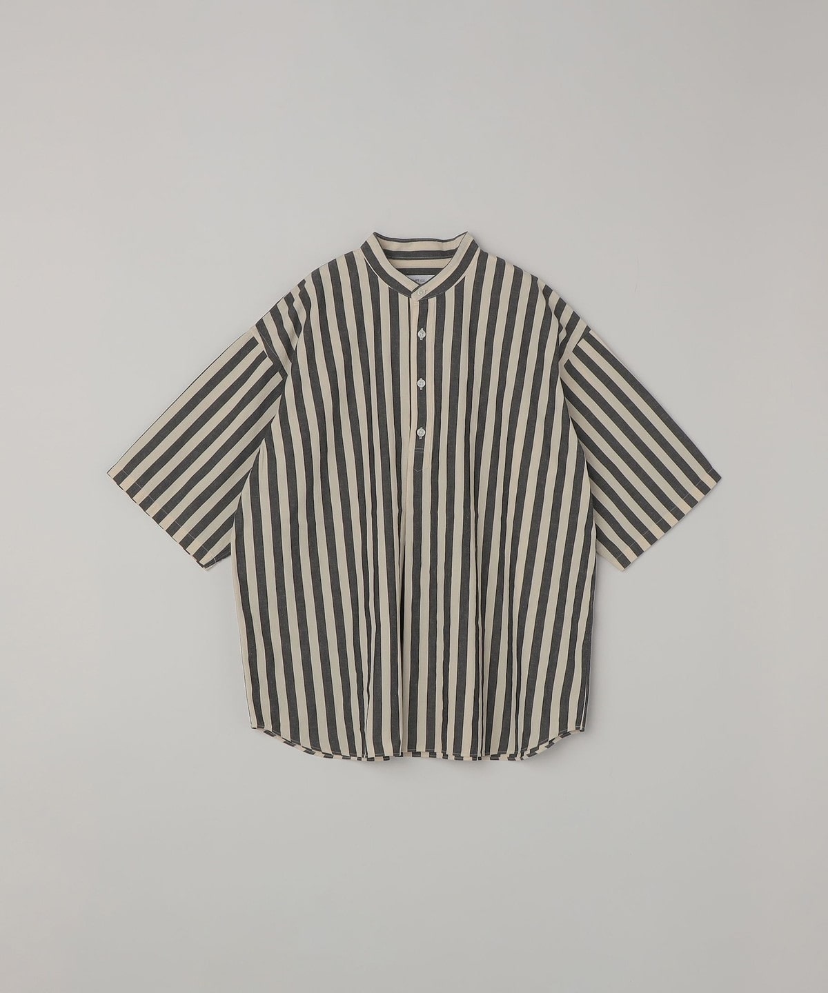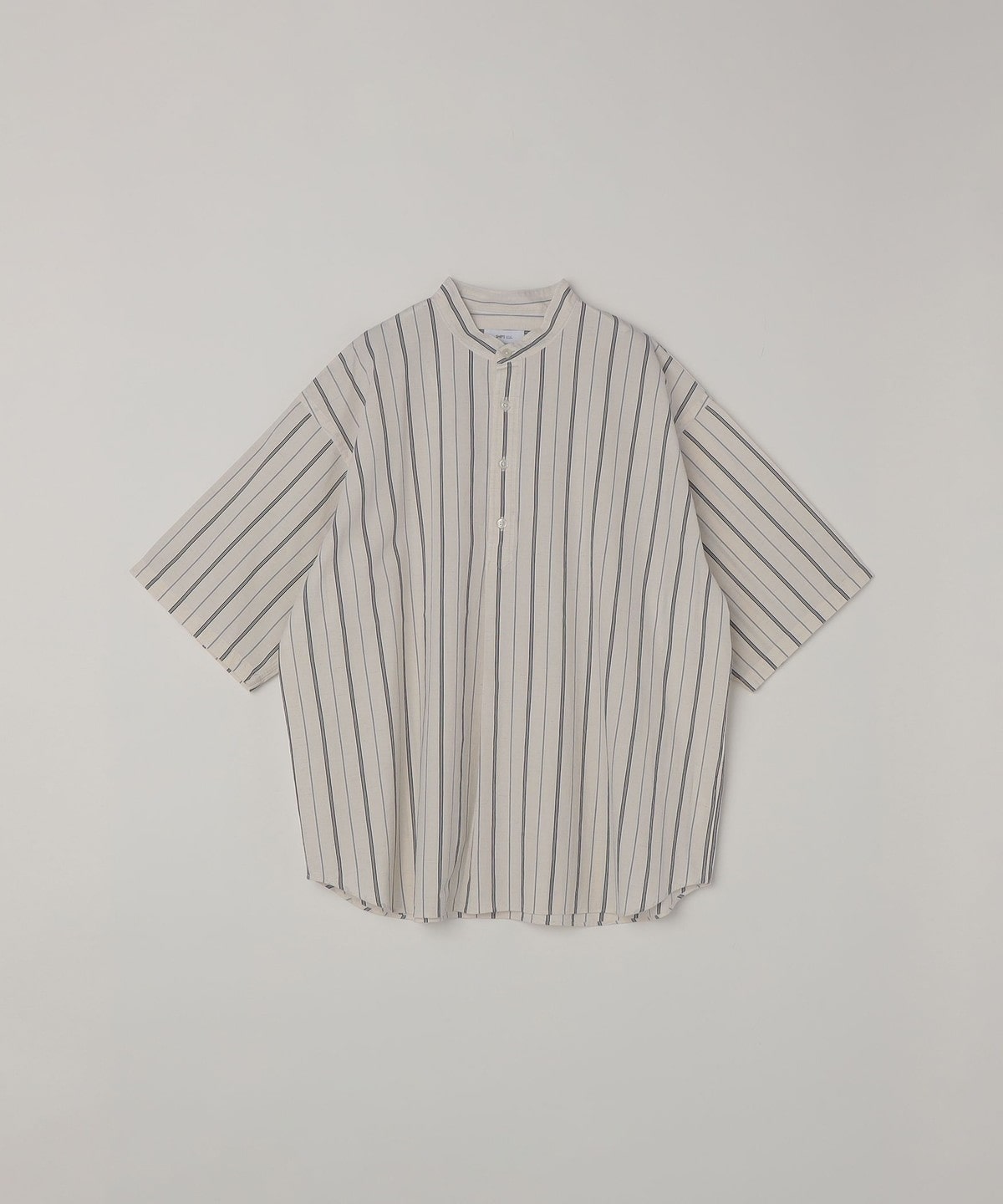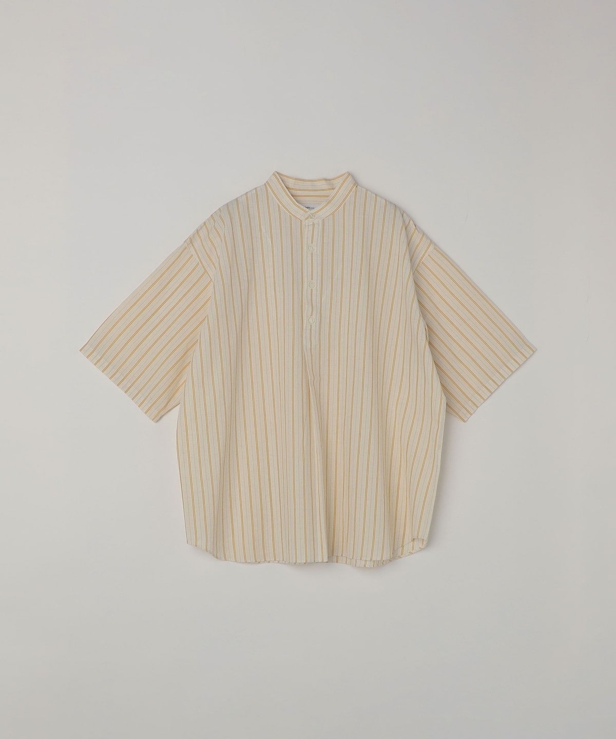 コットン×リネン素材で春夏にピッタリ!カラー毎に異なるストライプ柄を採用したバンドカラーシャツ