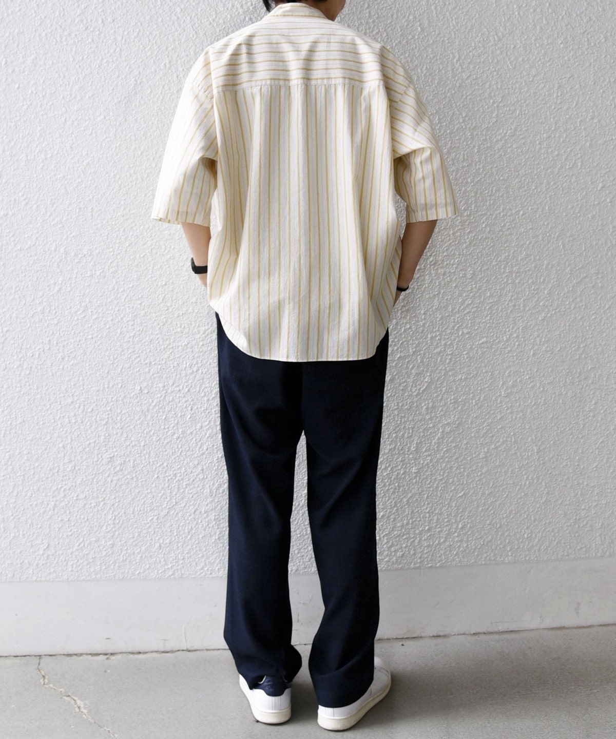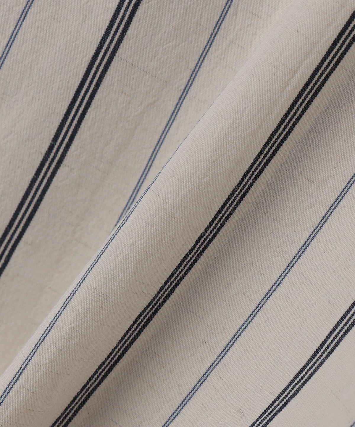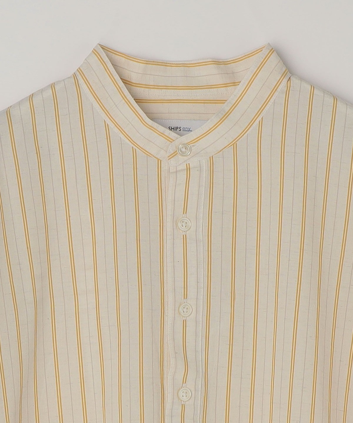 SHIPS any:〈洗濯機可能〉コットン/リネン ストライプ バンド スキッパー ハーフスリーブ シャツ 26SS◆