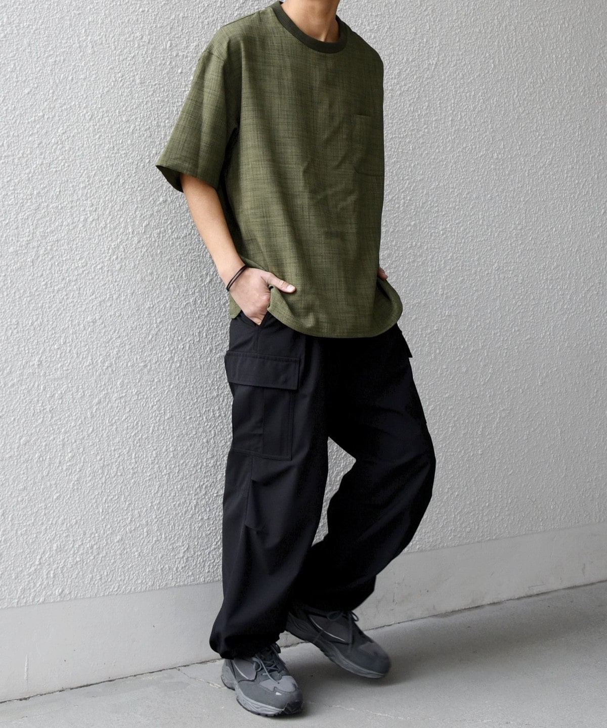 糸ムラや表面感、テクスチャー感のある素材は、スタイリングに取り入れやすい一枚。