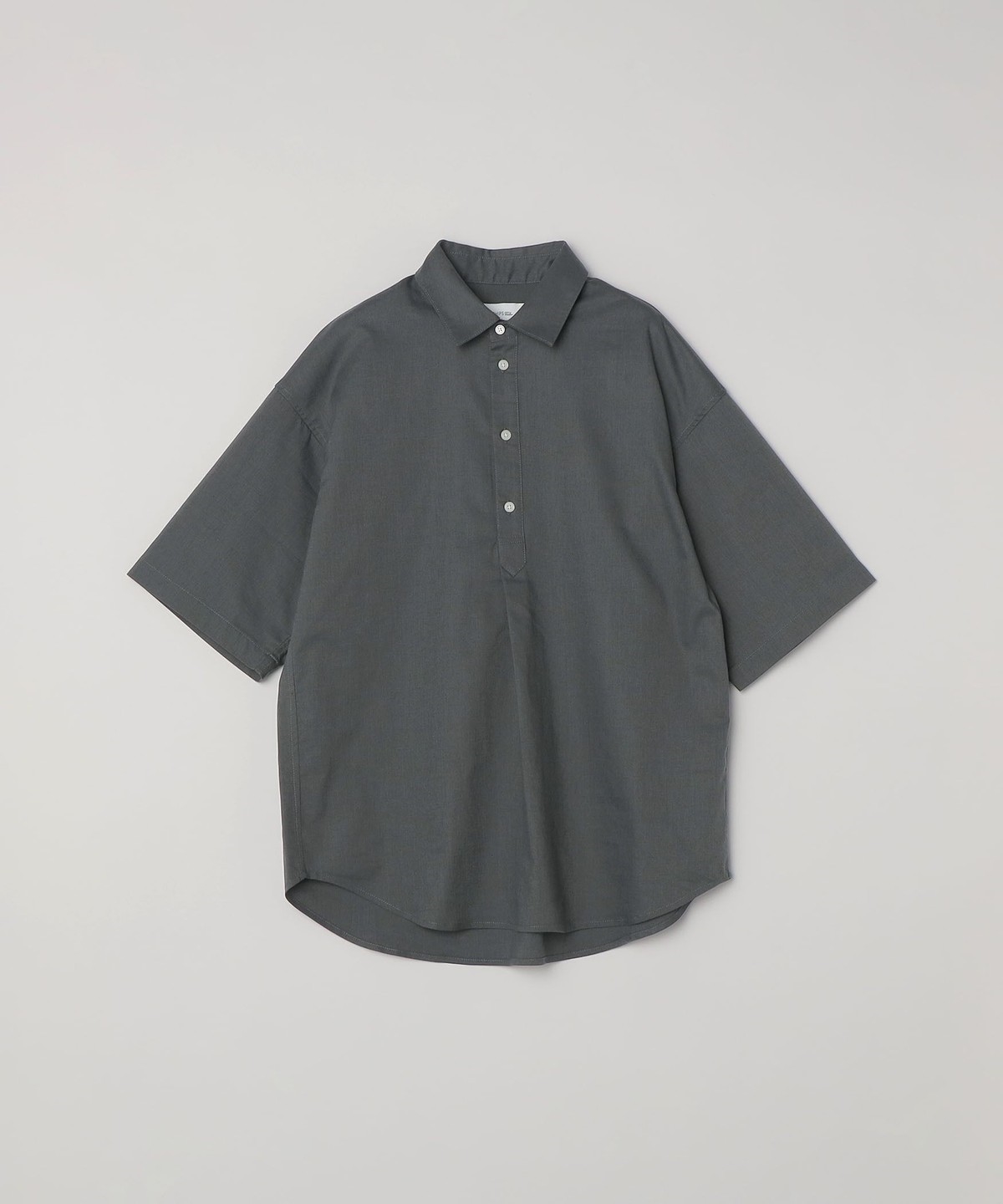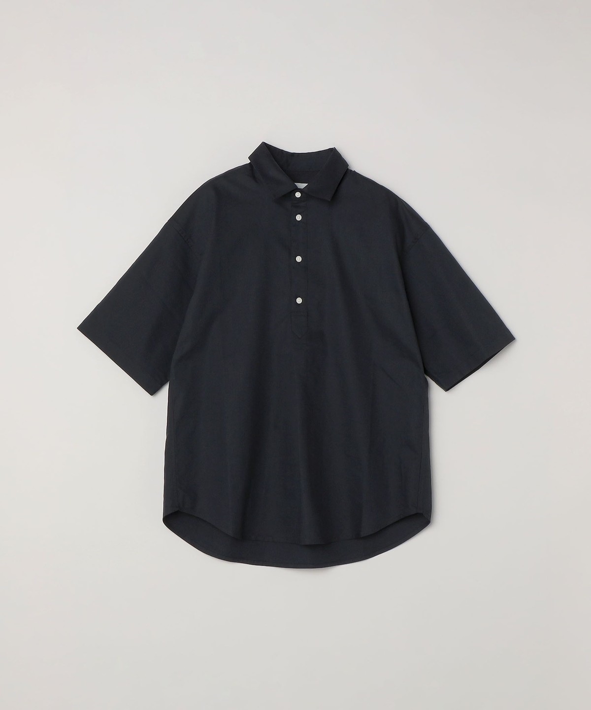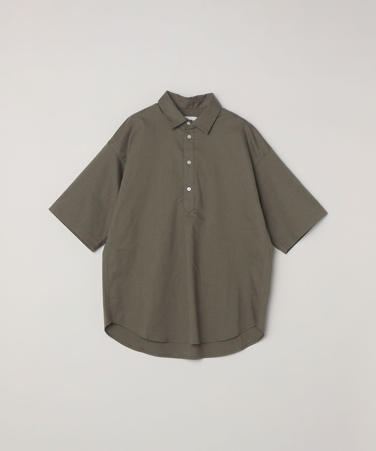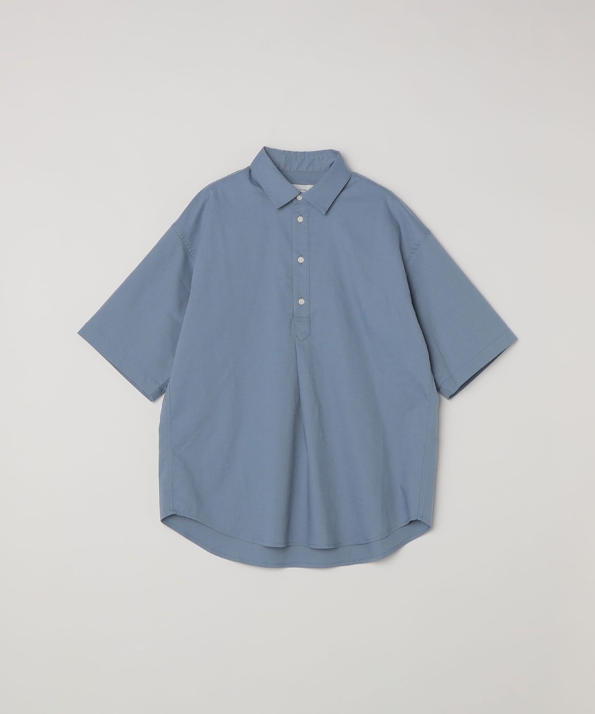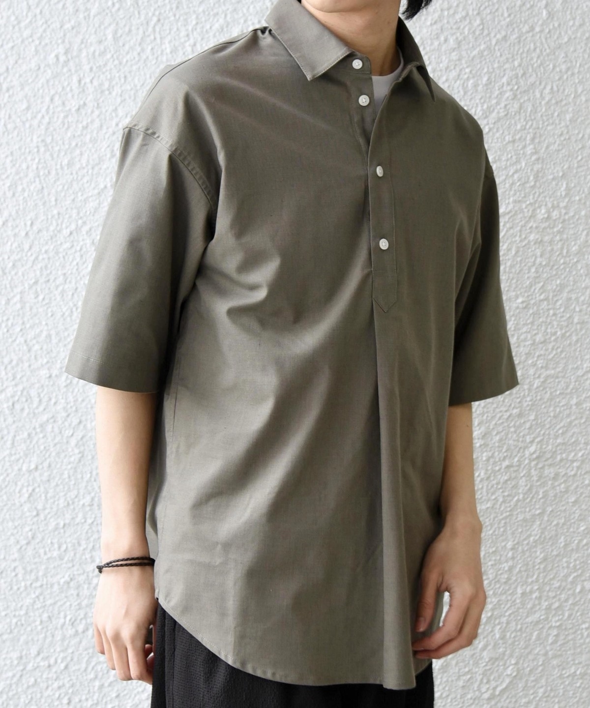 リラックス感のあるレギュラーカラーデザインで、フロントにワンタックアクセントを入れたプルオーバー型の半袖シャツ。