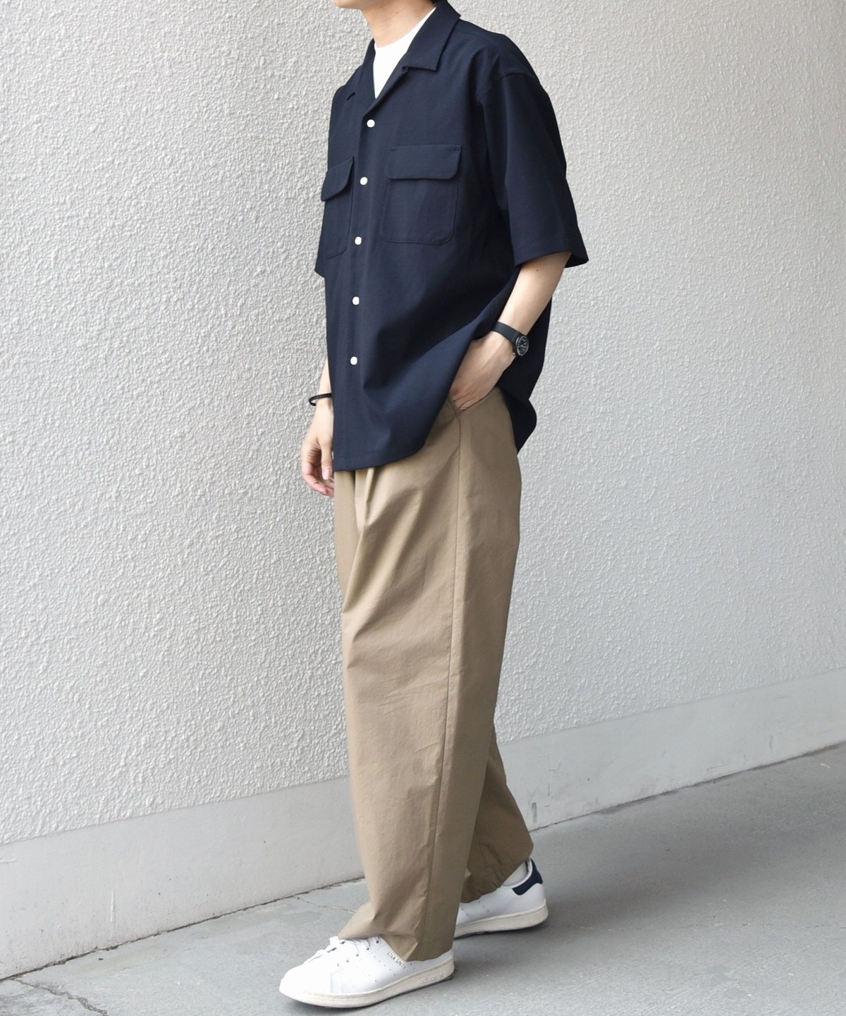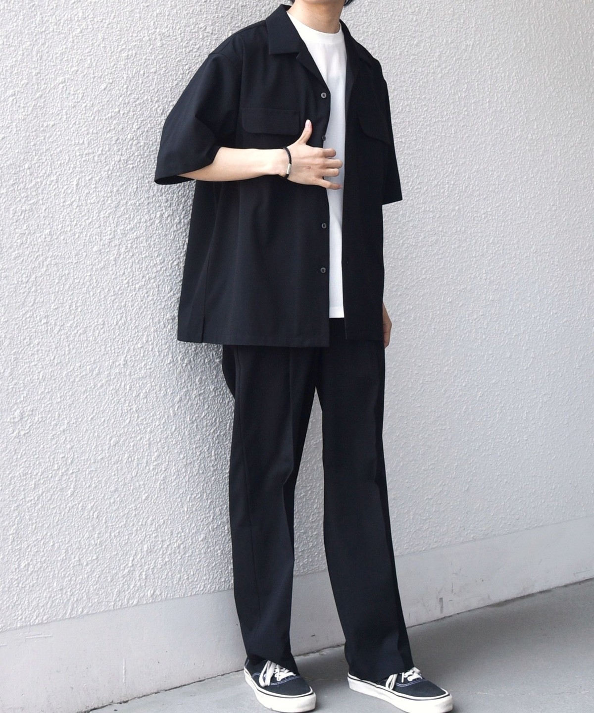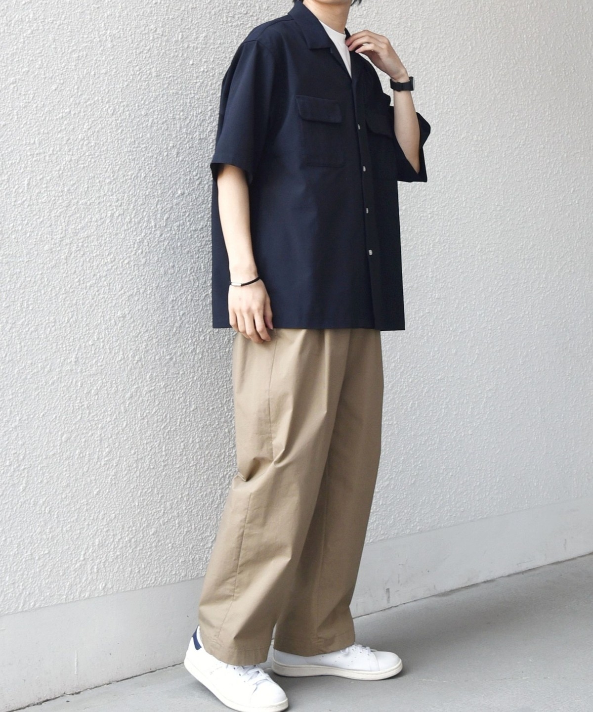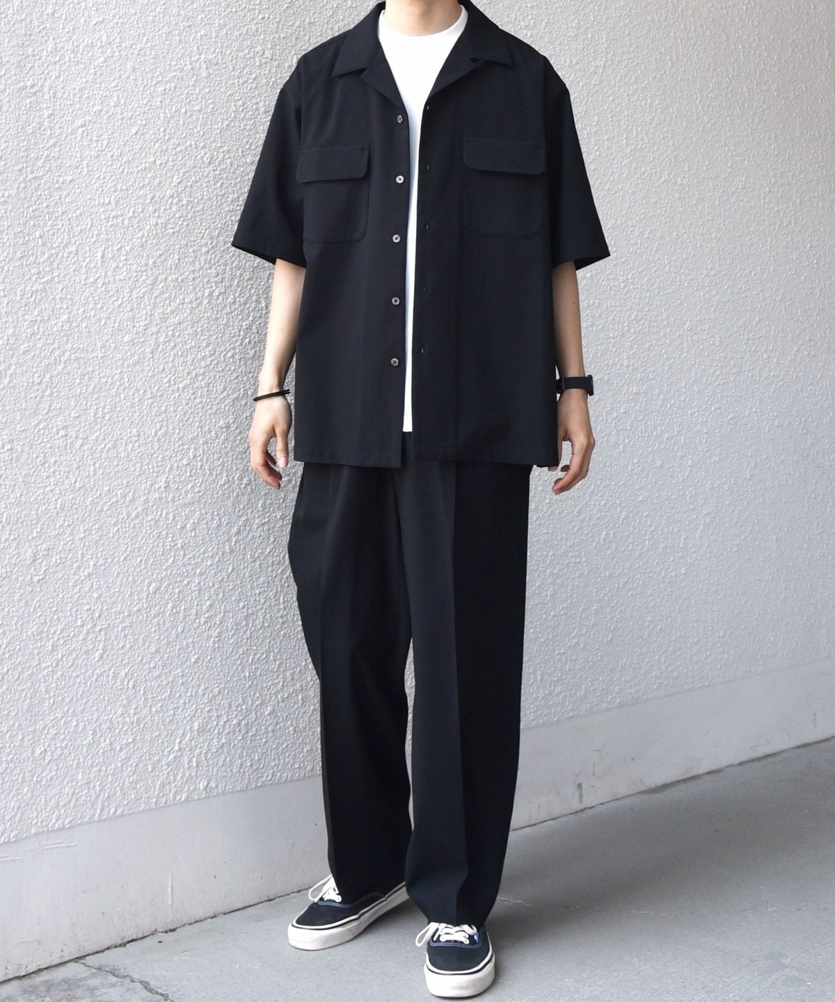 同素材のTシャツやボトムスの展開もございますので、セットアップとしても着こなしもすすめ。
