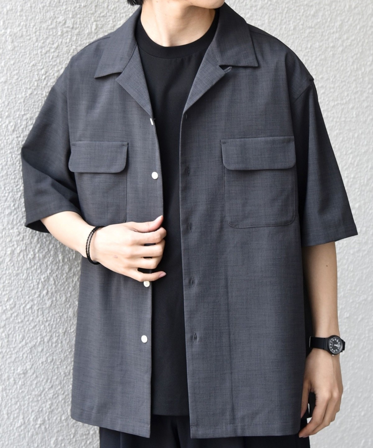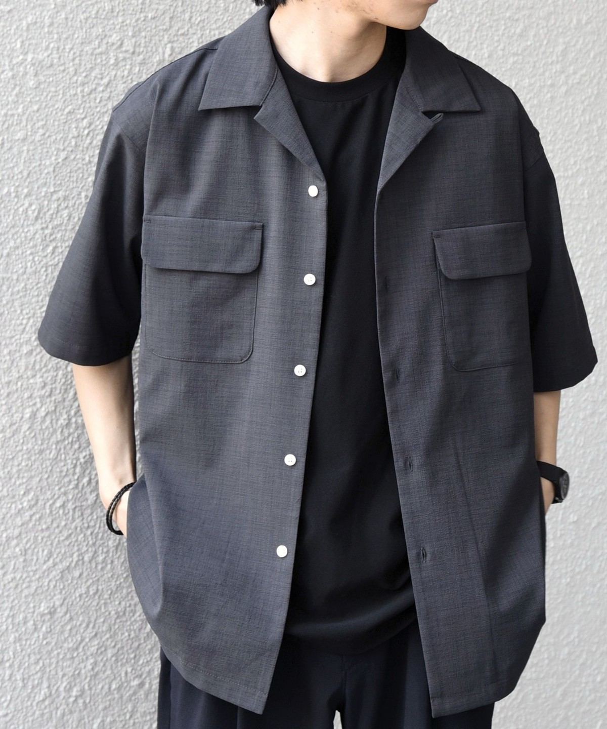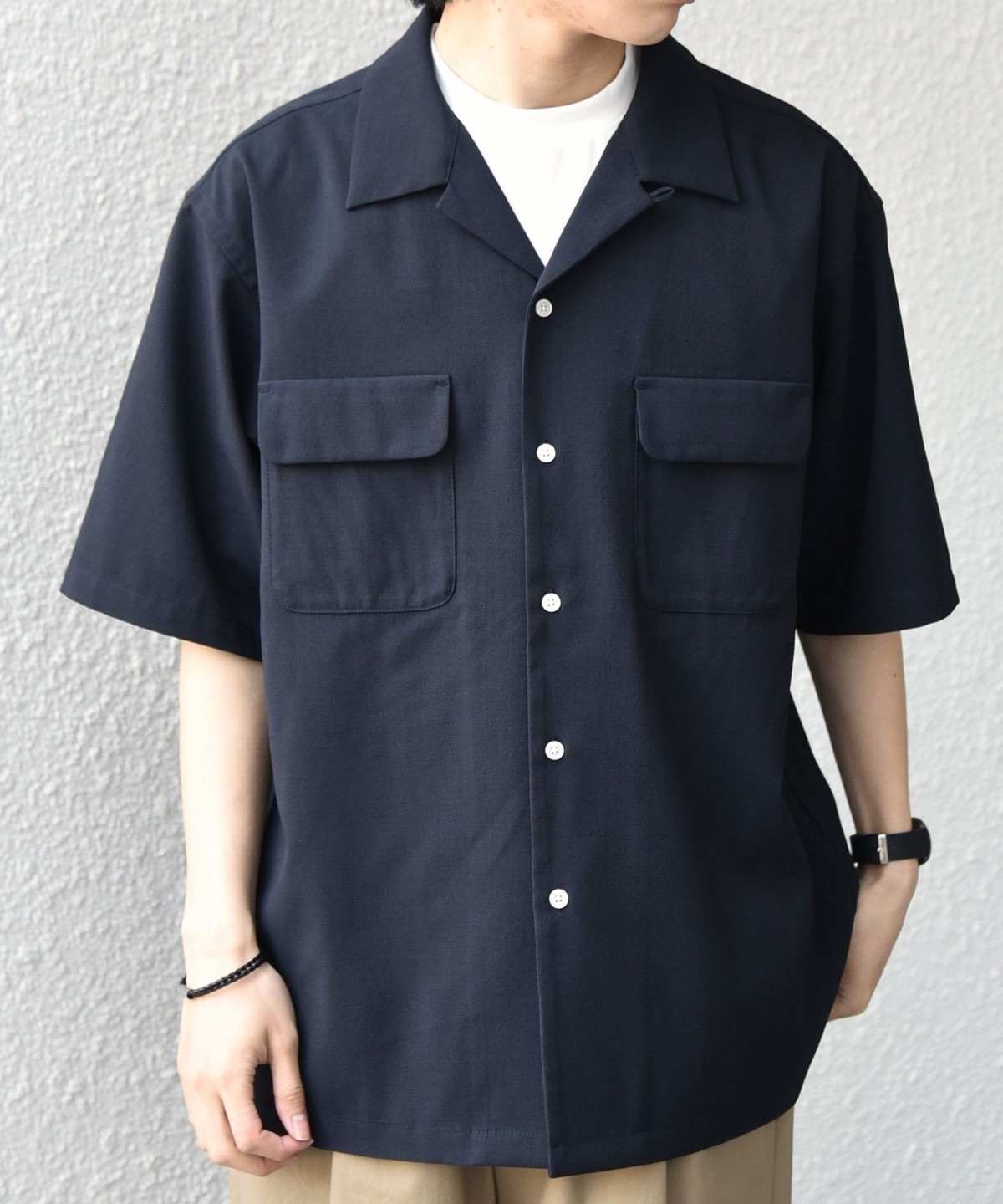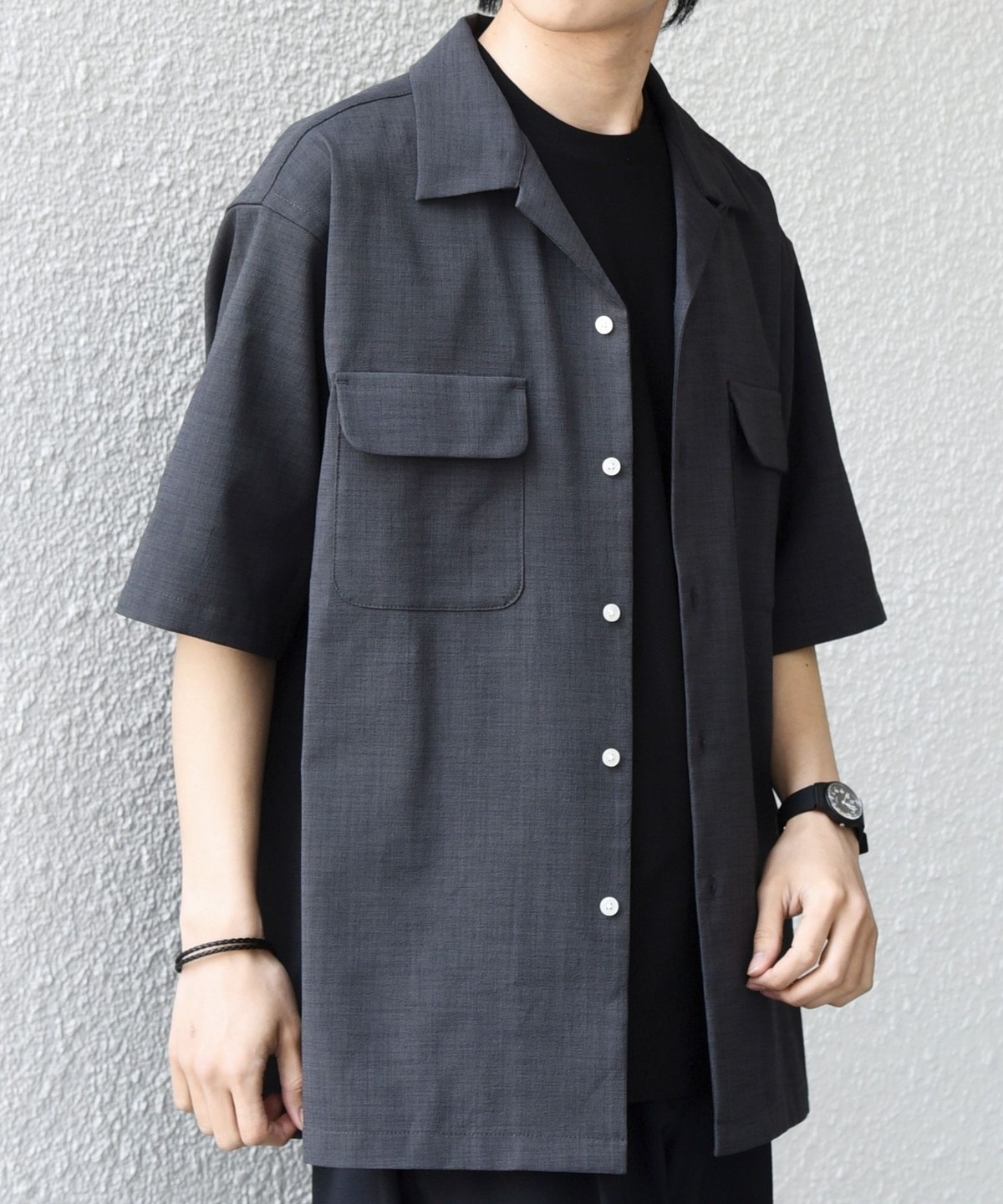 開襟シャツのように一枚での着用はもちろん、羽織りとしても活躍します。