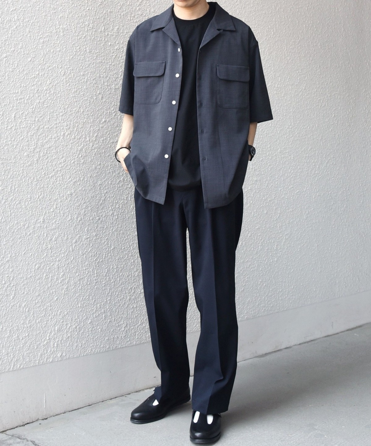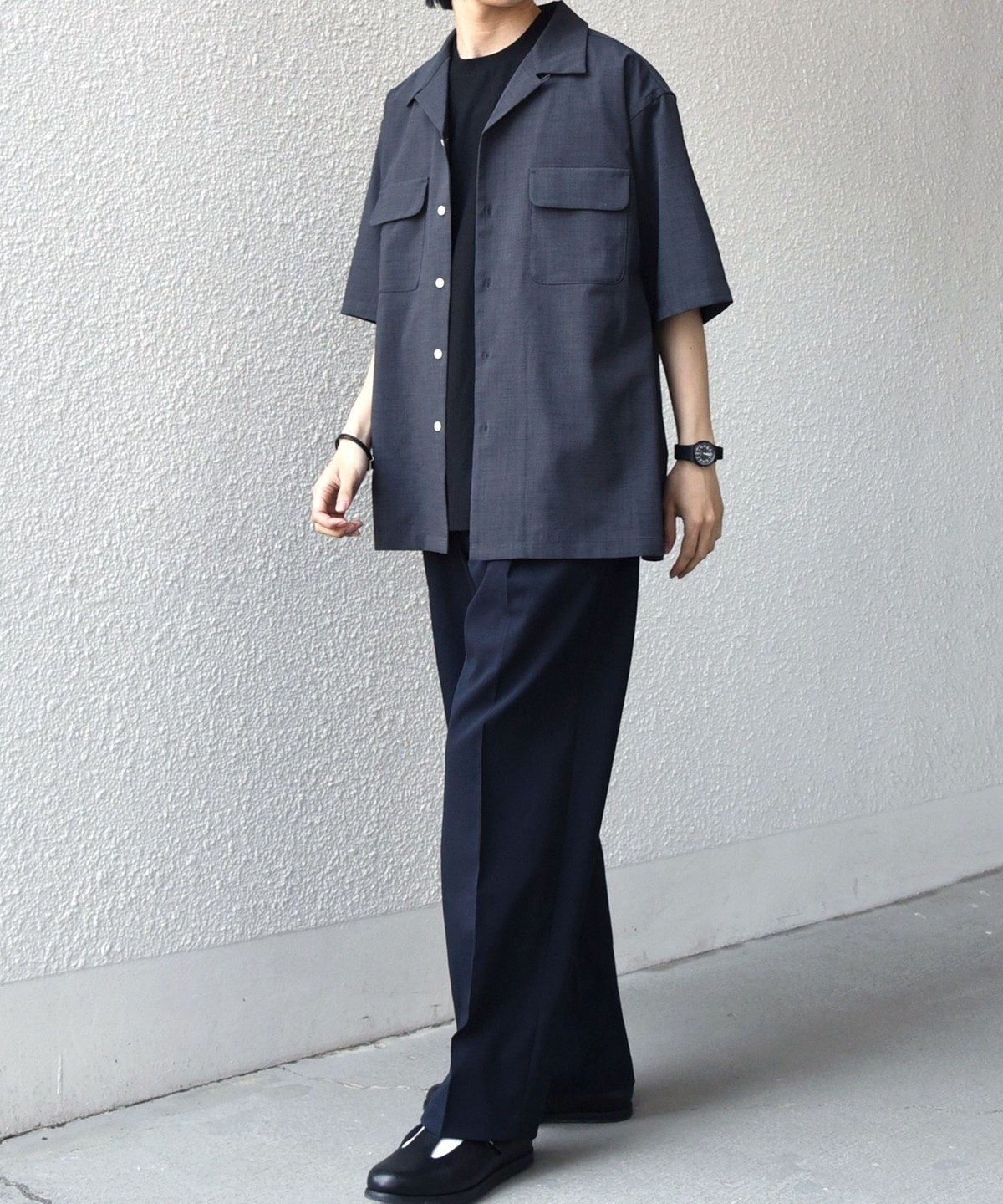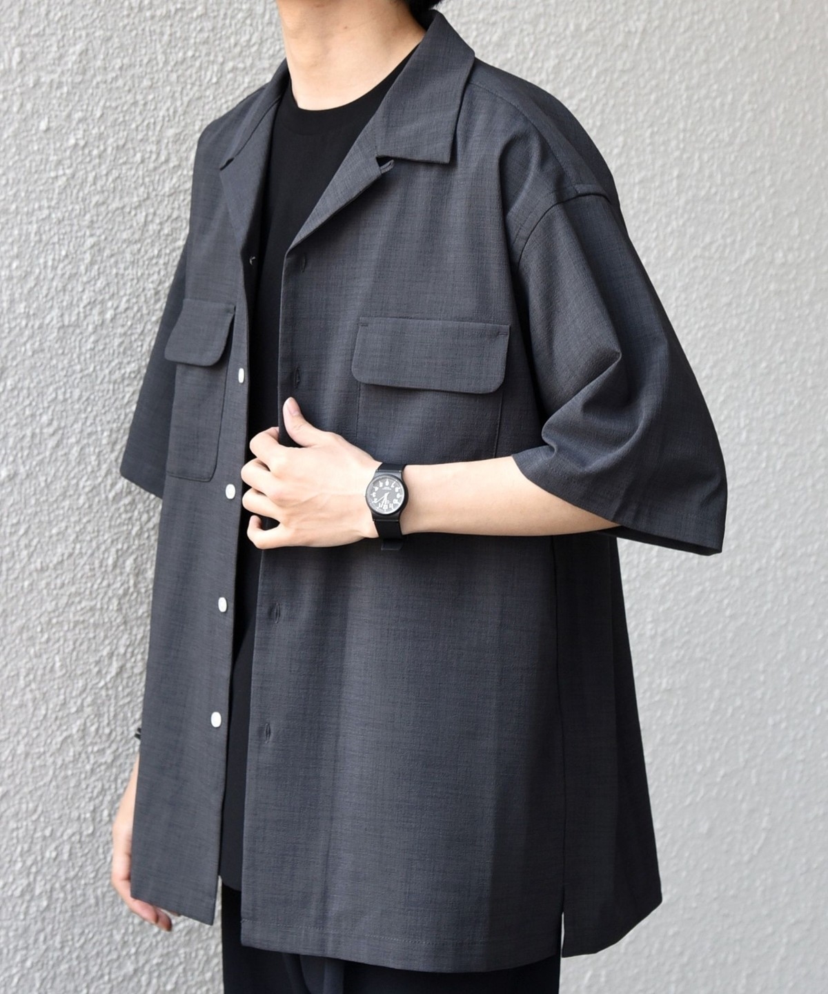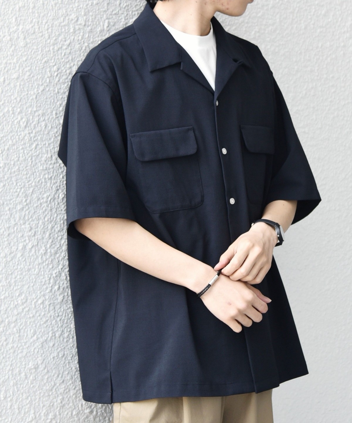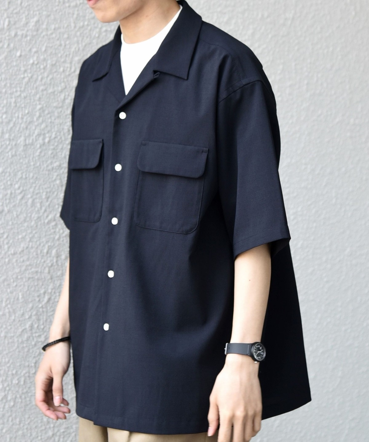 開襟シャツのように一枚での着用はもちろん、羽織りとしても活躍します。