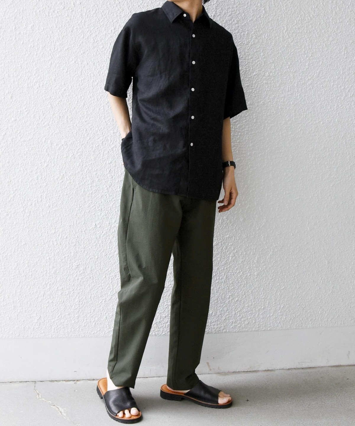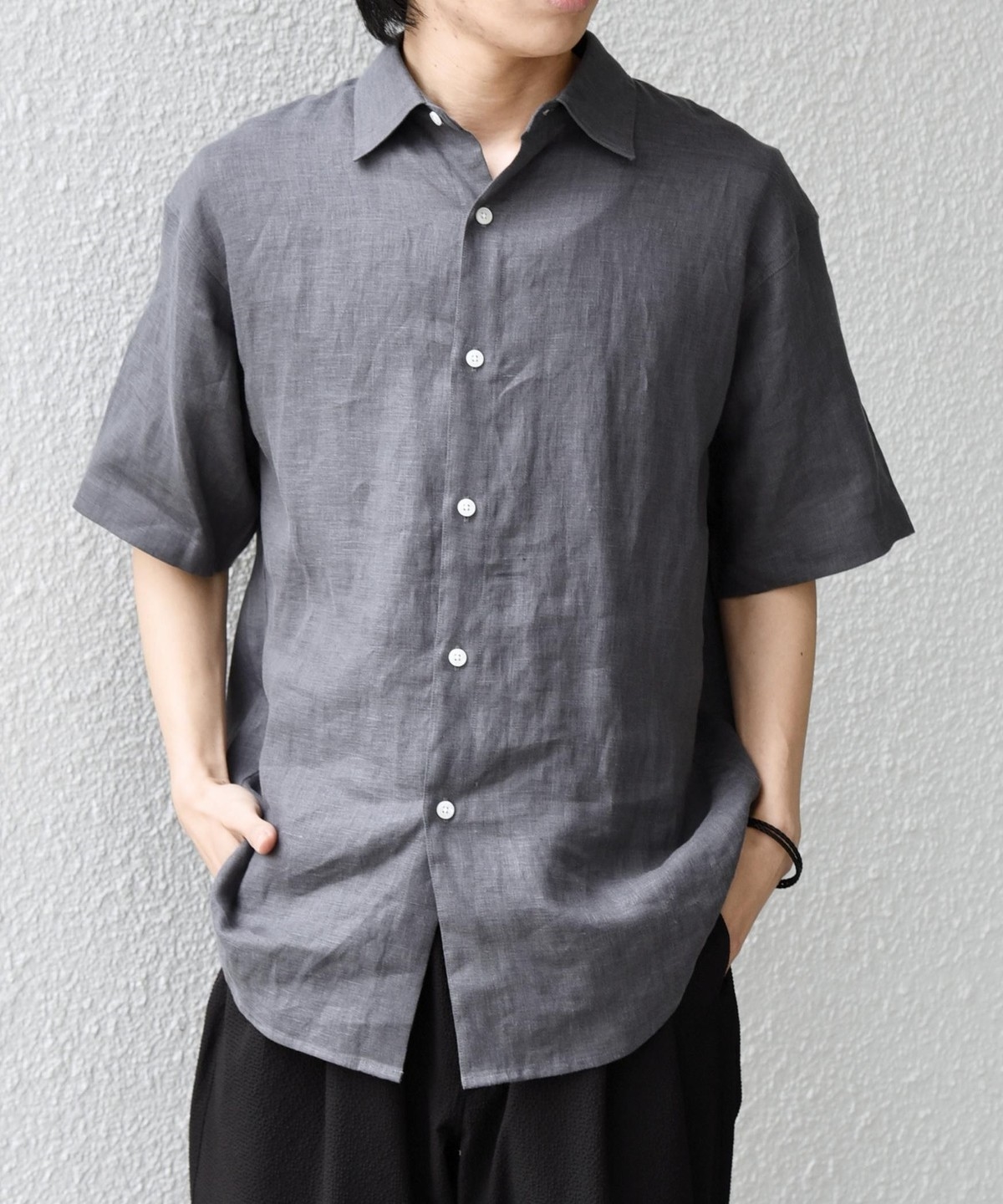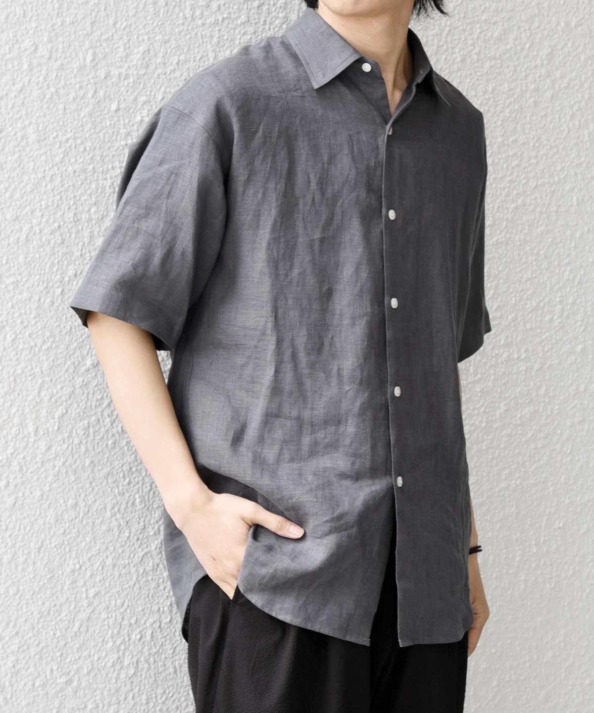リネンらしいドライな質感はありながら、肌触りもソフトで快適な着心地の素材となっております。