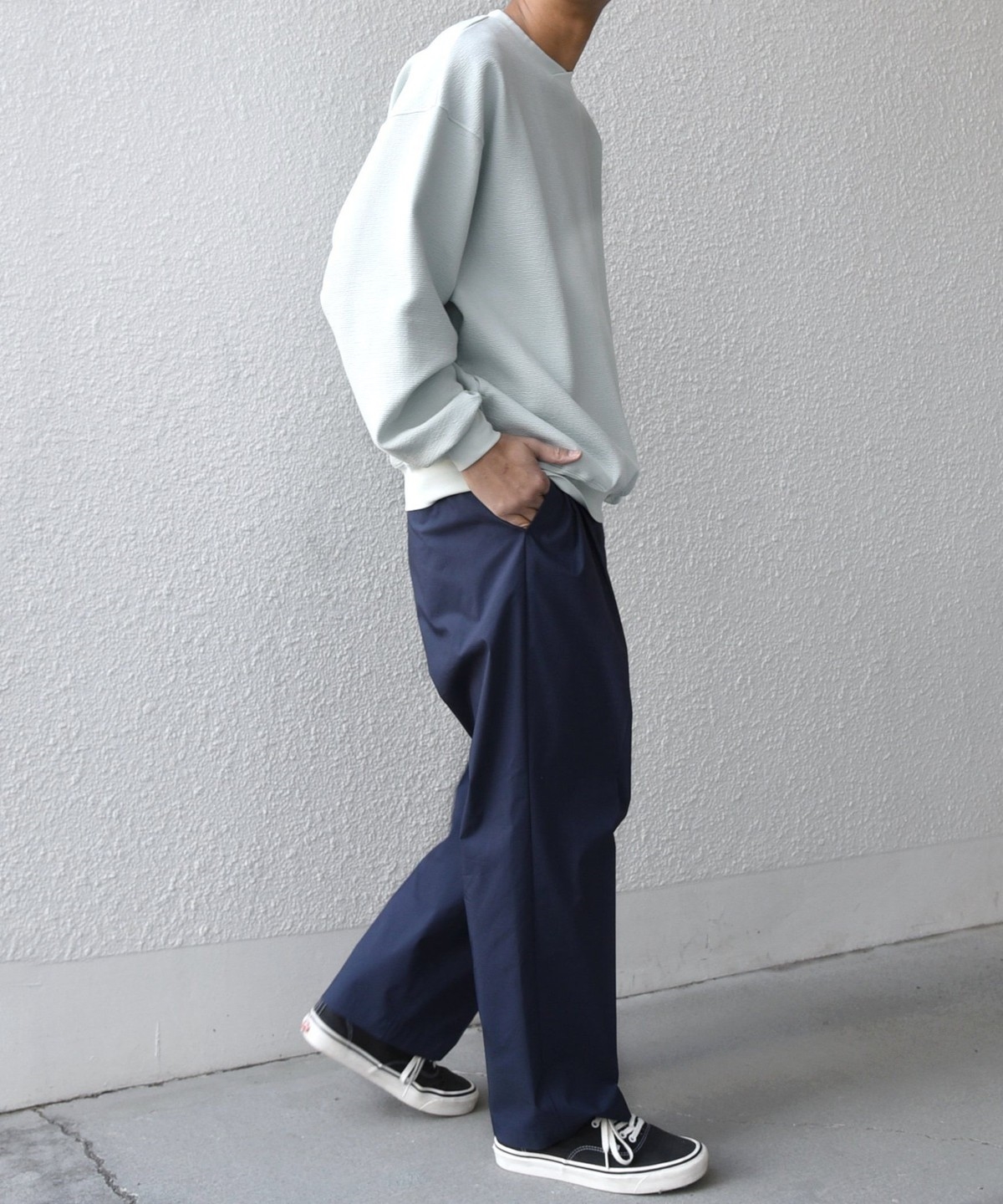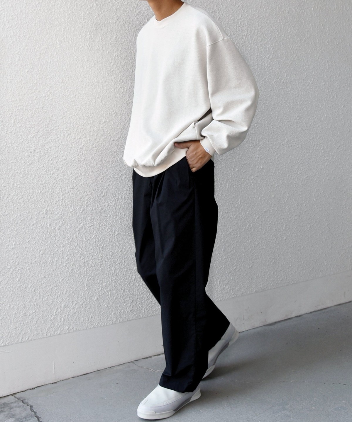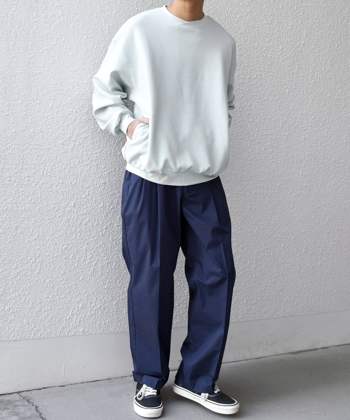 また、袖口と裾のリブが全体のシルエットに程よいメリハリを与え、ゆったりとしたバランスで着用いただけます。