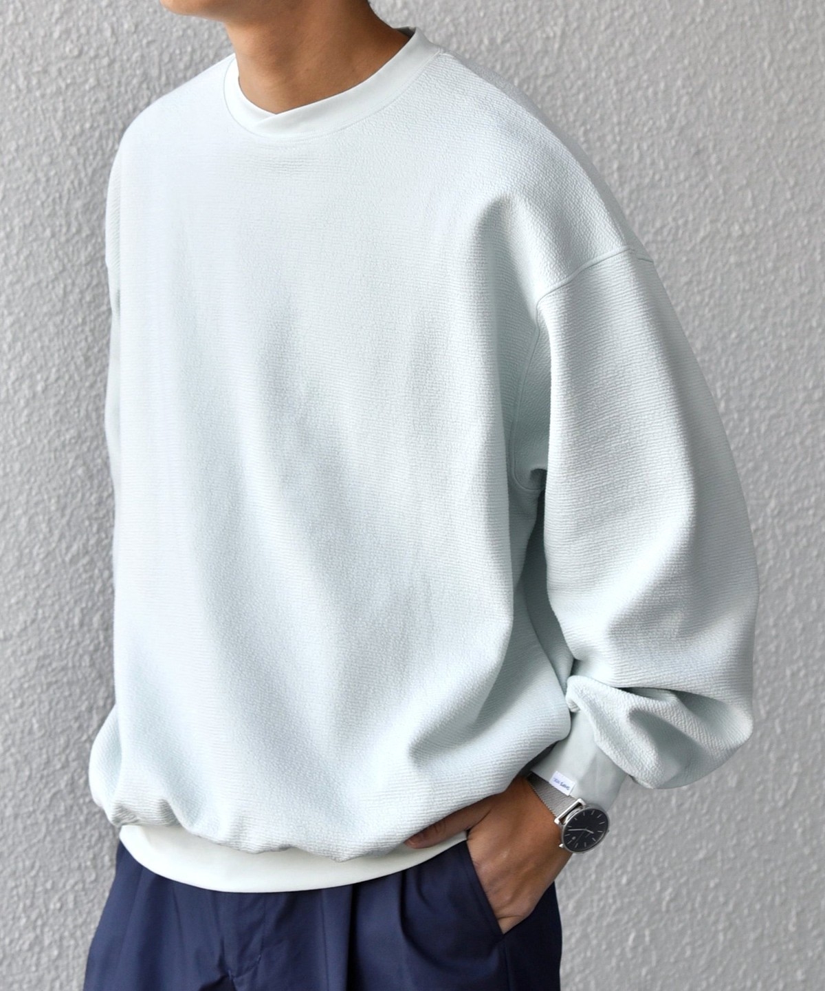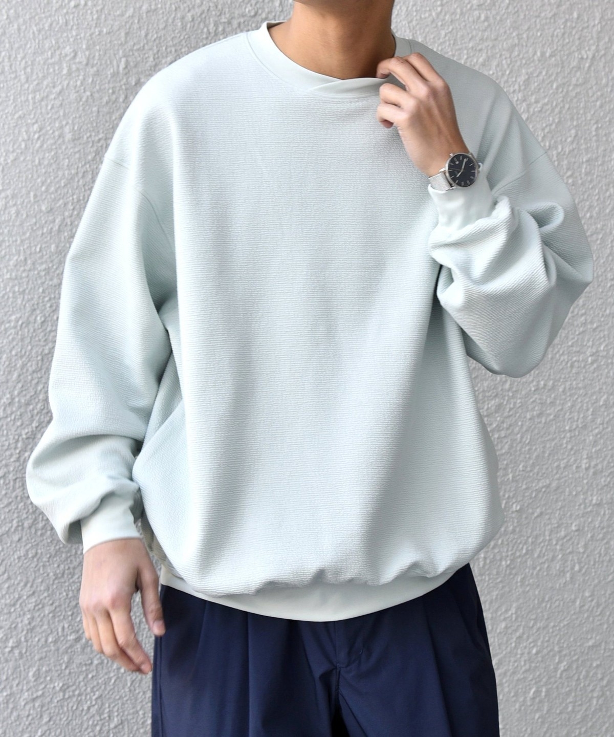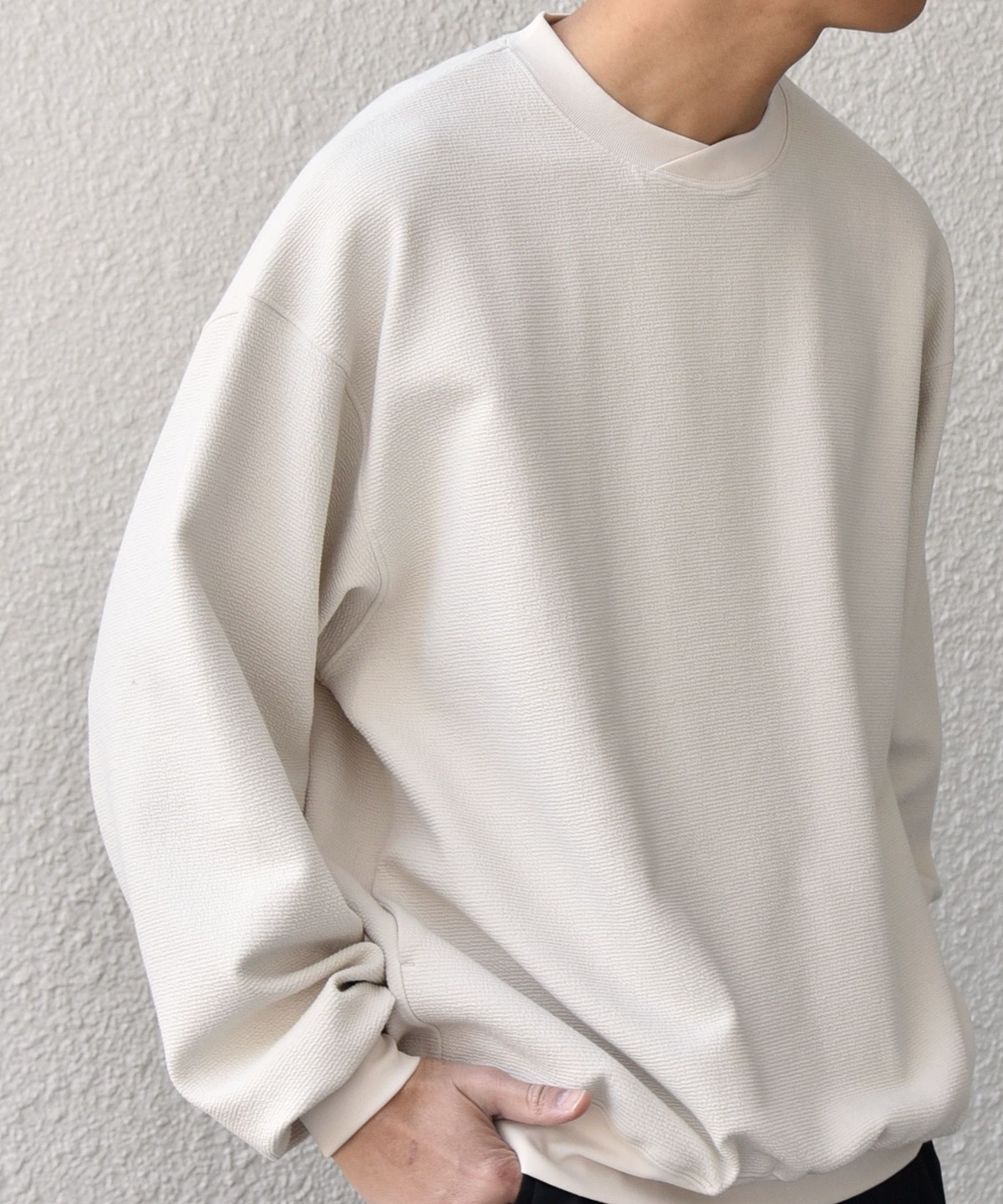 SHIPS any:〈洗濯機可能〉フクレ ジャガード ダンボール レイヤード ネック プルオーバー◆