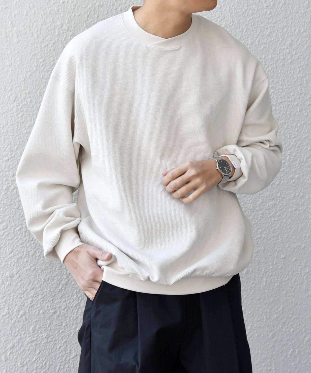 シンプルながらも表情感とディテールにこだわり、存在感のあるデザインに仕上げたプルオーバー。