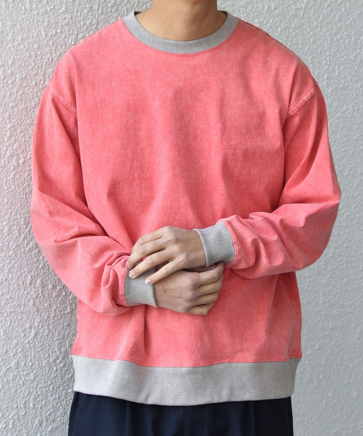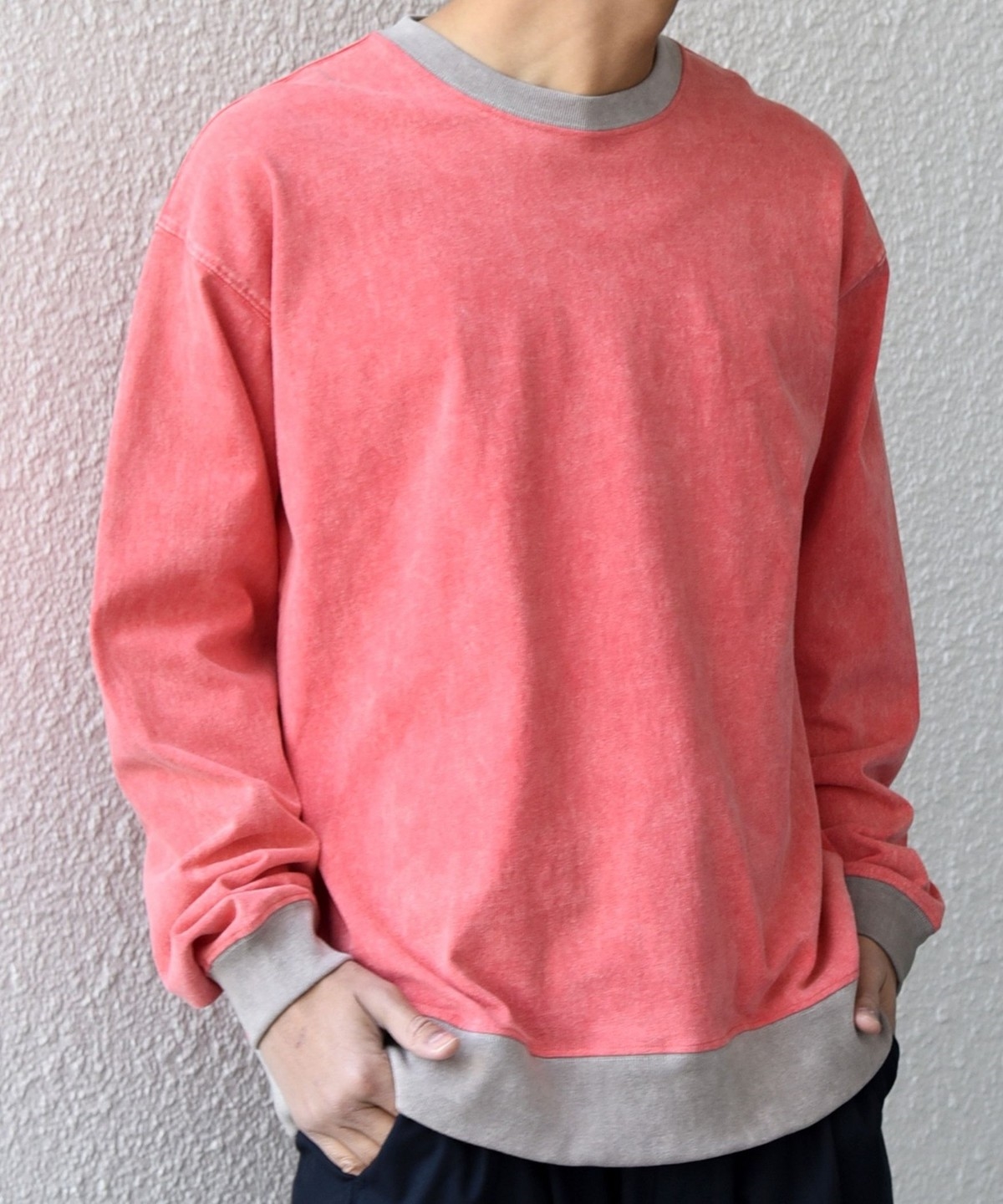 【SHIPS any別注】ONEITA: ケミカルウォッシュ リラックス リンガー Tシャツ(ロンT)◆