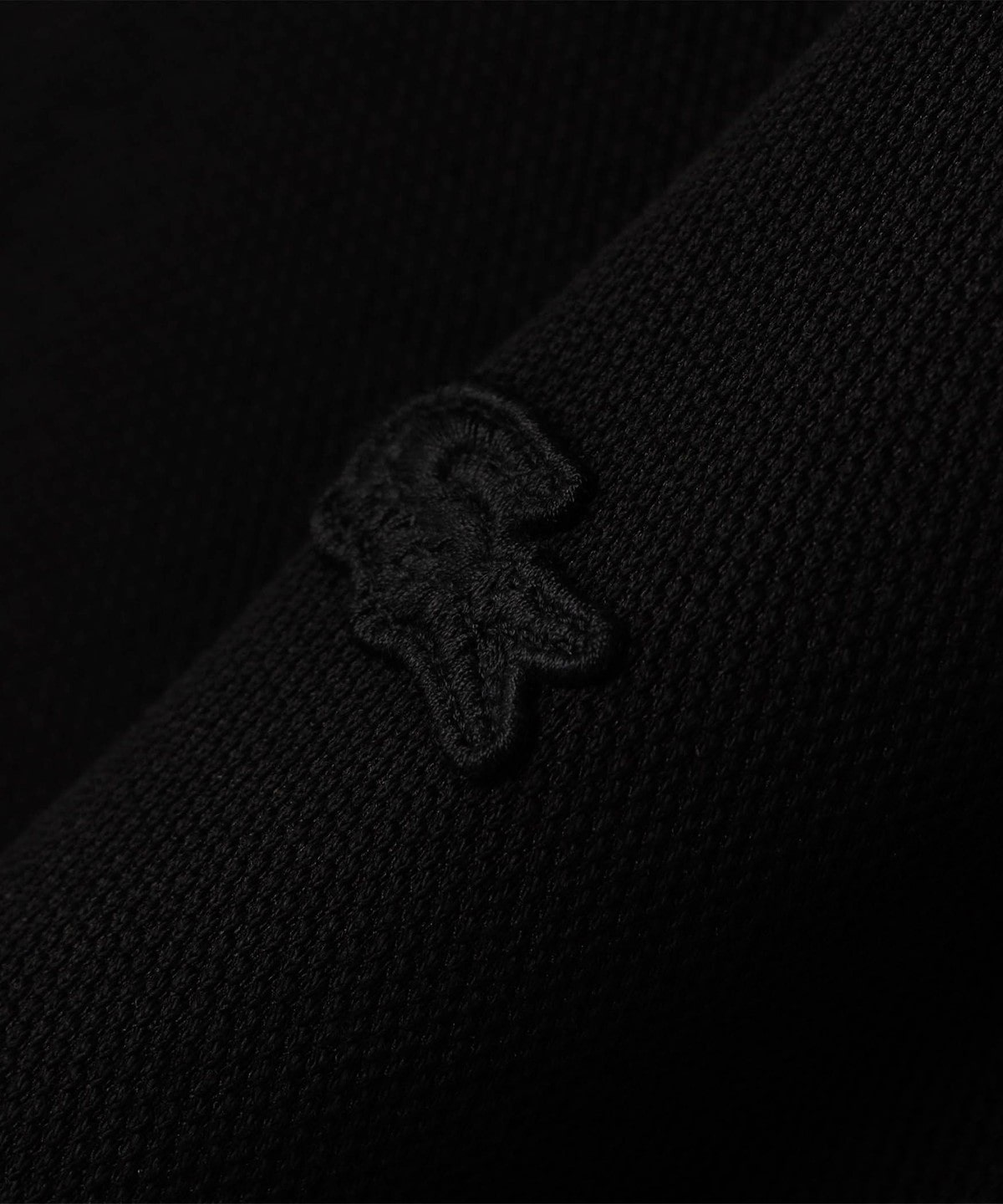 通気性と肌離れの良さが特徴の鹿の子編みを採用し、コットンとポリエステルをブレンドしたニット素材。