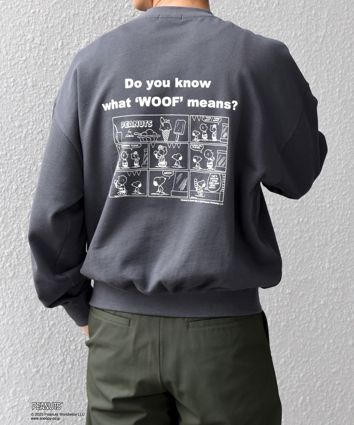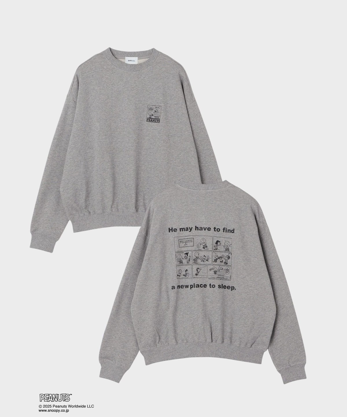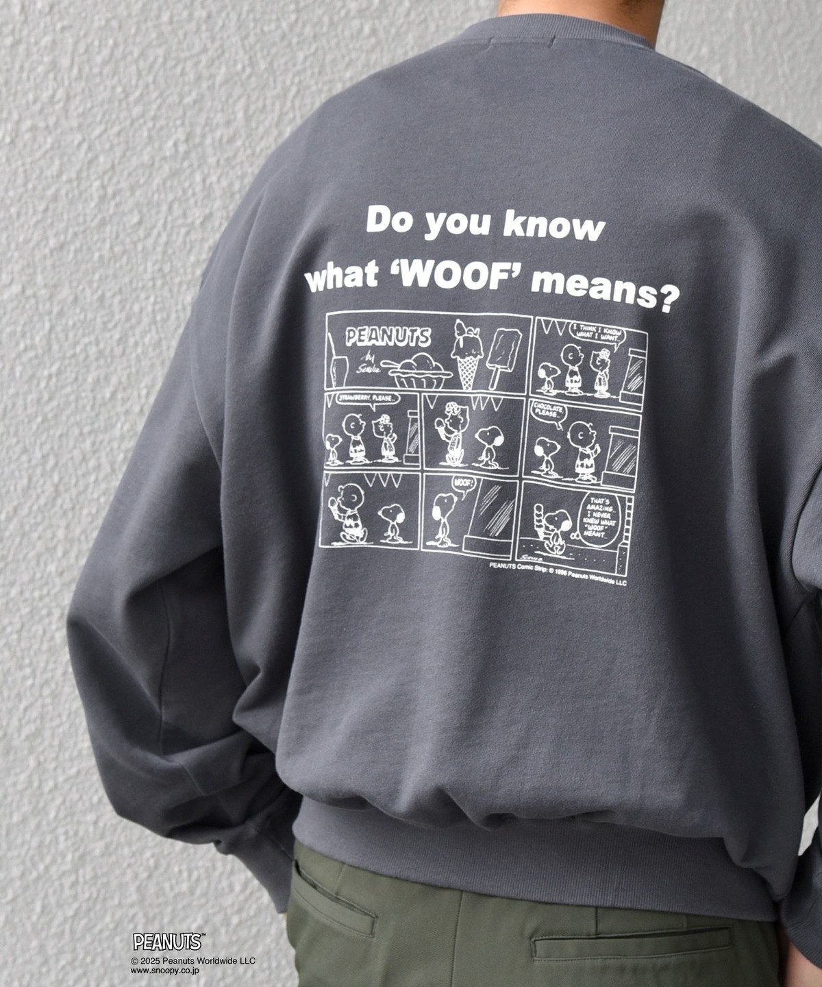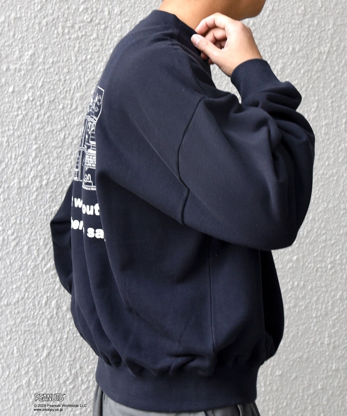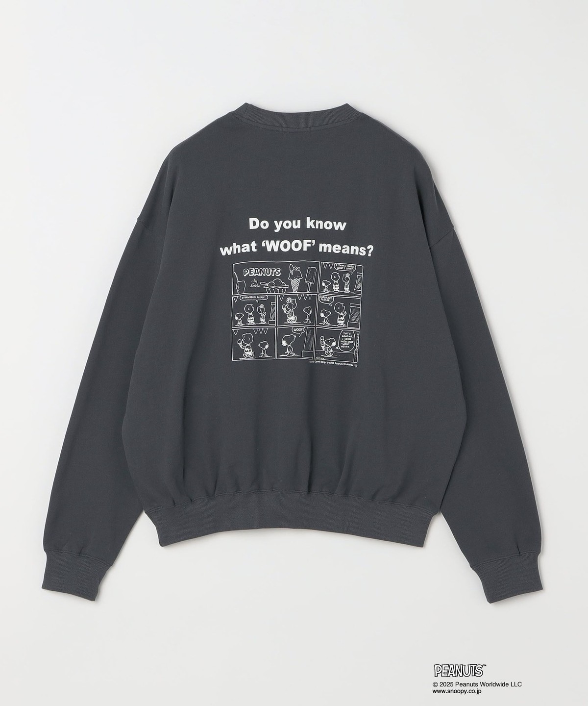 PEANUTSの仲間たちをあしらった、遊び心あふれるコミックモチーフのスウェット。