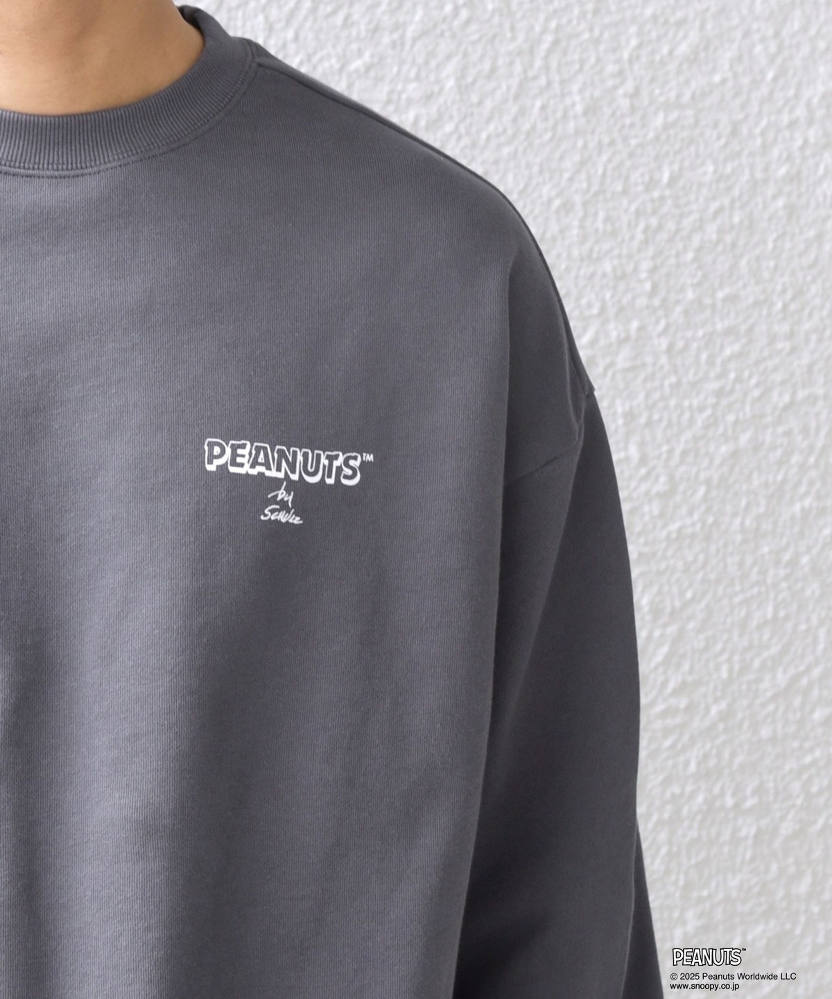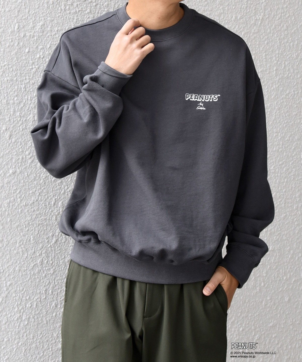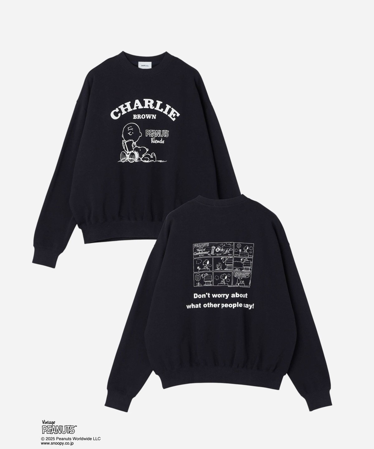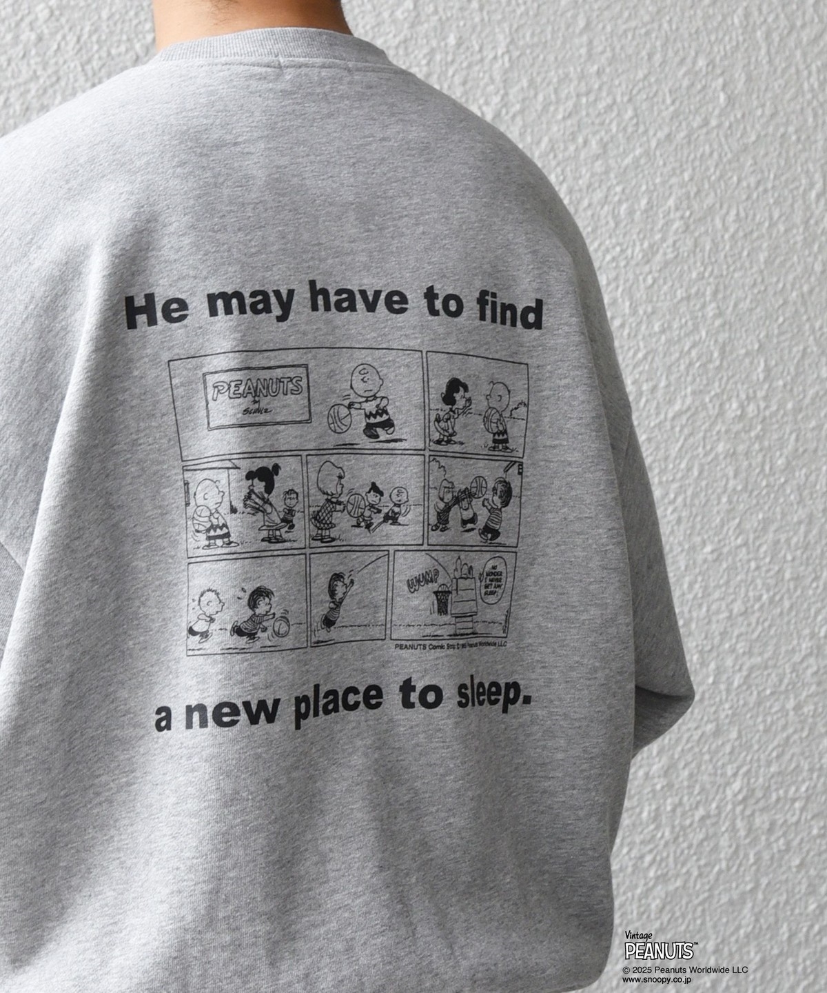PEANUTSの仲間たちをあしらった、遊び心あふれるコミックモチーフのスウェット。