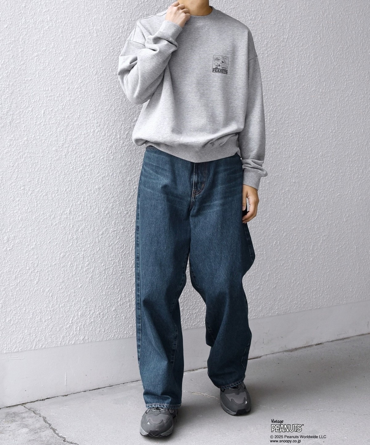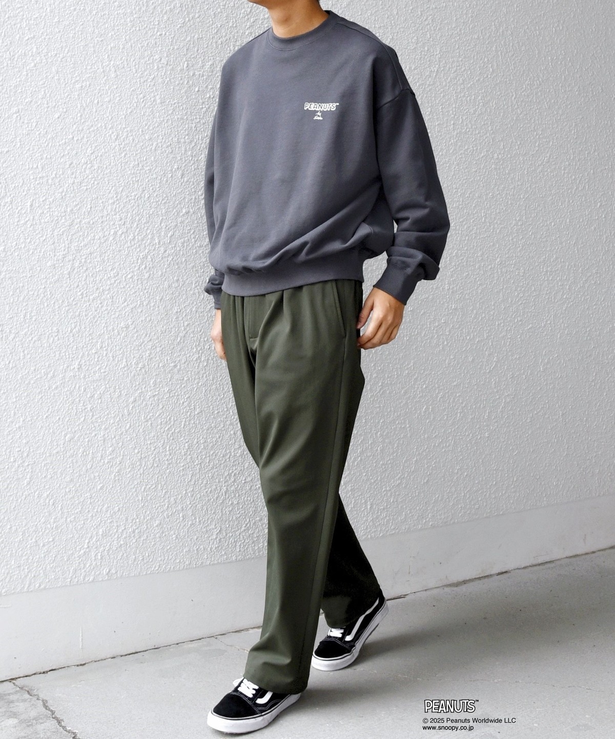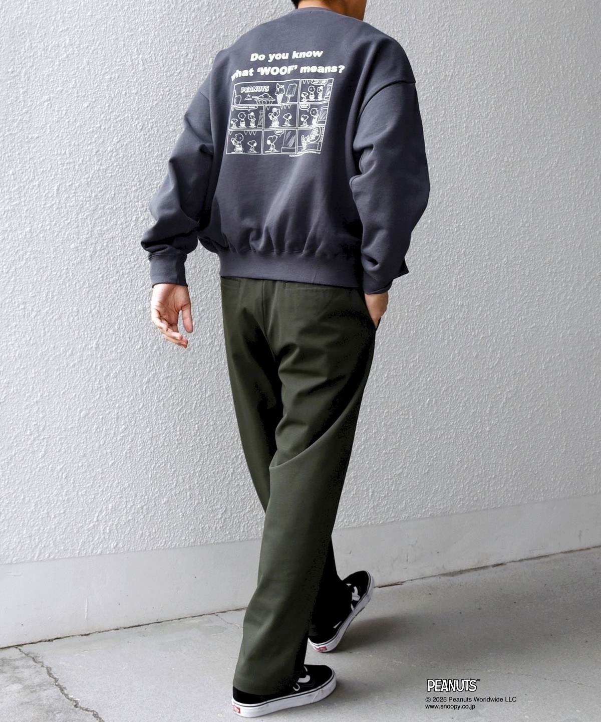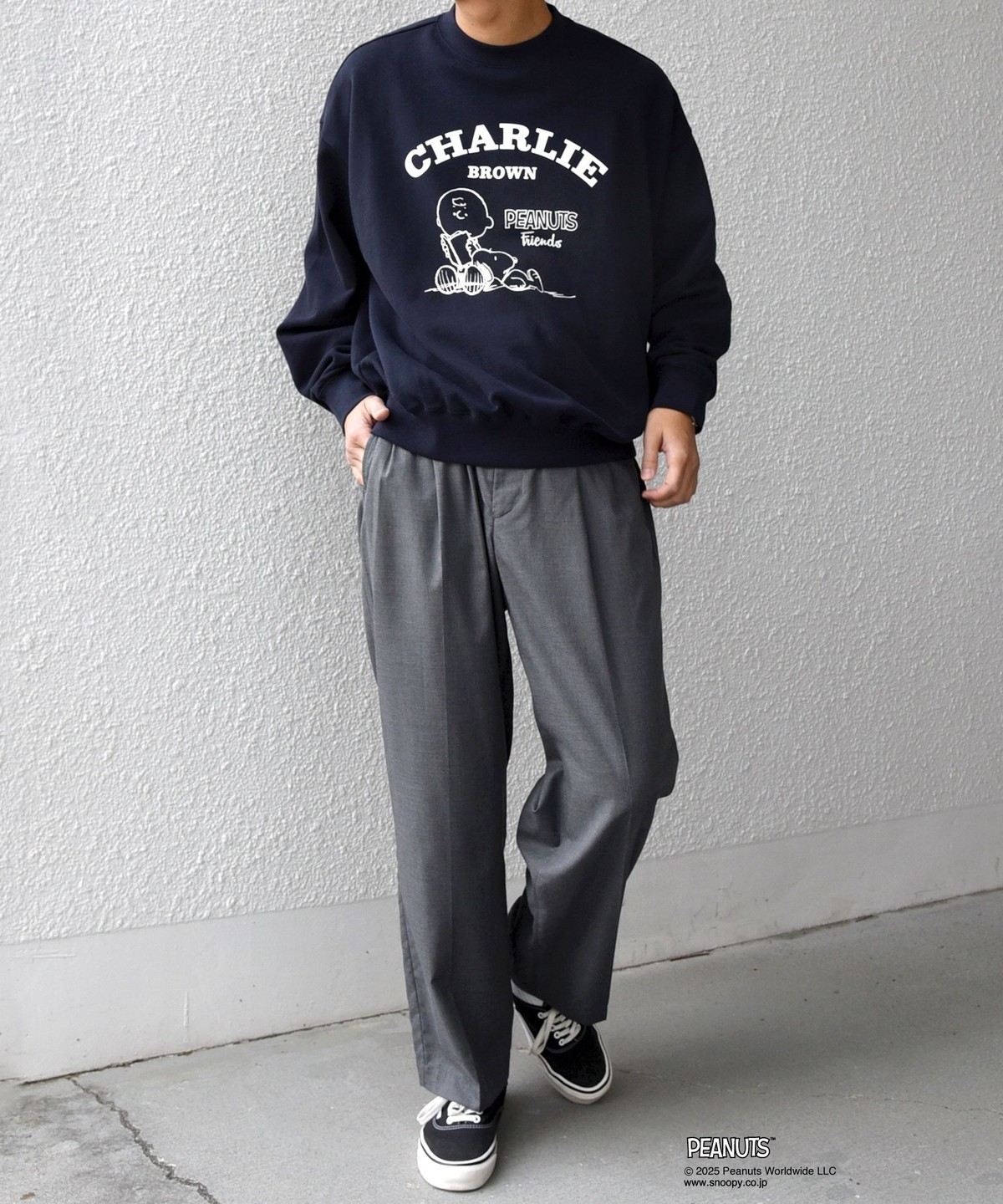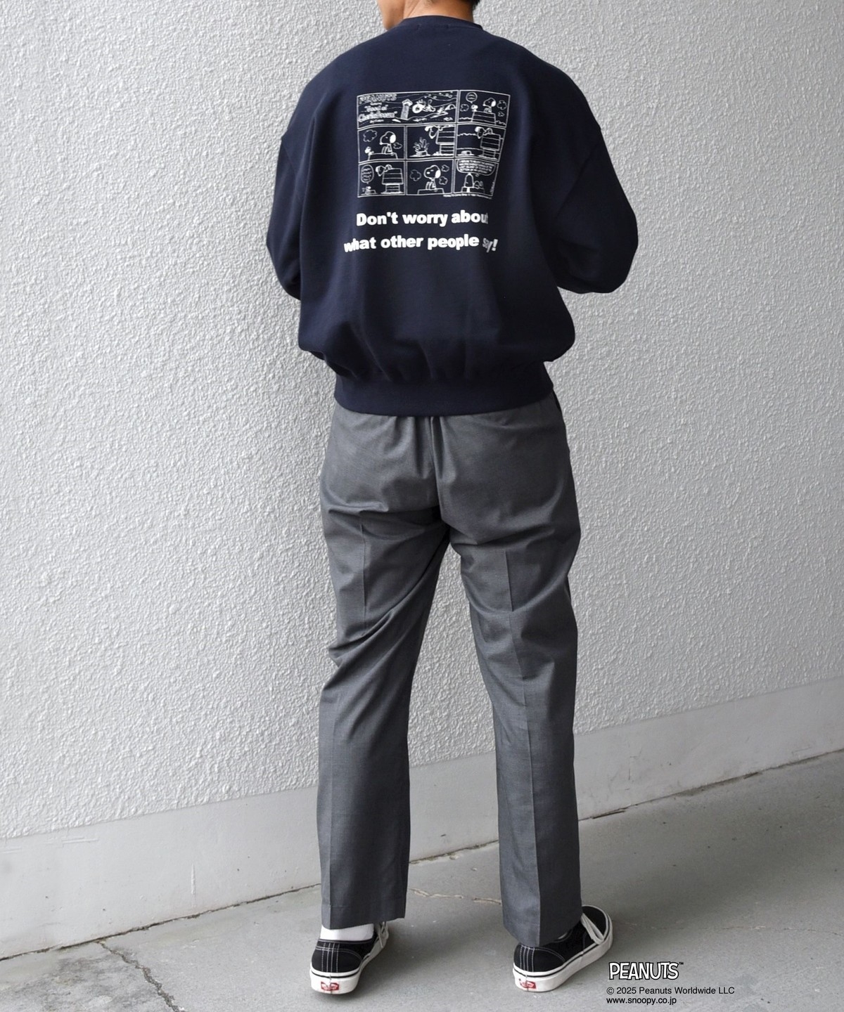 PEANUTSの仲間たちをあしらった、遊び心あふれるコミックモチーフのスウェット。