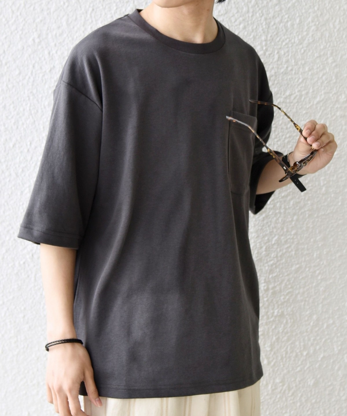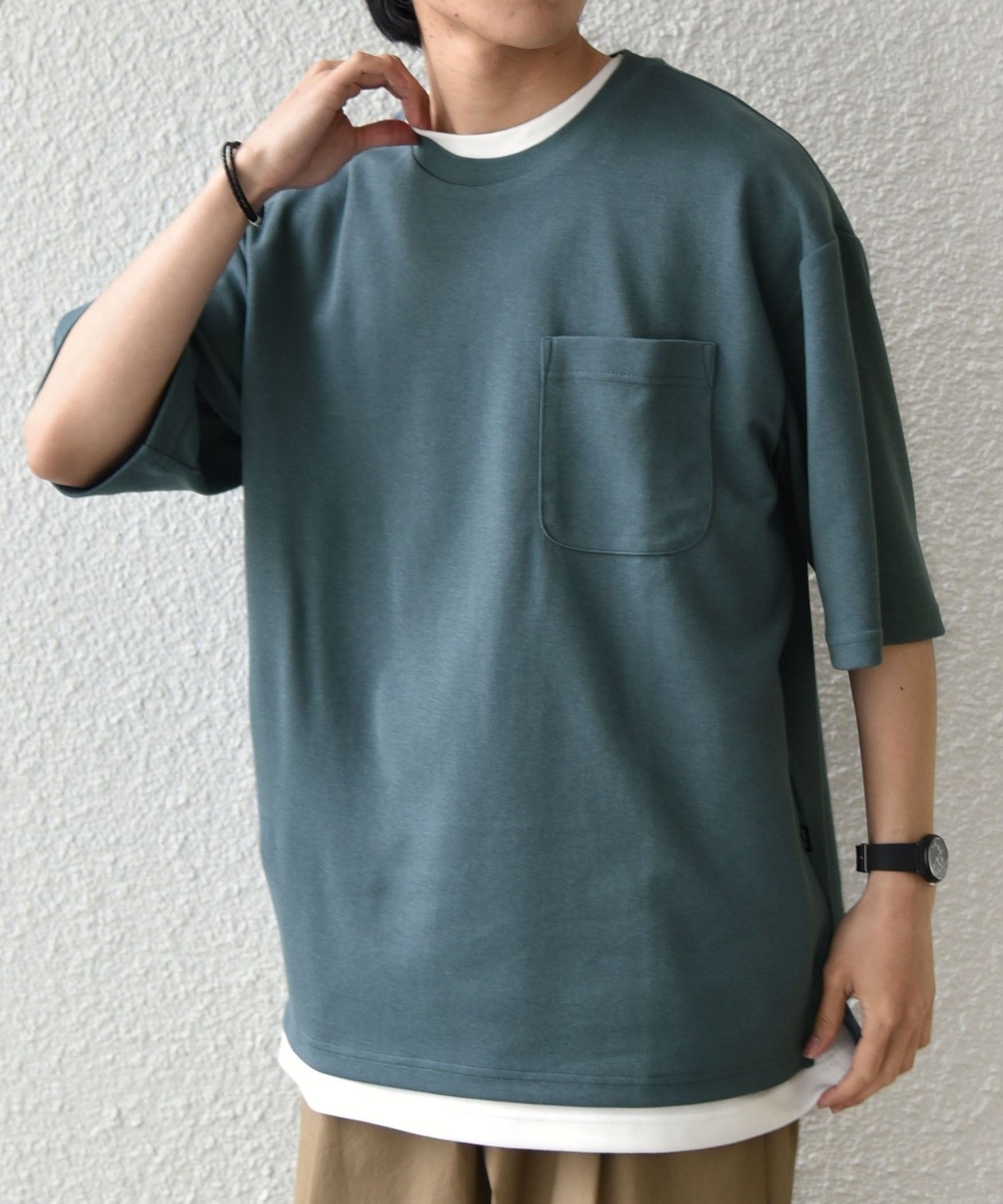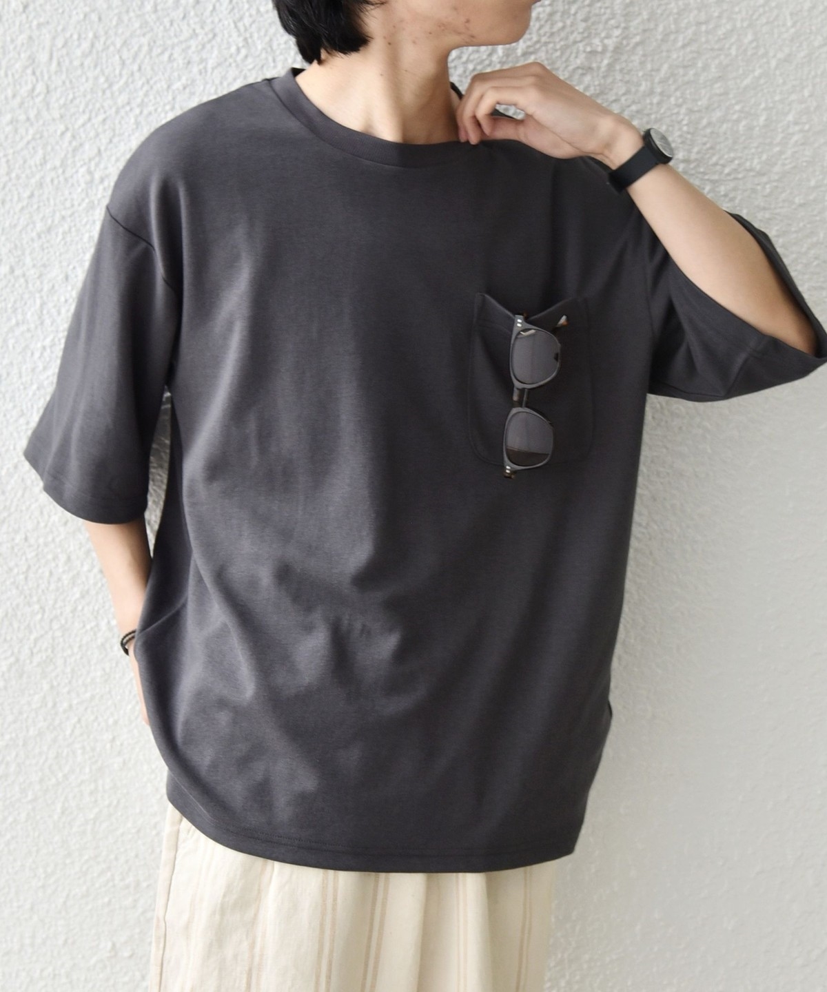 シンプルなデザインで様々なボトムスと合わせやすい!接触冷感素材が嬉しいポケットTシャツ