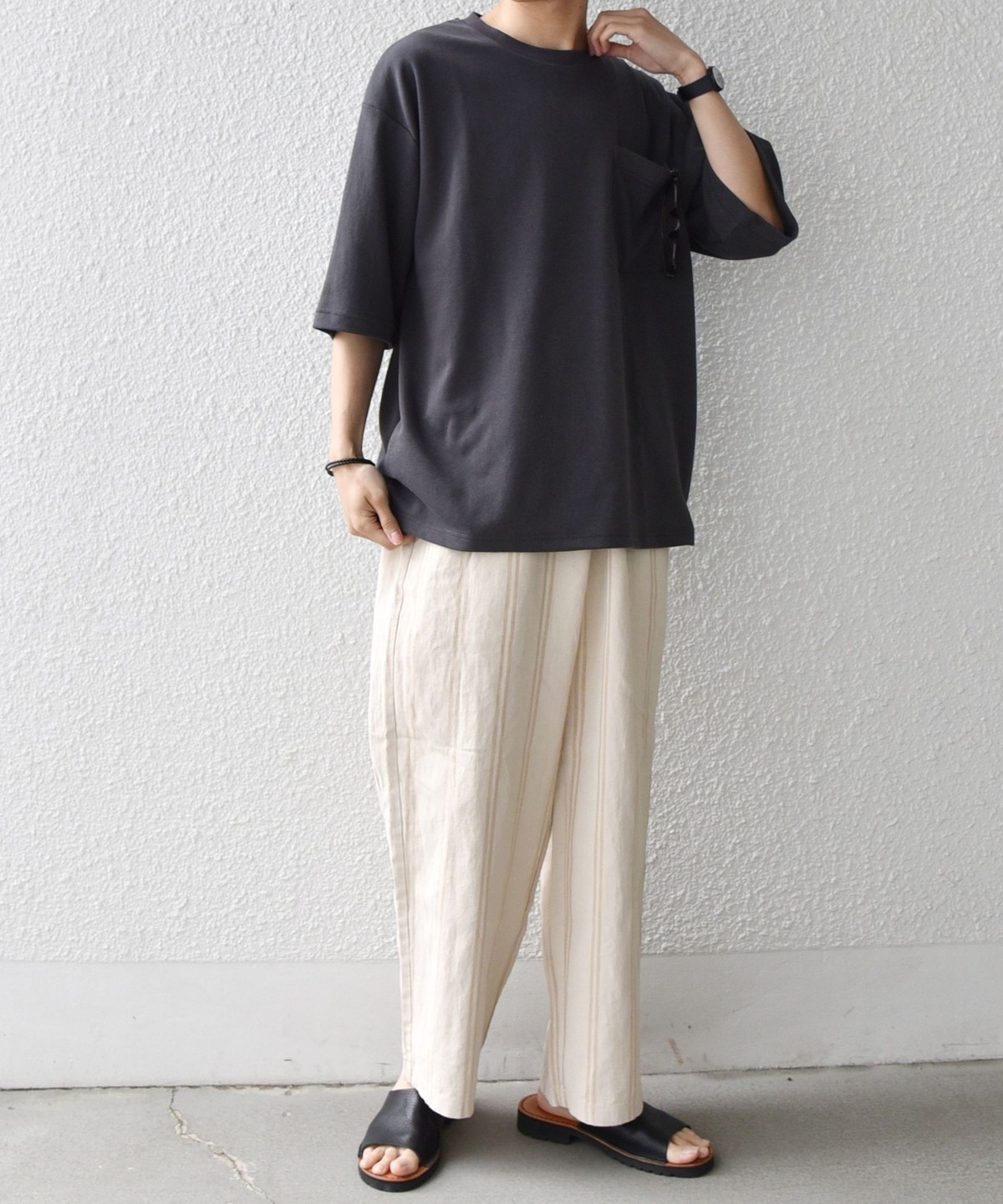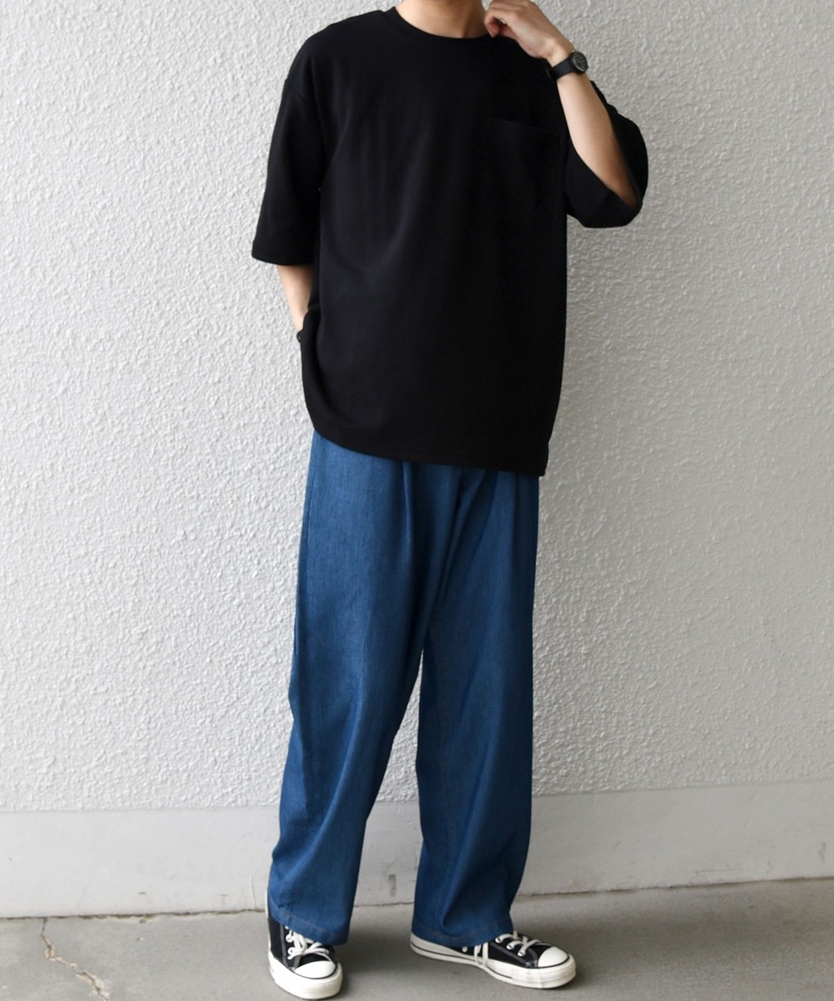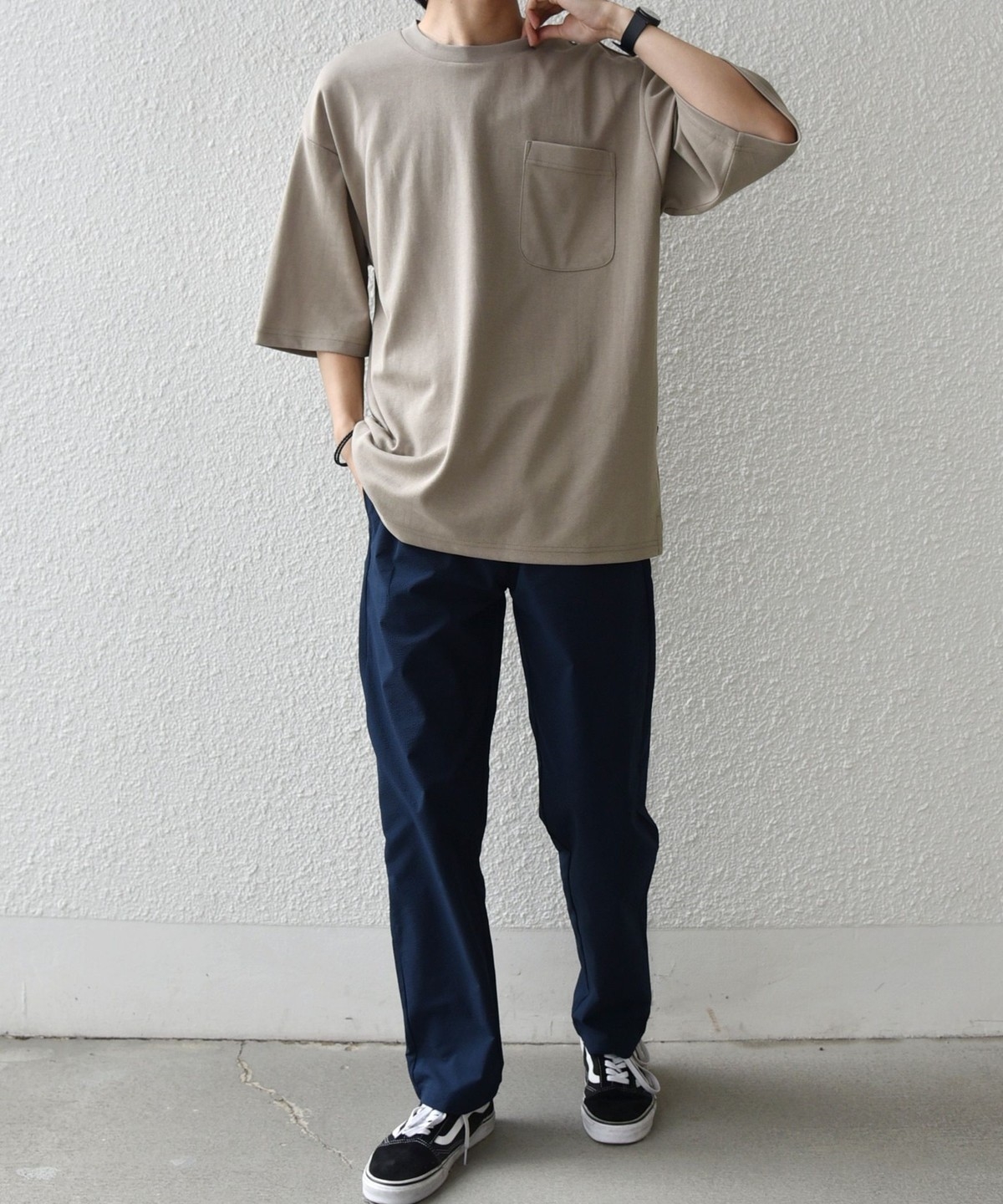 シンプルなデザインで様々なボトムスと合わせやすい!接触冷感素材が嬉しいポケットTシャツ