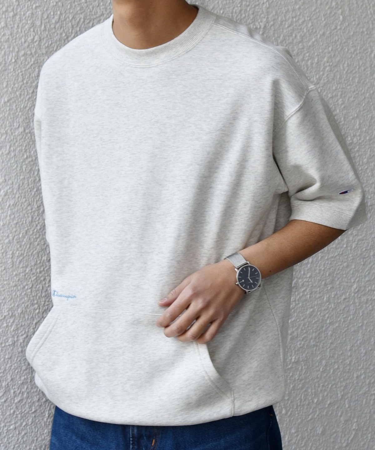 サイズ感や刺繍、ドローコードなどのディテールにこだわったChampion別注スウェットTシャツ!