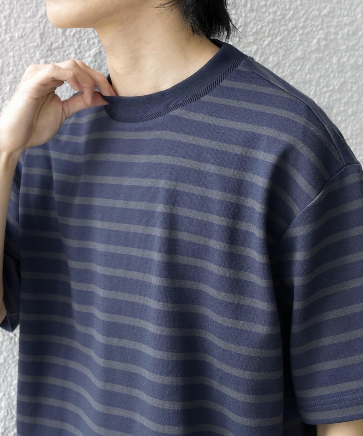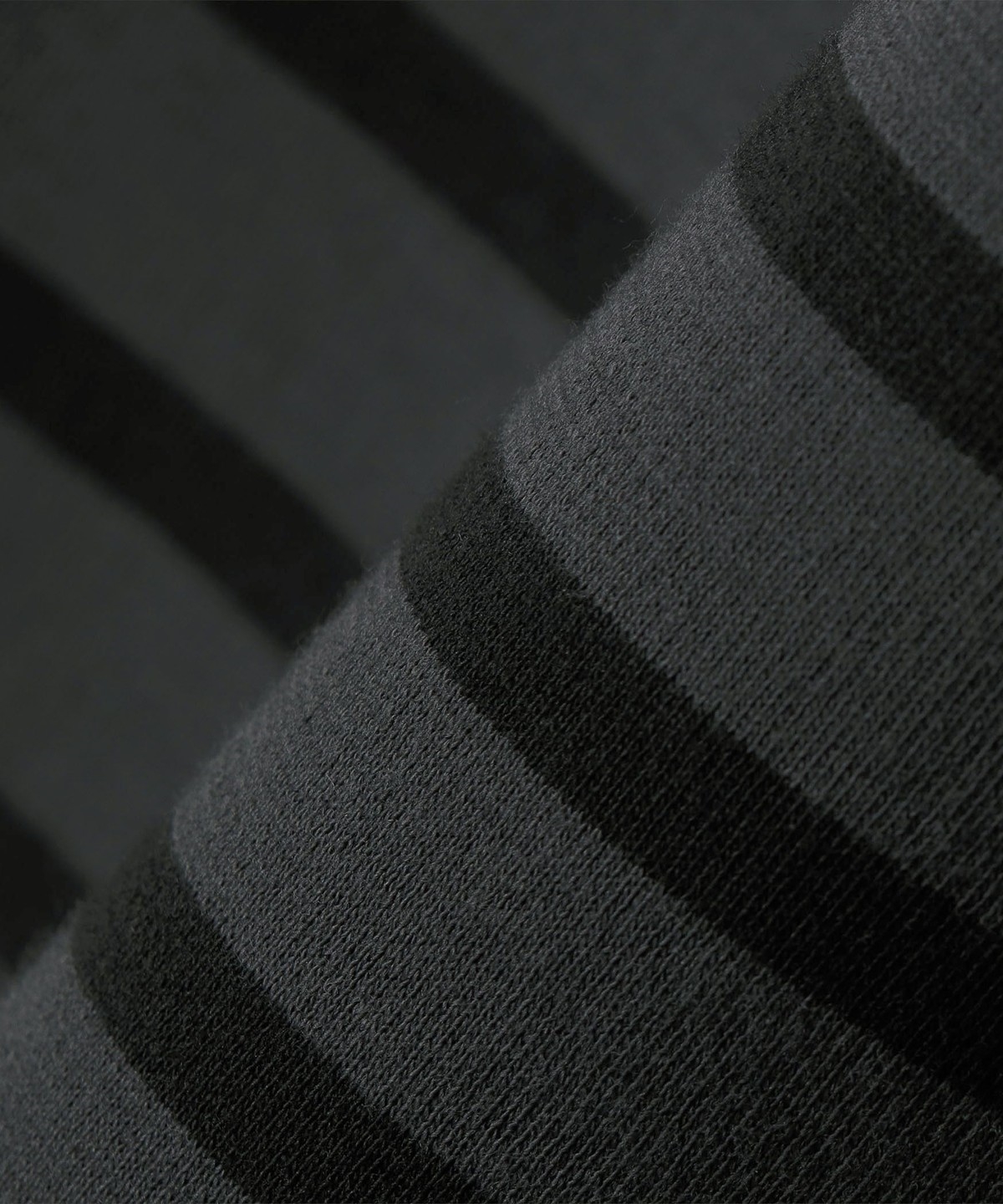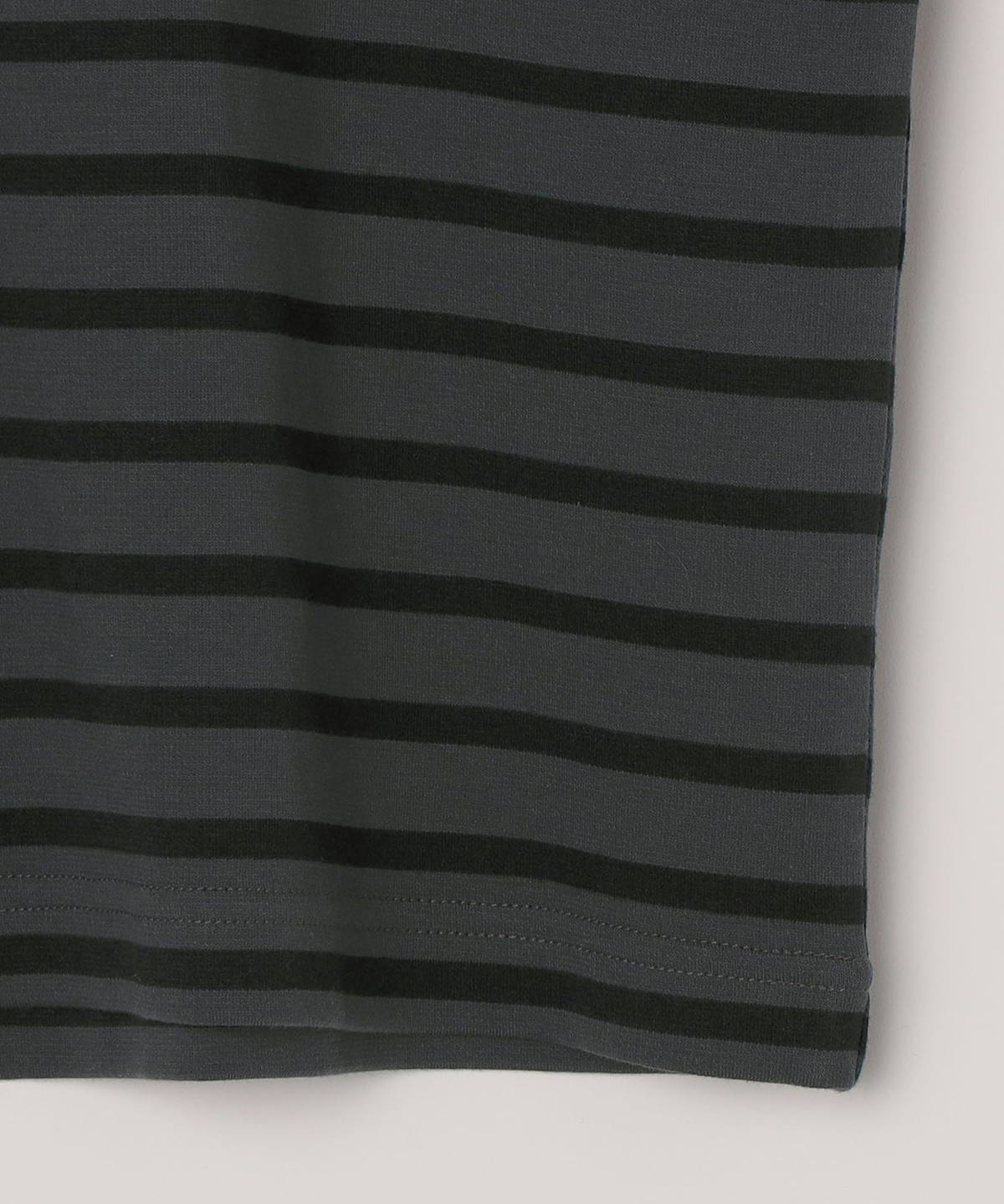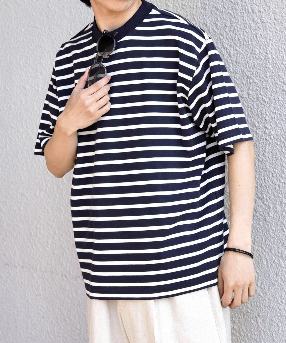 襟リブ部分に編みで柄を表現し、さりげないアクセントをプラスしたボーダーTEE。
